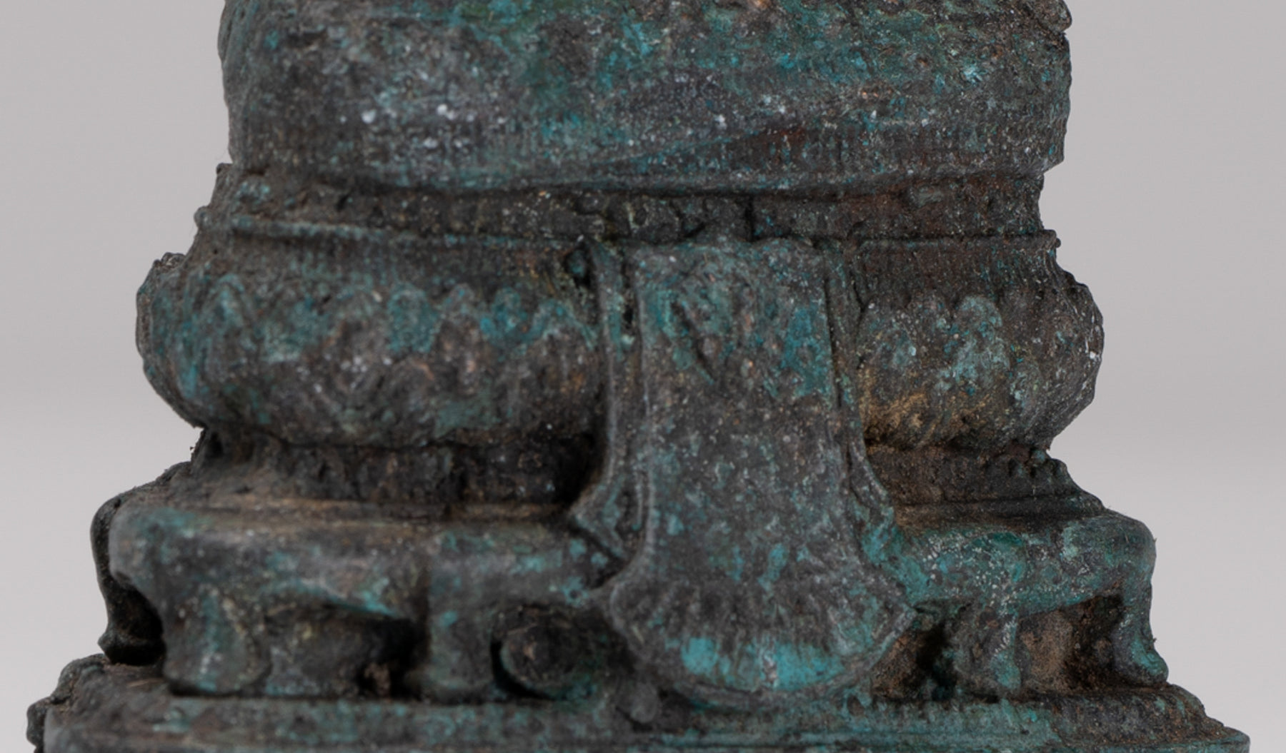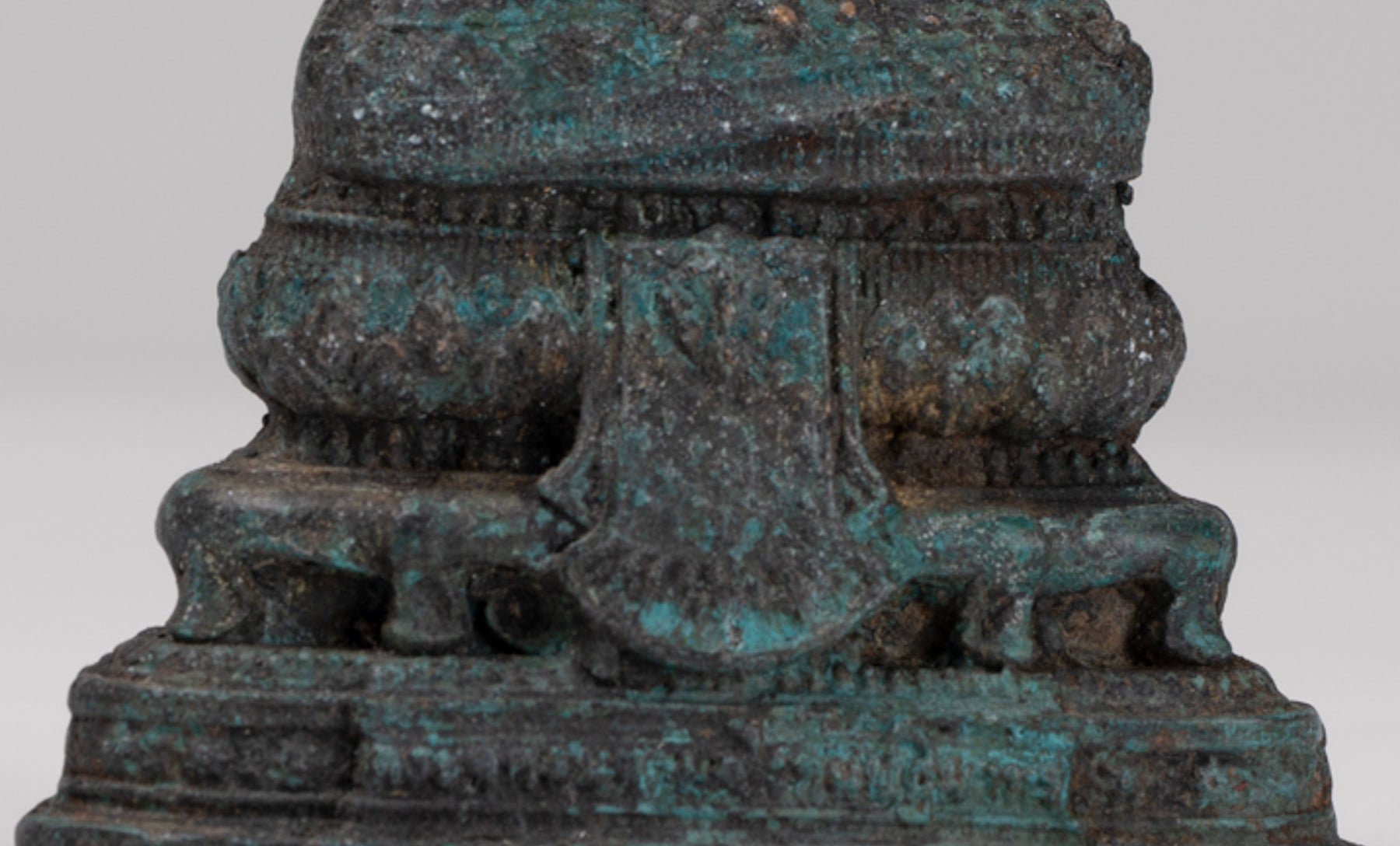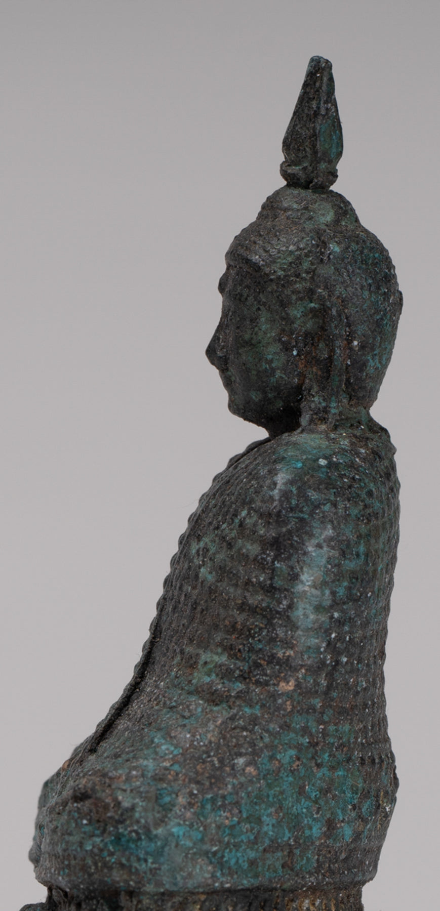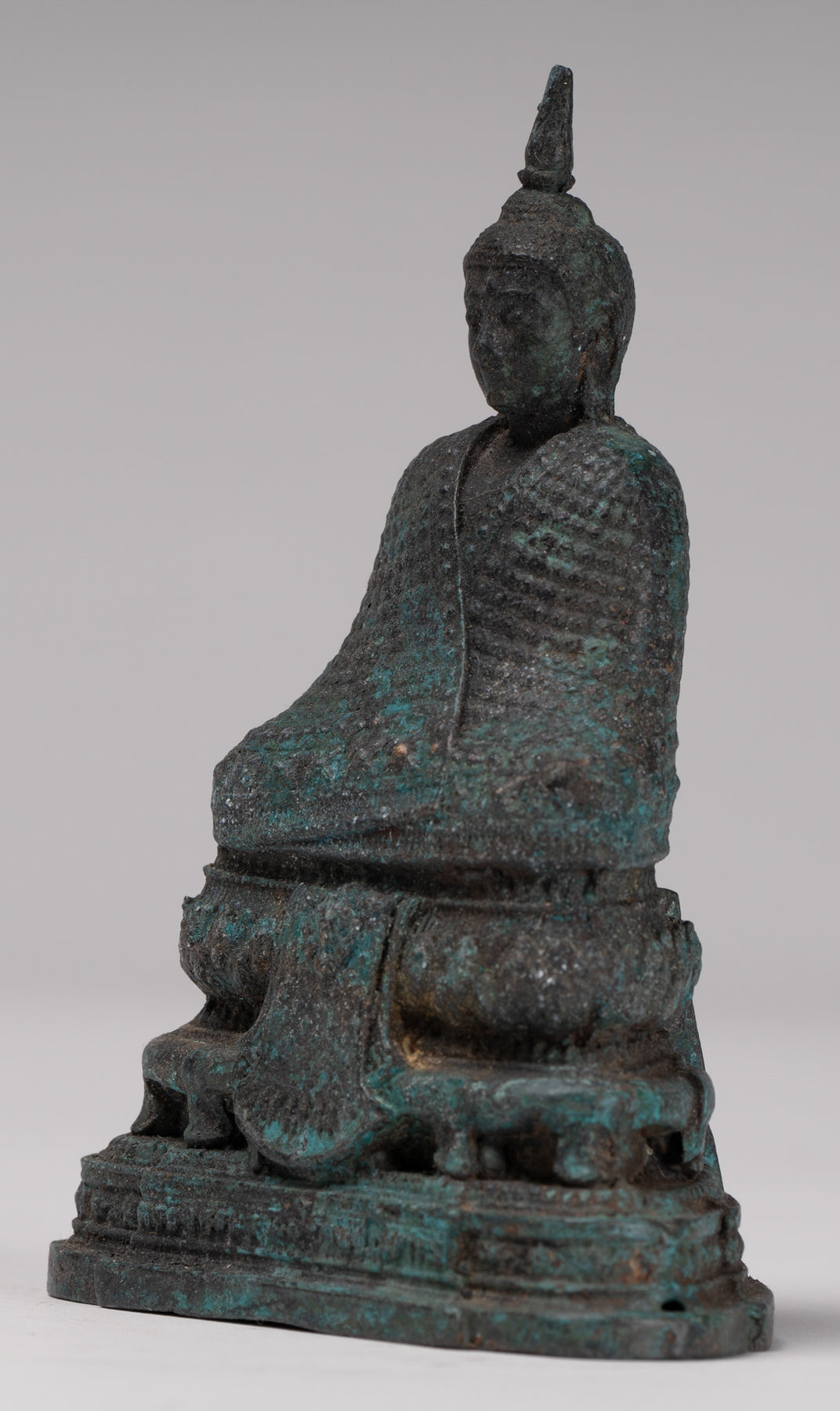 Estatua de Buda de Invierno de Bronce de Estilo Thai Thai. El Buda tiene un semblante pacífico con los ojos introspectivos abatidos y una ceja firme.