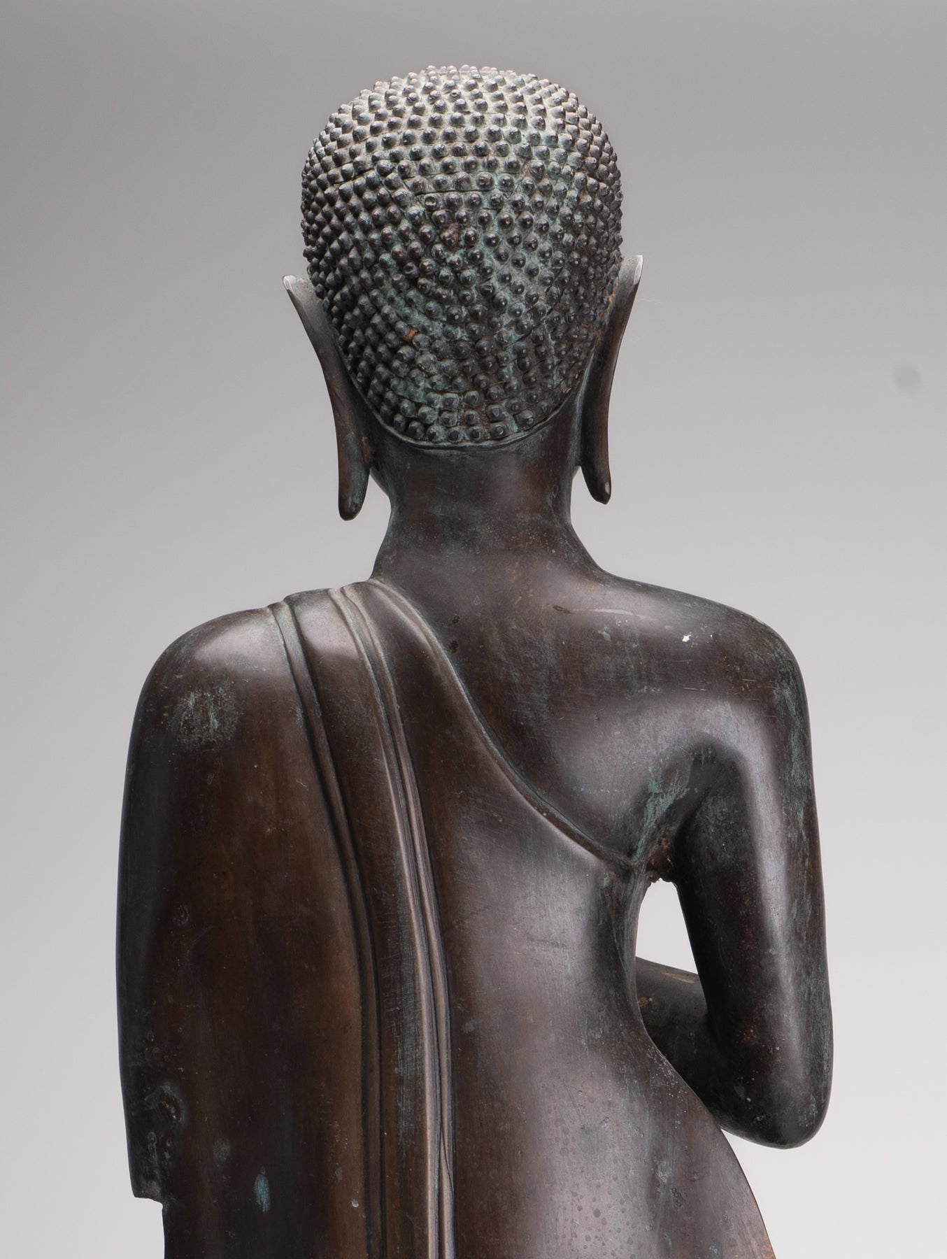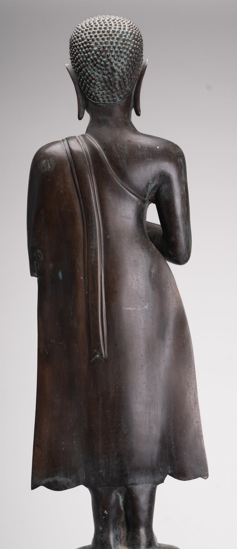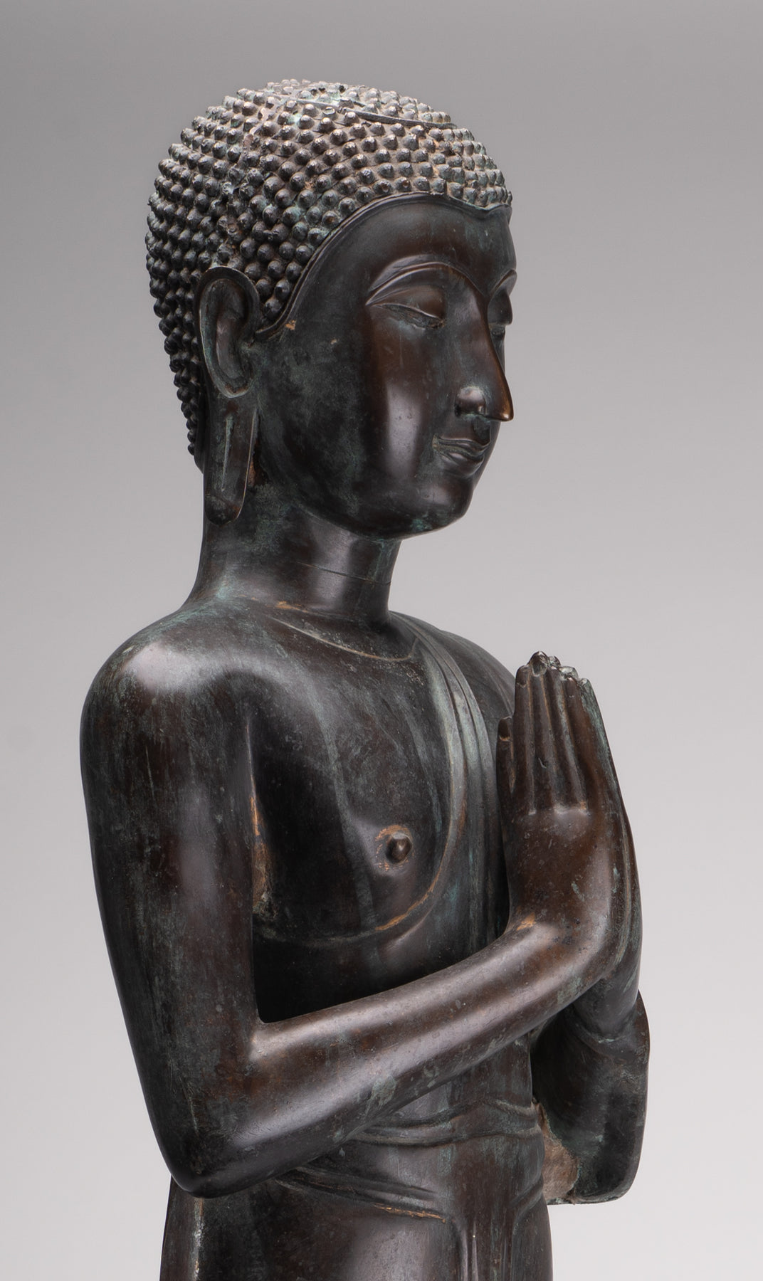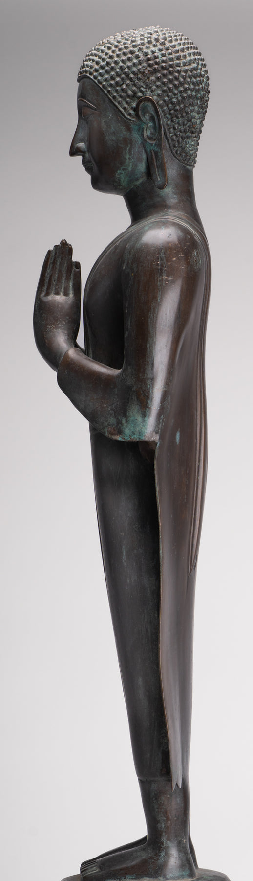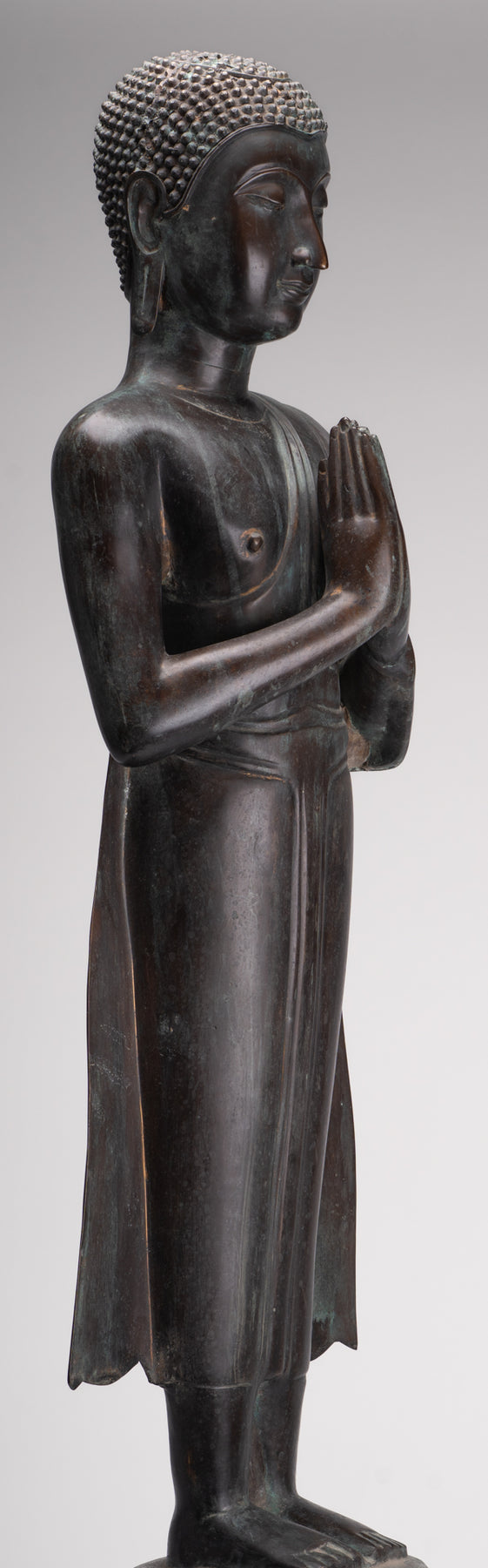 Como es tradicional con el Buda tailandés, de este estilo, sus túnicas son simples, con los pliegues de las túnicas que ondulan en su torso.