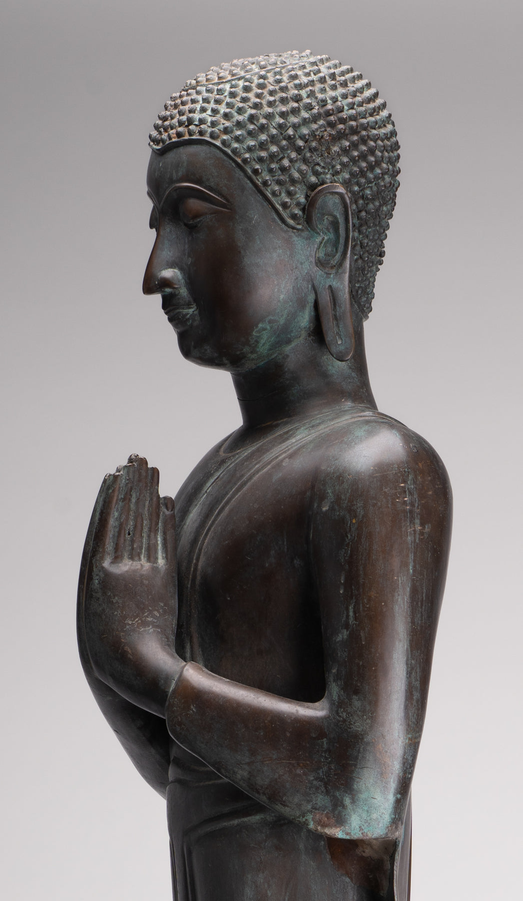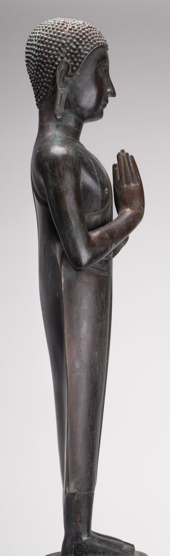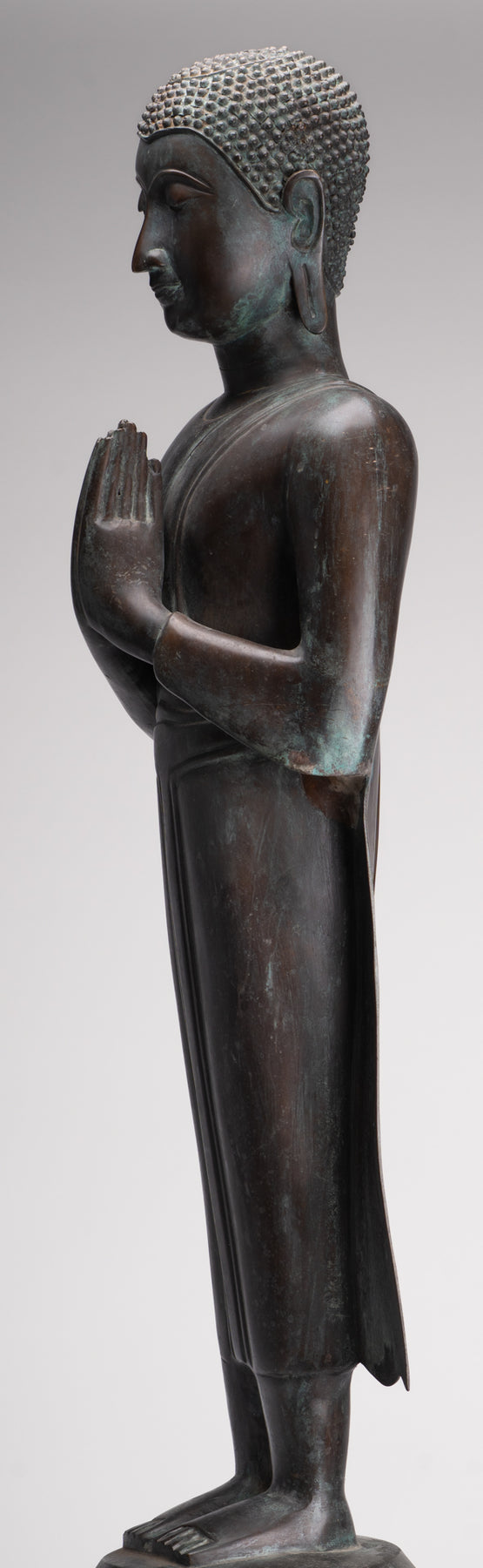 Un antiguo estilo de estilo tailandés de pie o discípulo de Buda, en pose de adoración.