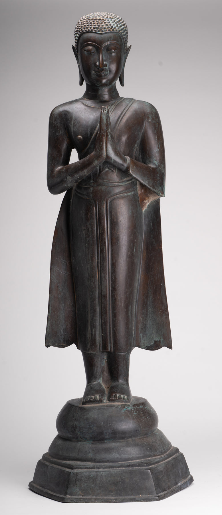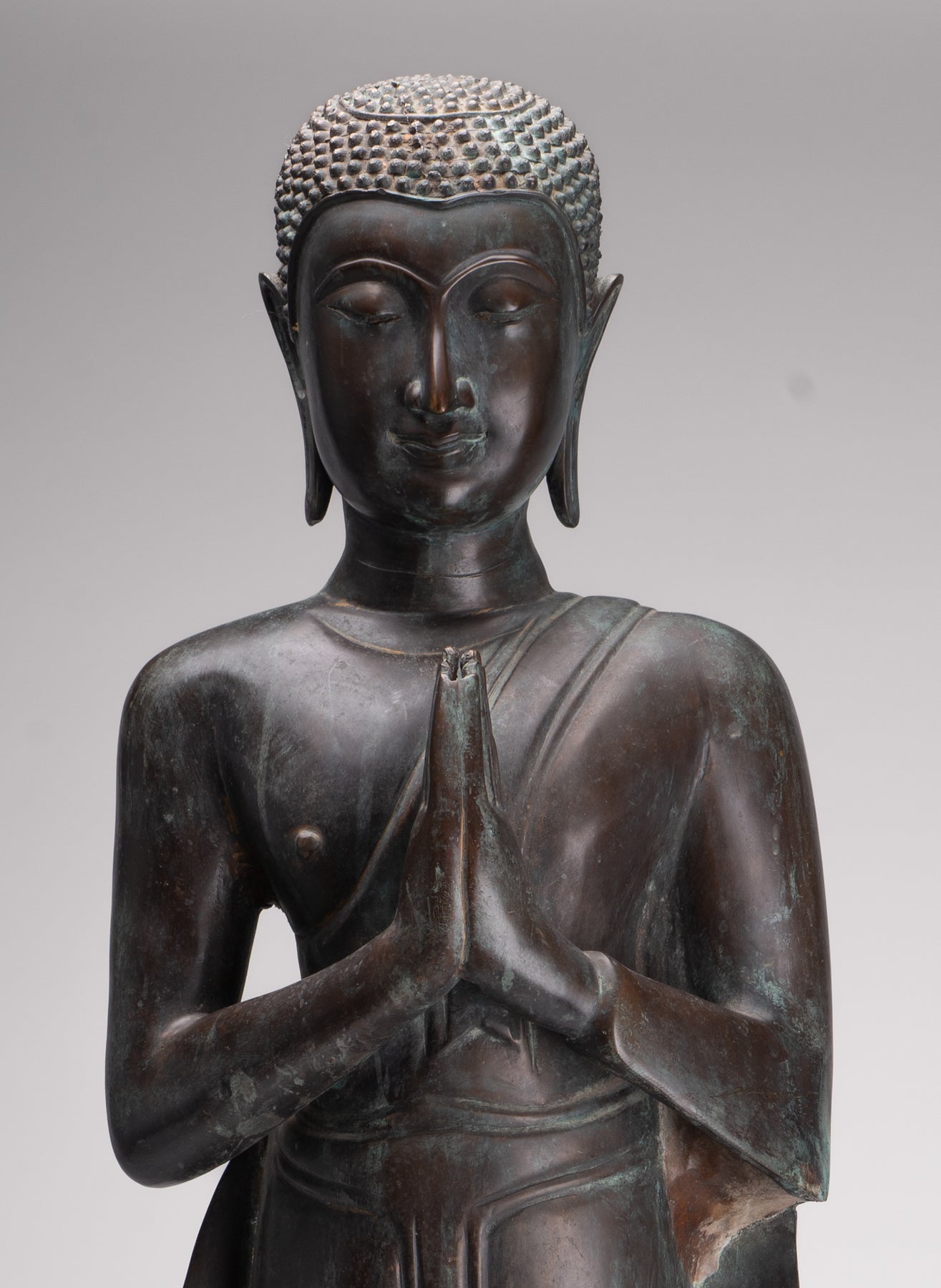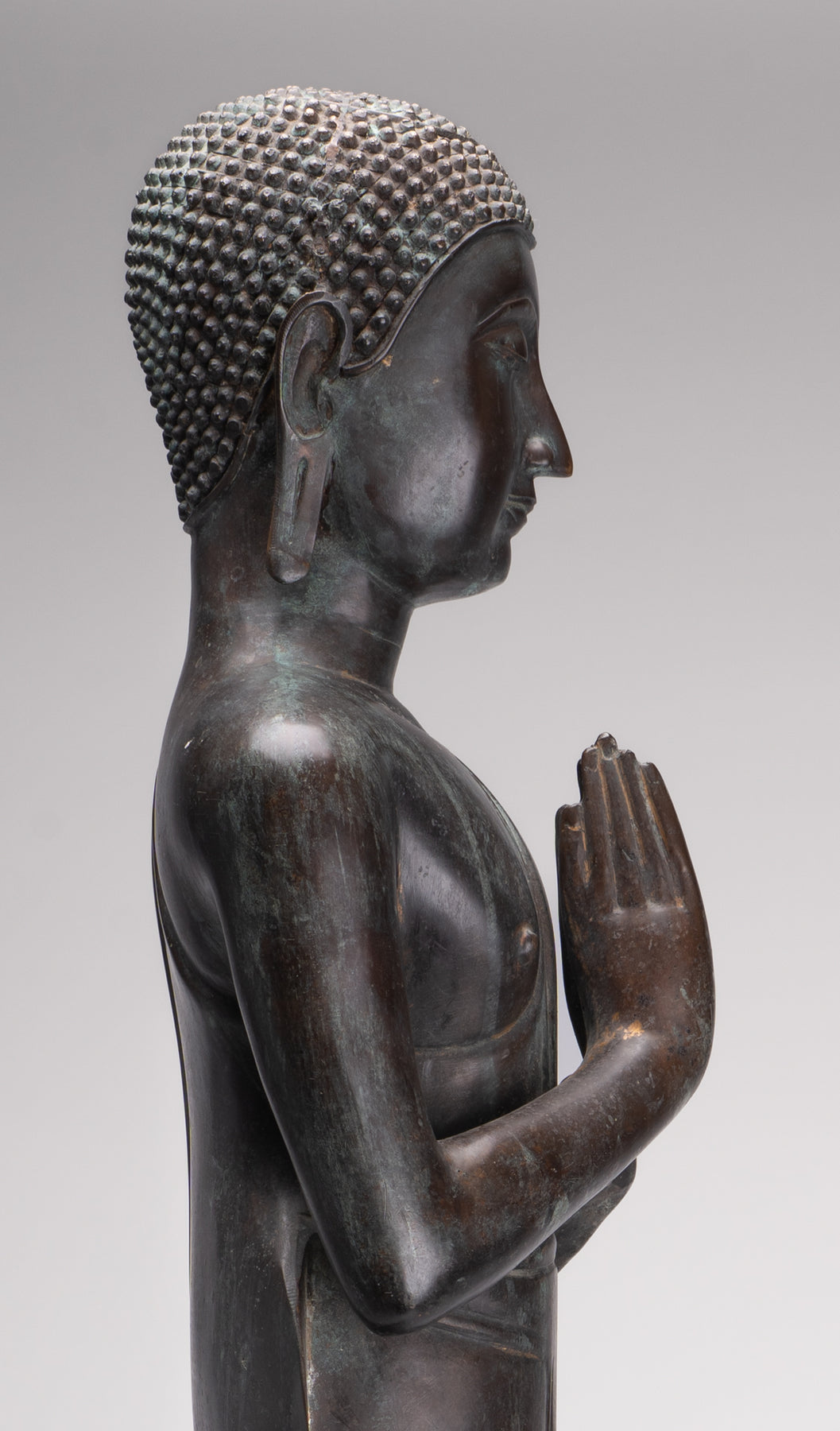 Un antiguo estilo de estilo tailandés de pie o discípulo de Buda, en pose de adoración.