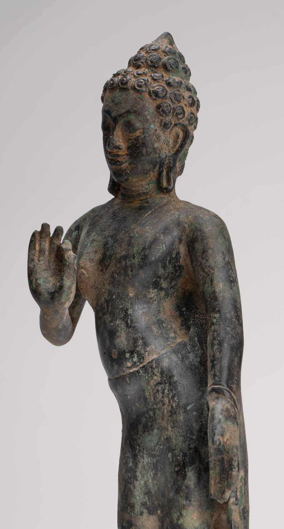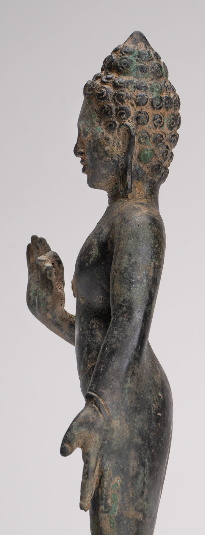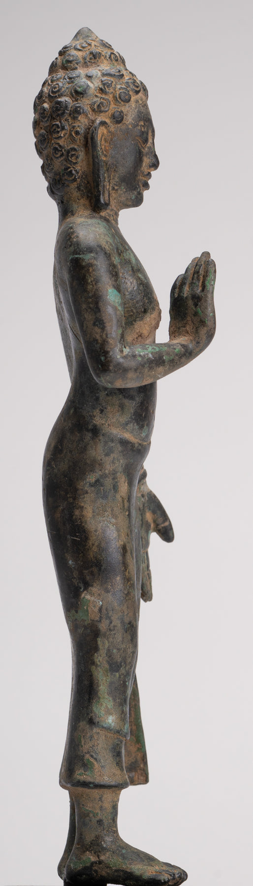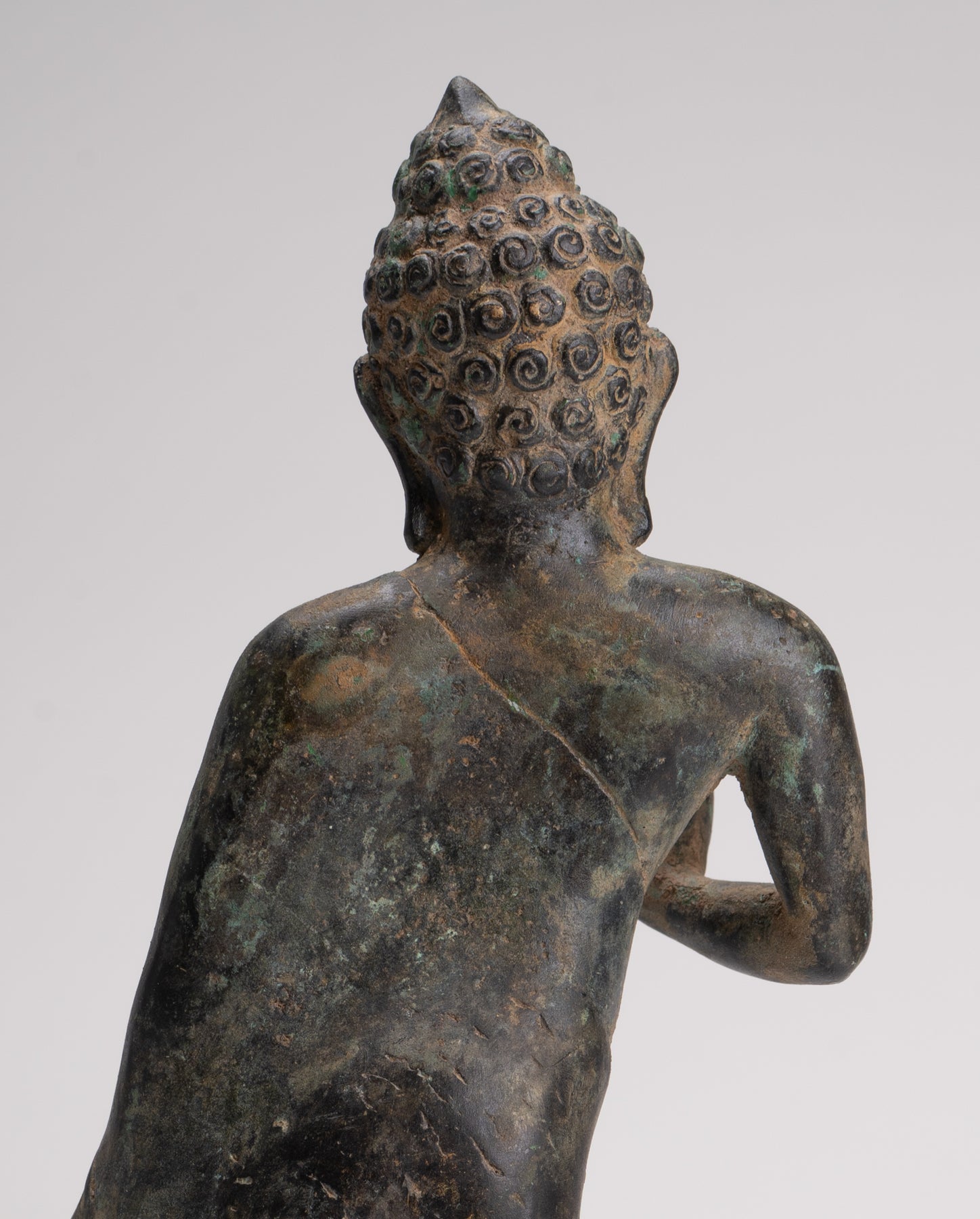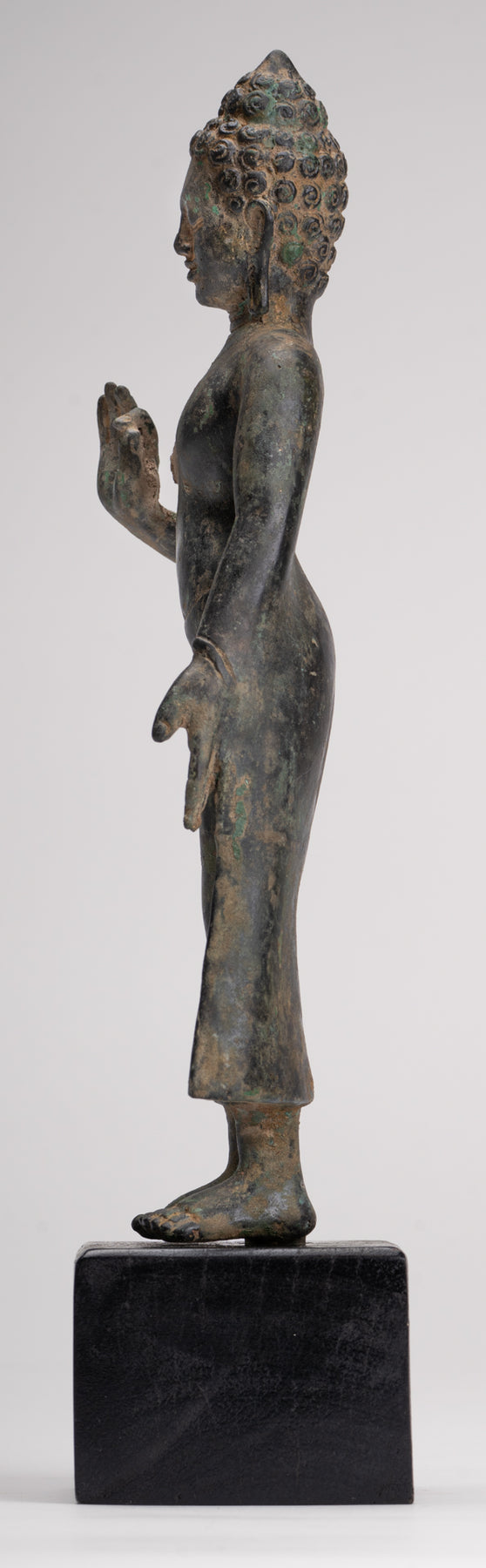 Estatua de Buda - Estatua de Buda de Enseñanza Mon Dvaravati de Bronce de Estilo Tailandés Antiguo - 32 cm/13"
