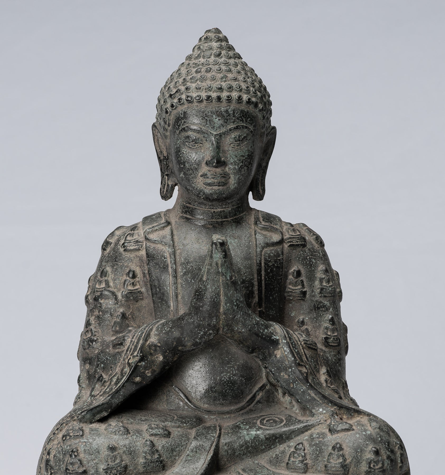 El casting es hermoso como puedes ver en los finos detalles de la cara. Cada detalle se representa perfectamente. La pátina distintiva de la pieza también es particularmente encantadora. Él sostiene sus manos juntas en la pose de adoración.