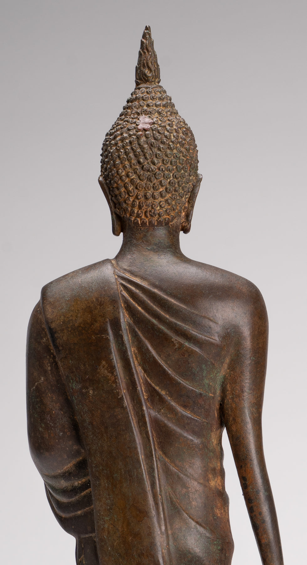 Estatua de Buda Caminante con Protección de Bronce de Pie Estilo Sukhothai Antiguo - 57 cm/23"