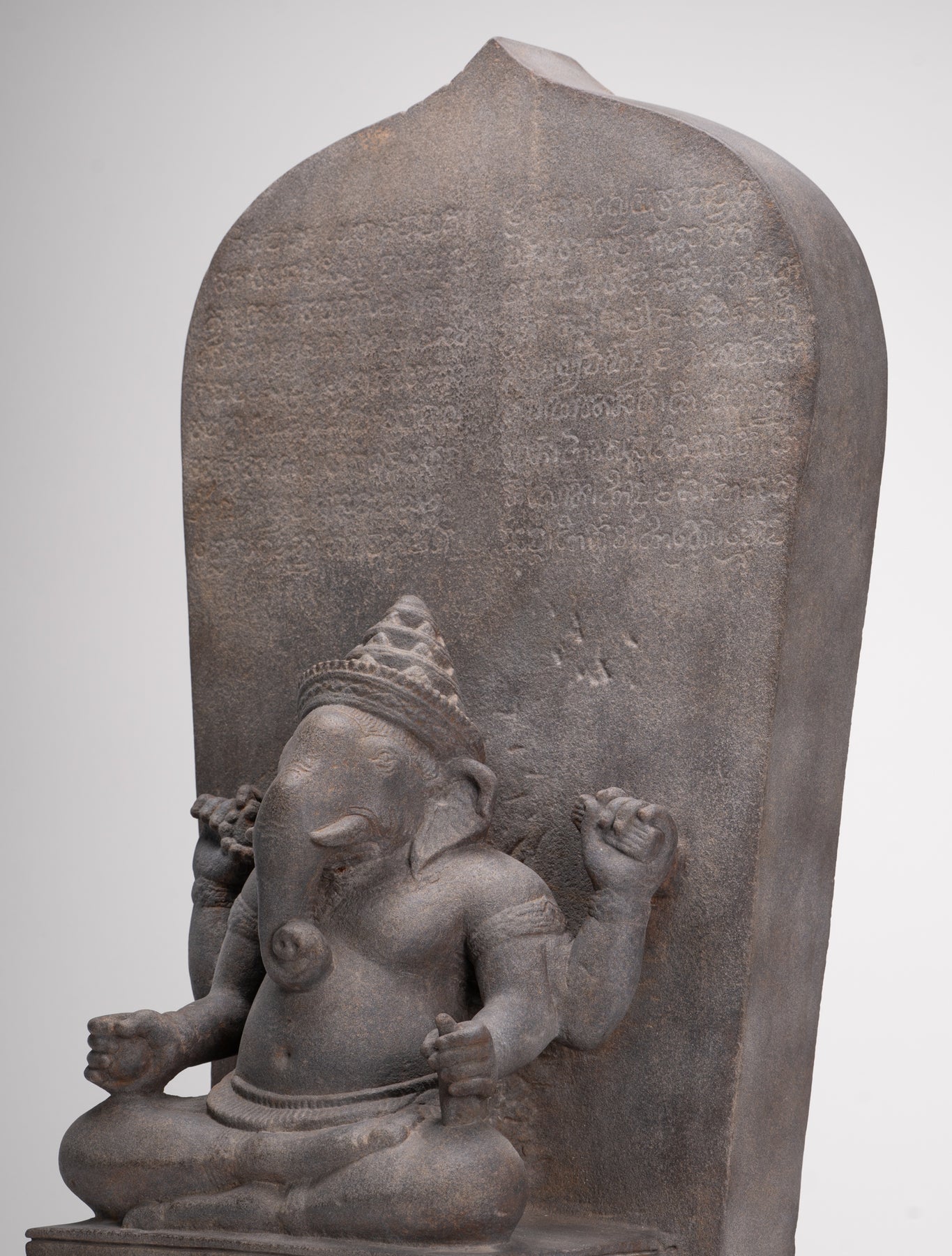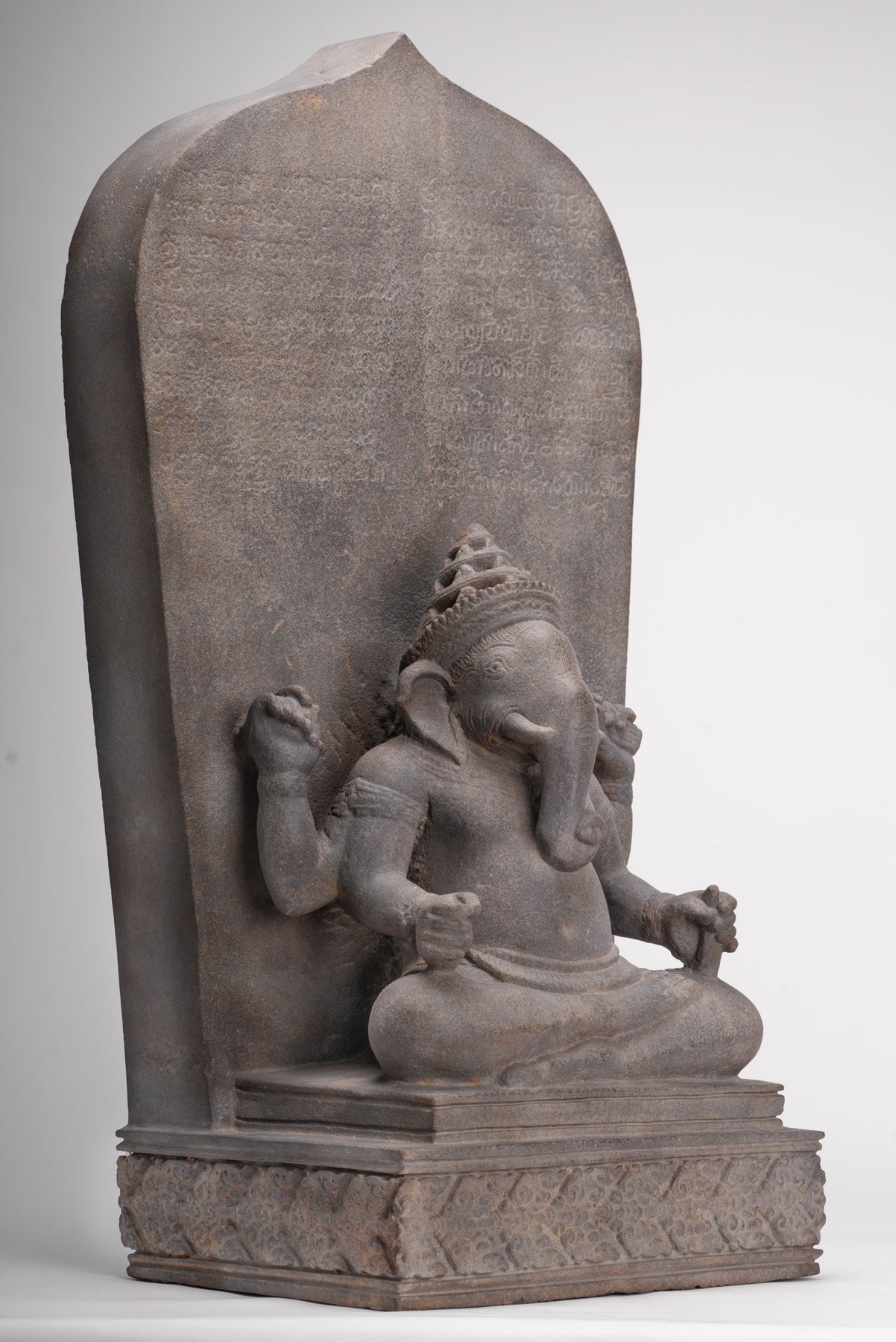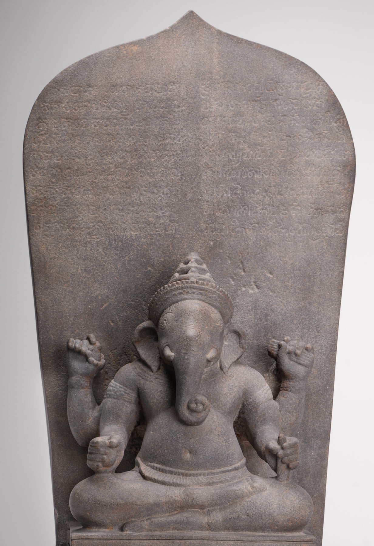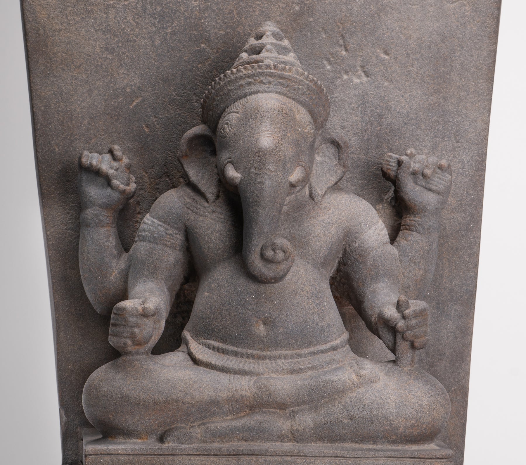 Una estela antigua de Angkor Wat de estilo jemer que representa a Ganesha sentado. El Ganesha tiene el estilo jemer clásico del siglo XII, lo que demuestra la sofisticación de las esculturas de Angkor.