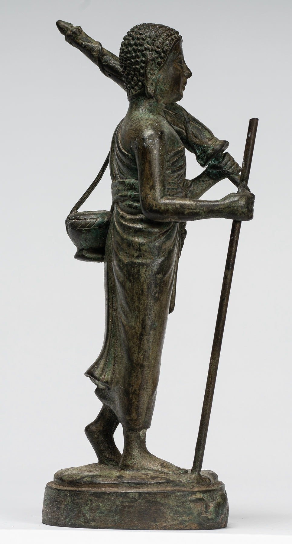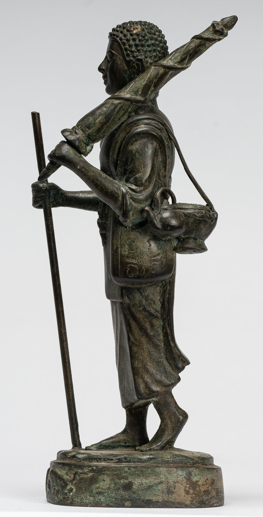 Monje - Antique Thai Style Bronze Dvaravati Devotee / Disciple of Buda Statue - 29cm / 12 "