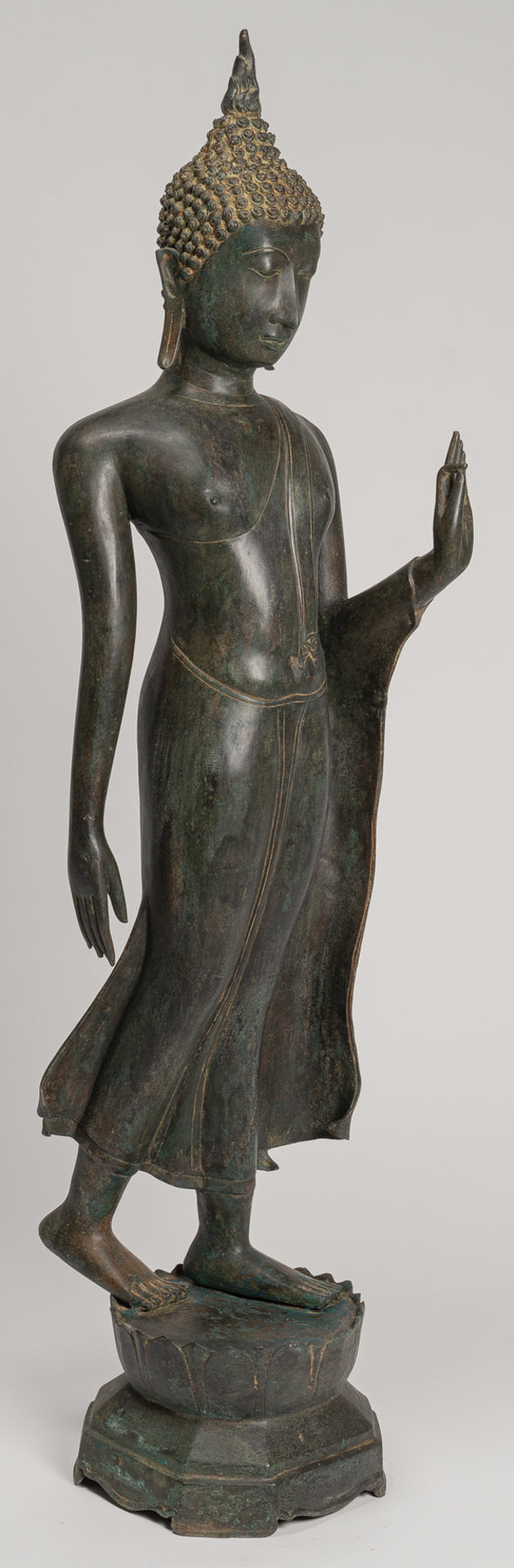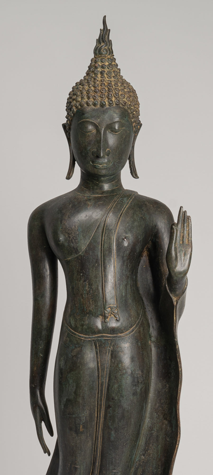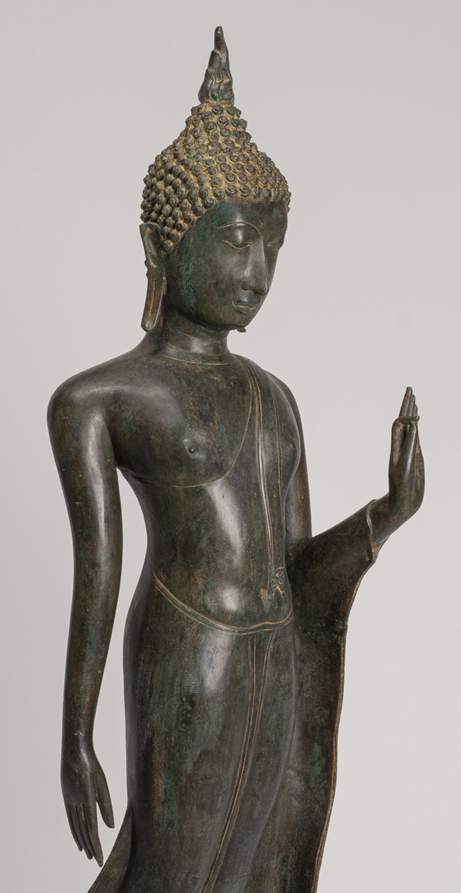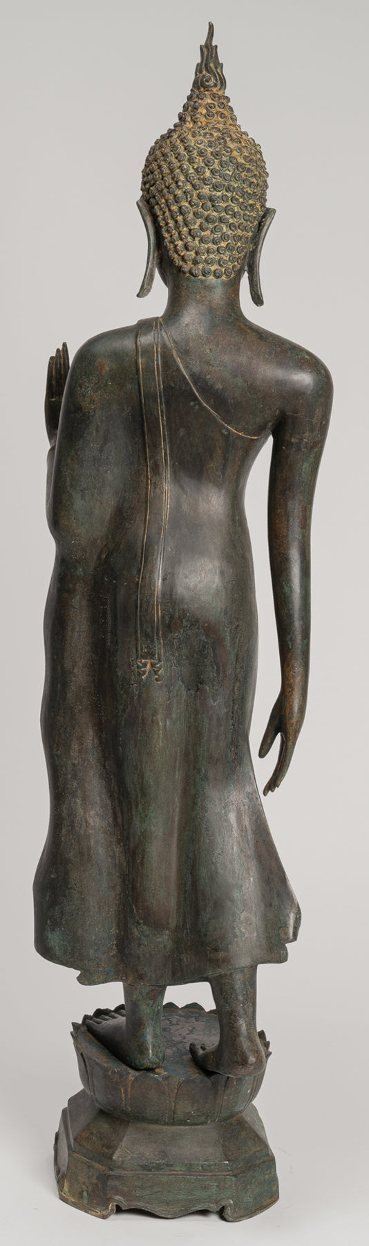 Estatua de Buda Caminante de Protección de Bronce Sukhothai de Estilo Tailandés Antiguo - 116cm/46"