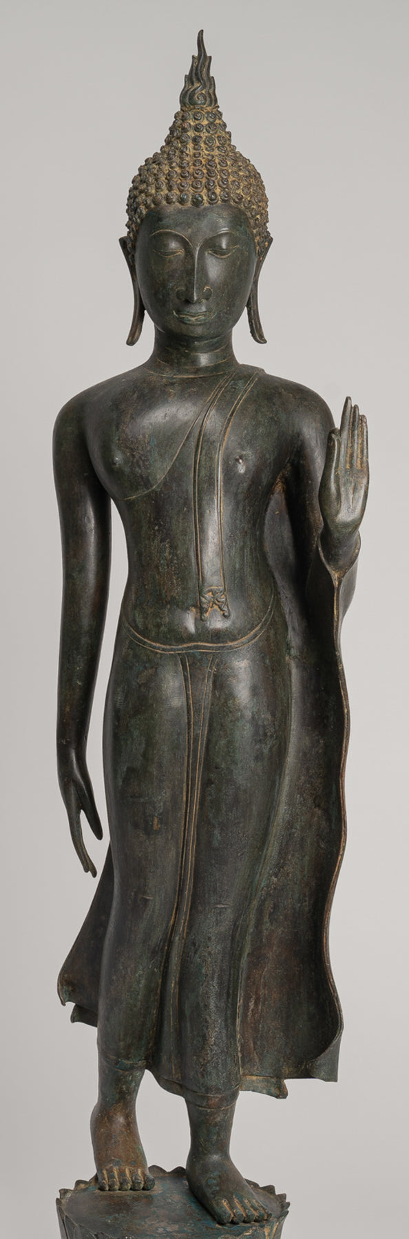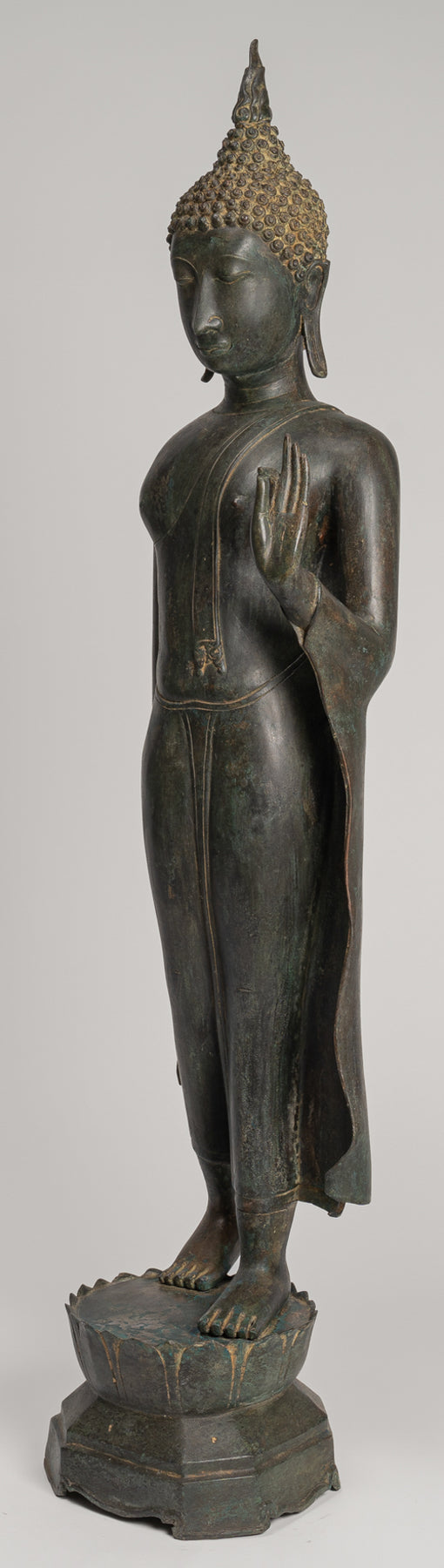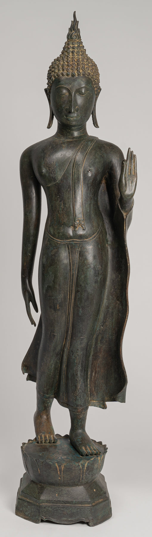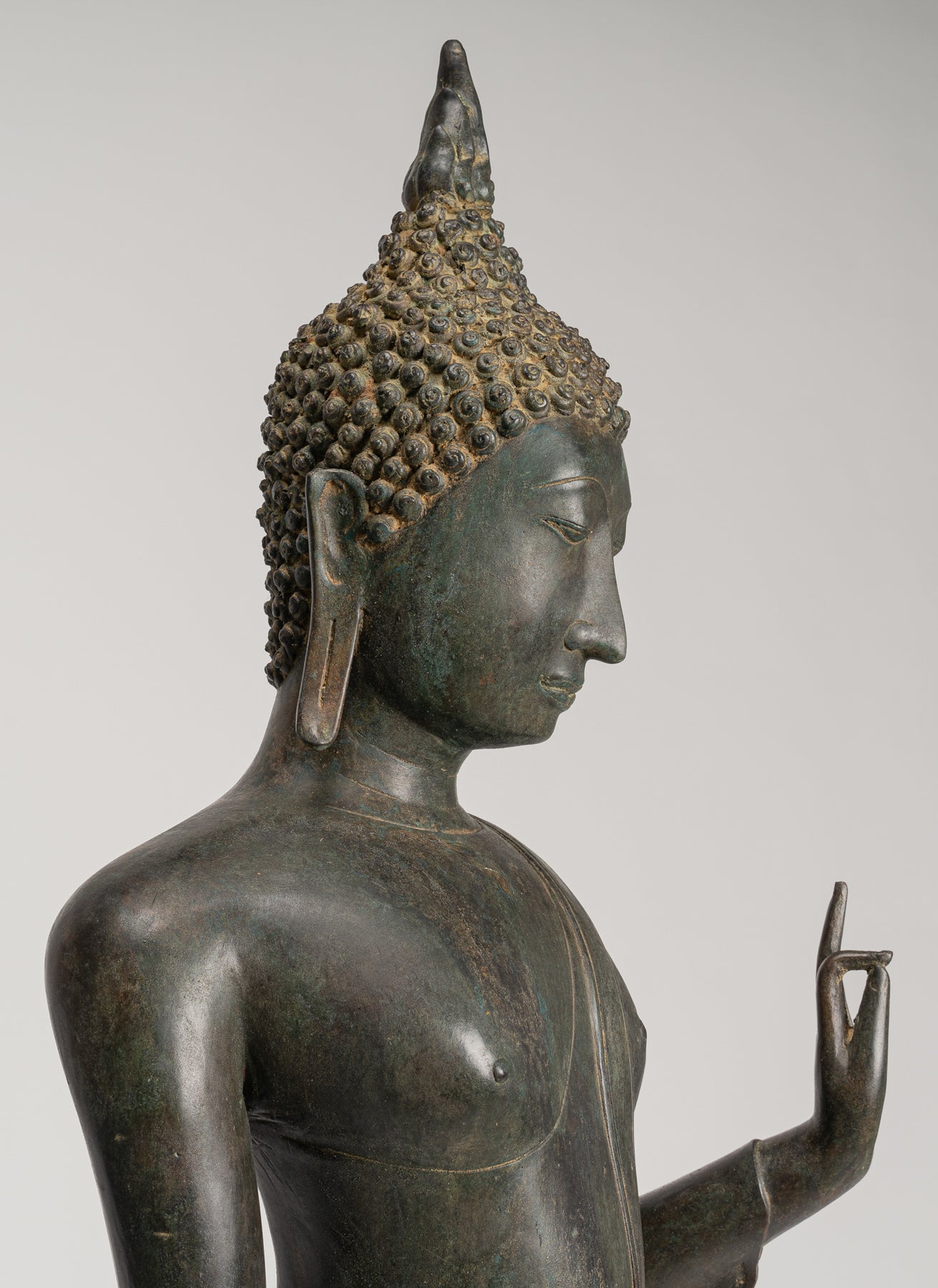 Estatua de Buda Caminante de Protección de Bronce Sukhothai de Estilo Tailandés Antiguo - 116cm/46"