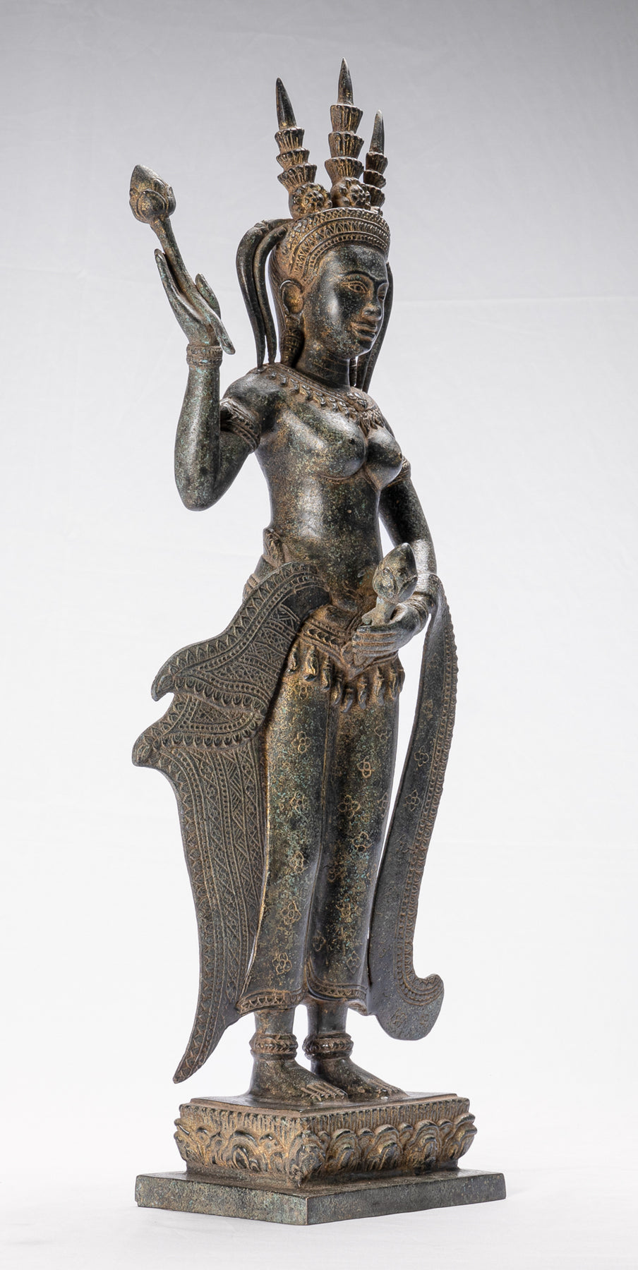 Un antiguo estilo jemer de bronce de pie apsara o ángel celestial en el estilo Angkor Wat.