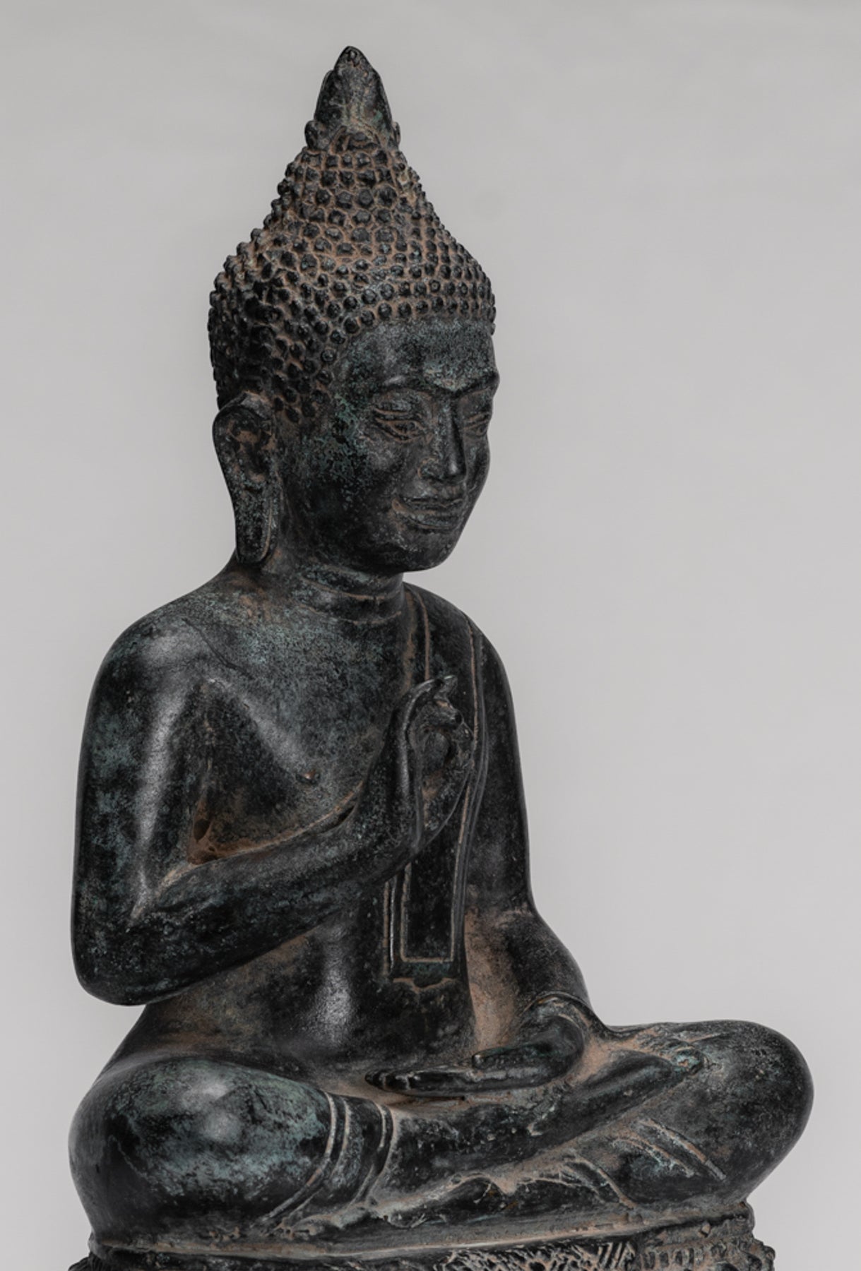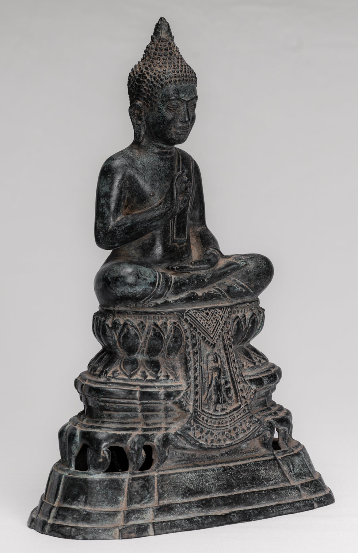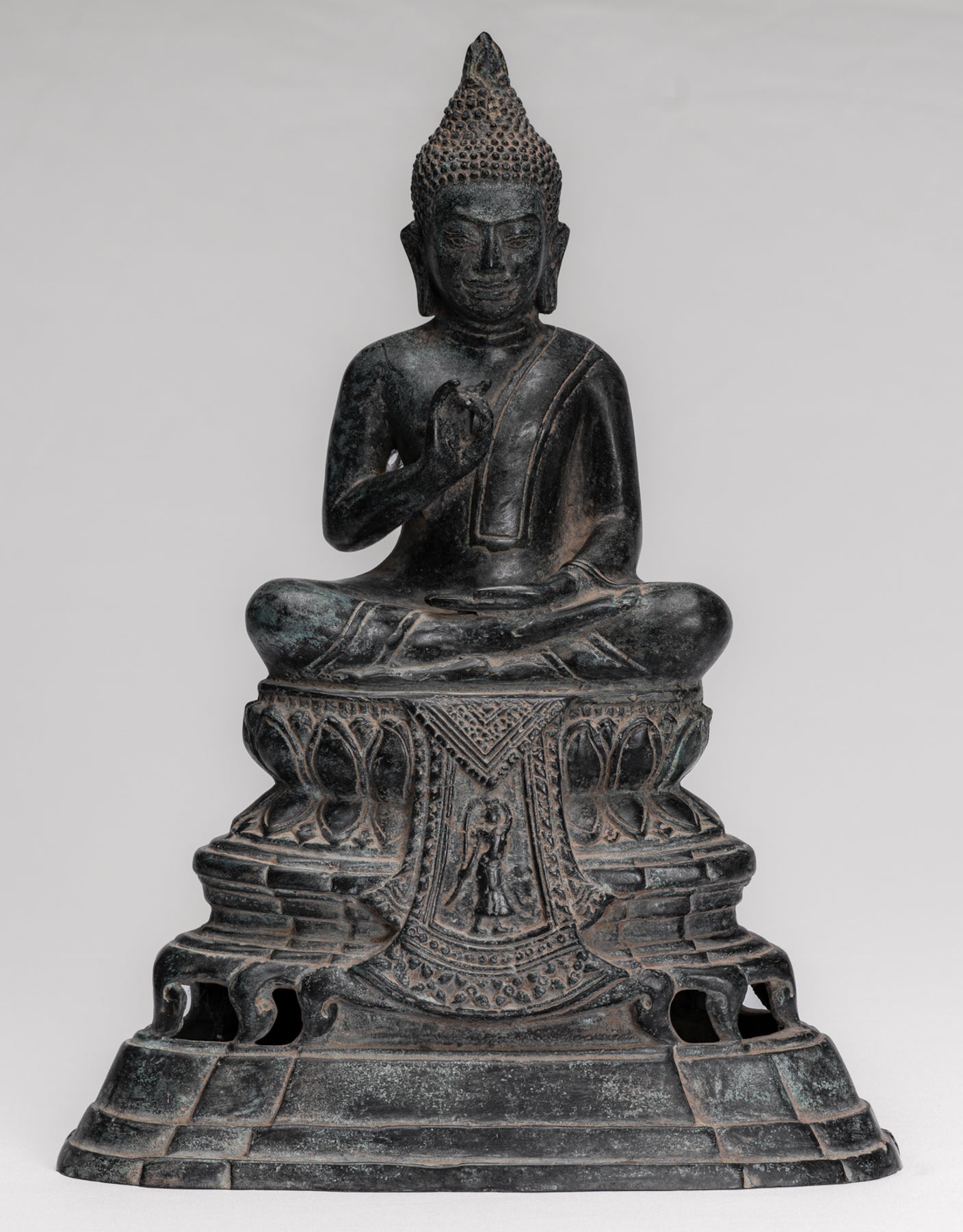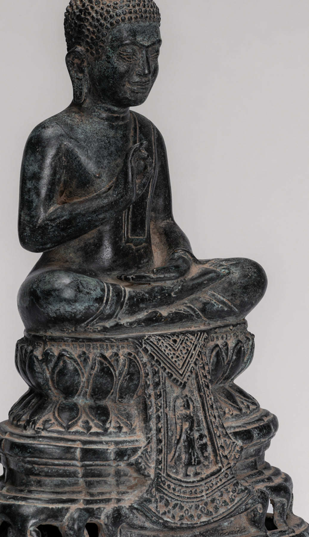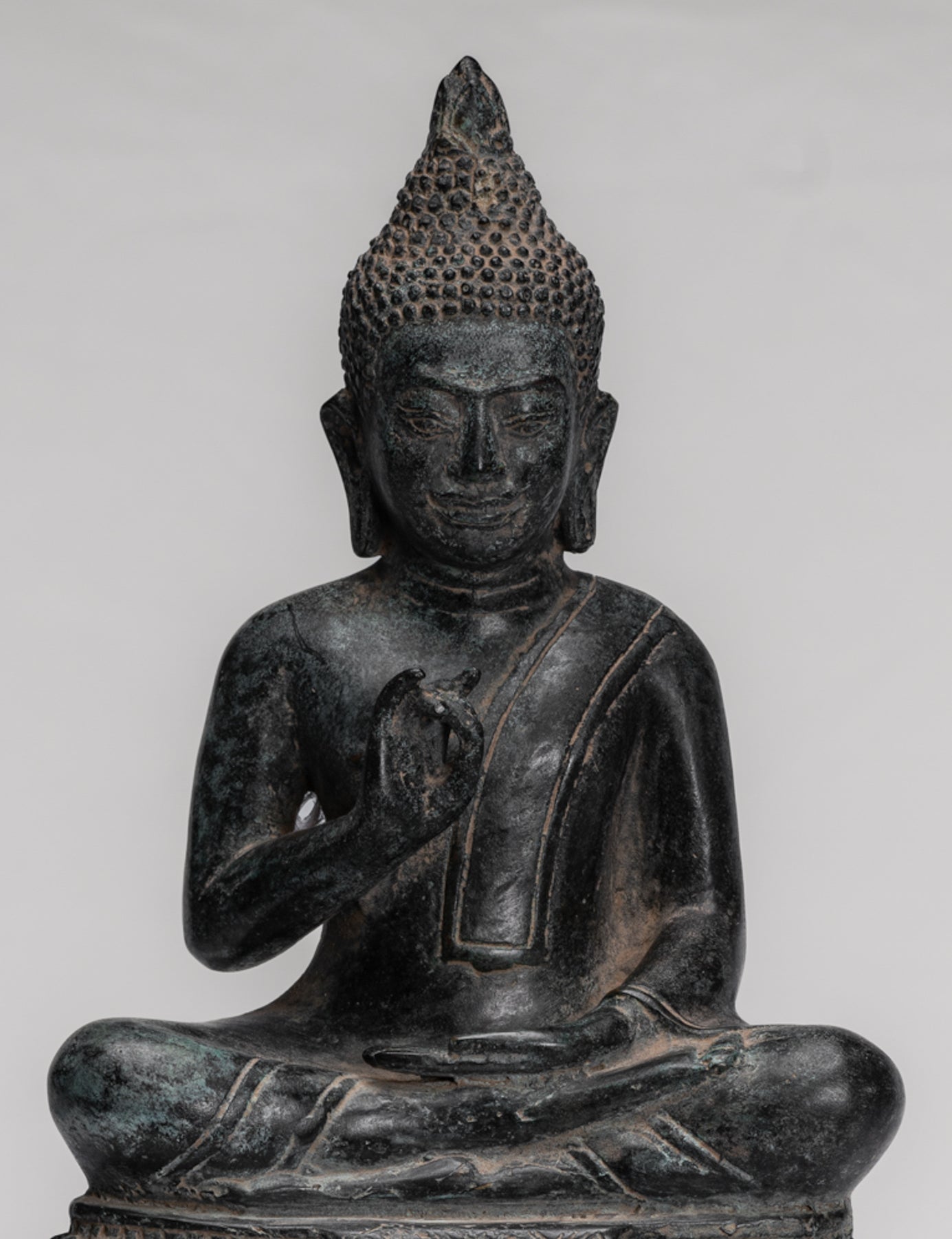 Buddha Statue - Buddha - Antique Khmer Style Enthroned Bronze Buddha Statue Teaching Mudra - 31cm/12"