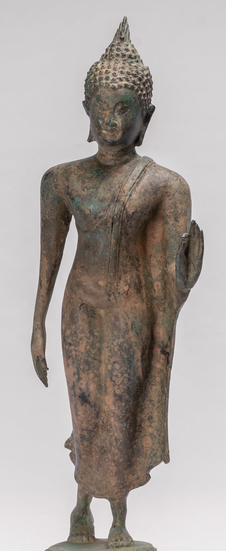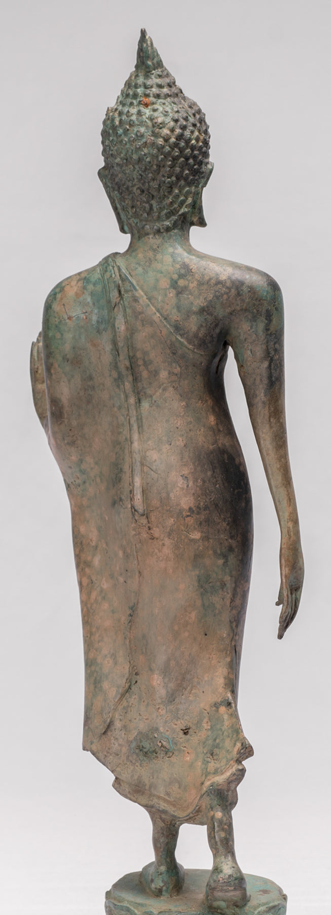 Estatua de Buda Caminante con Protección de Bronce de Pie Estilo Sukhothai Antiguo - 42cm/17"