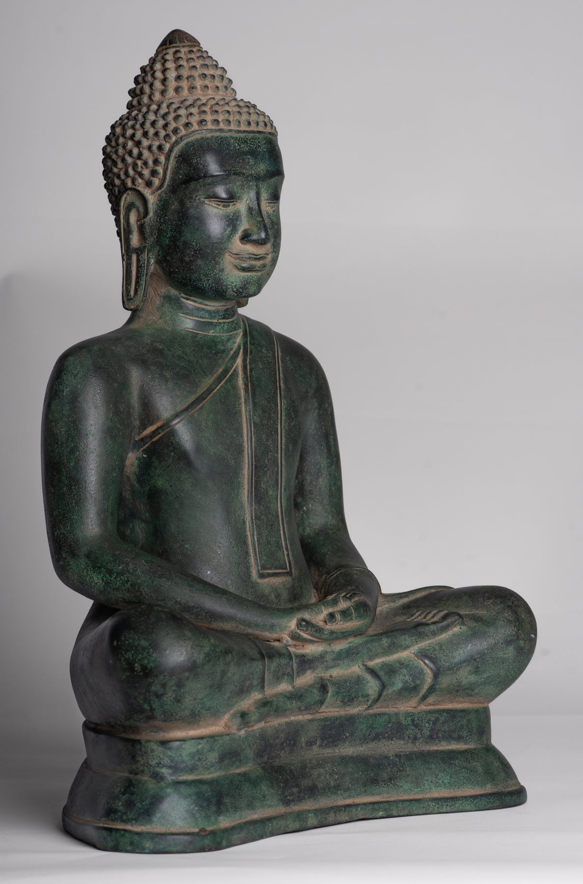 Estatua de Buda - Estatua de Buda de meditación sentada de bronce estilo jemer antiguo - 40 cm/16"