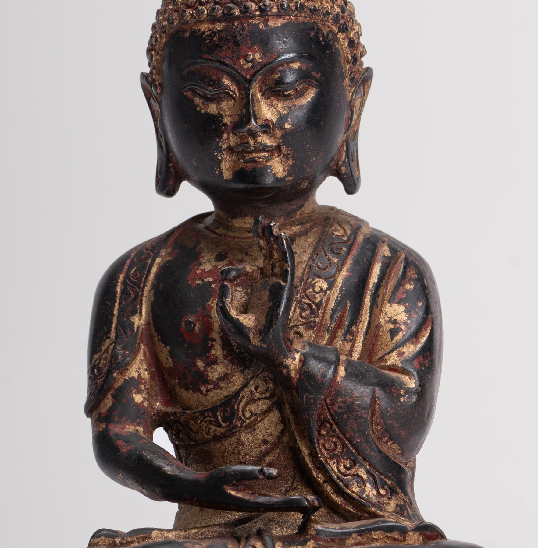 Una antigua estatua de Buda docente sentado de estilo chino.