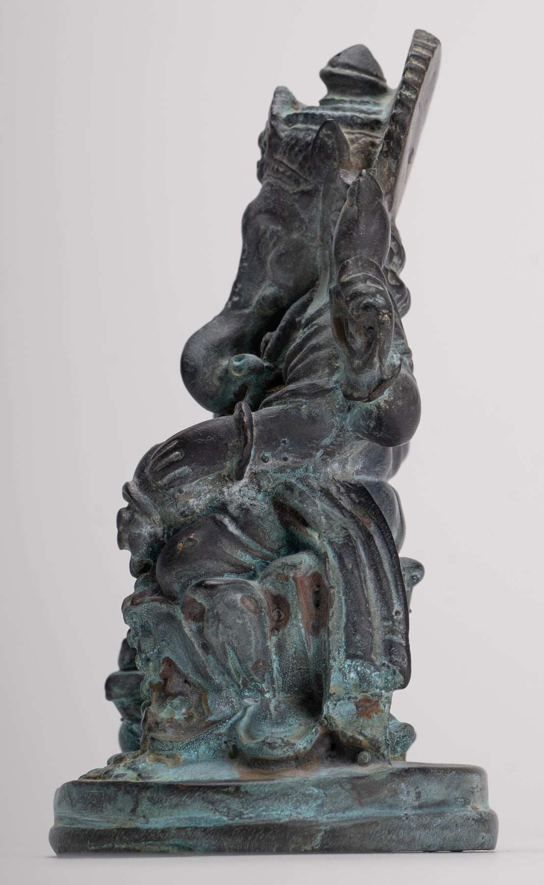 • Estatua antigua de Vara Ganapati Ganesh de bronce, estilo tailandés, sentada, con 4 brazos, 15,5 cm/6 pulgadas