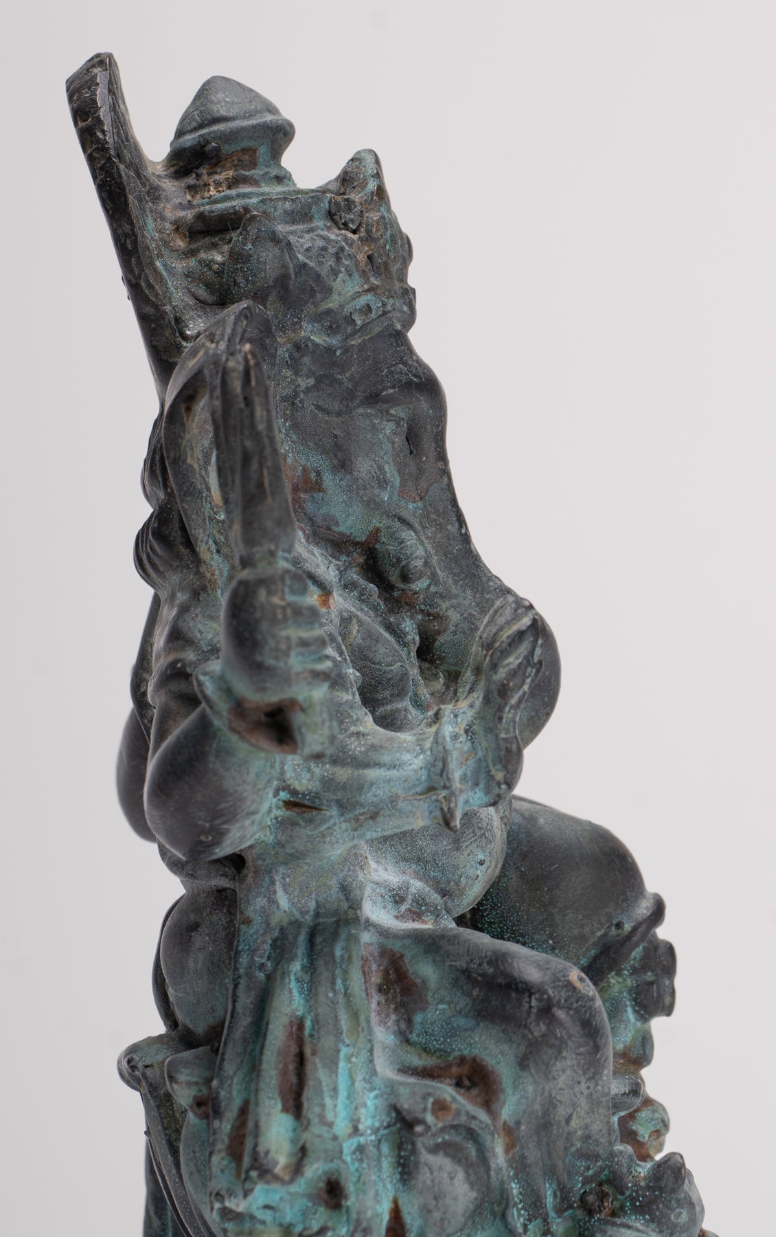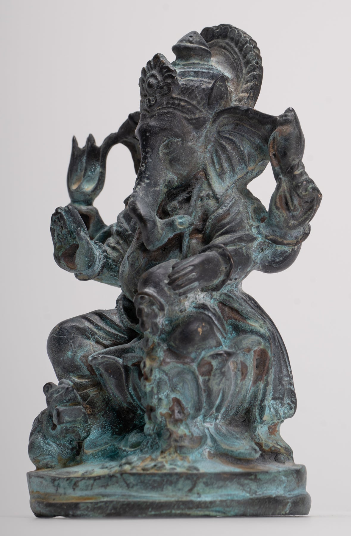 Ganesha Statue - Antique Thai Style Bronze Seated 4-Arm Vara Ganapati Statue - 15.5cm/6"