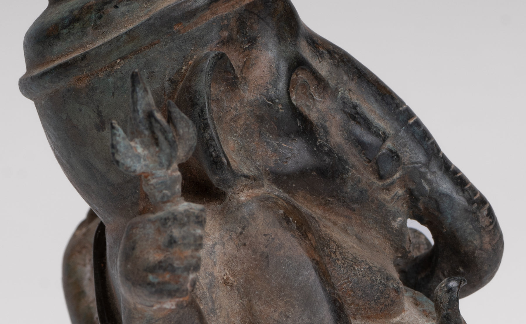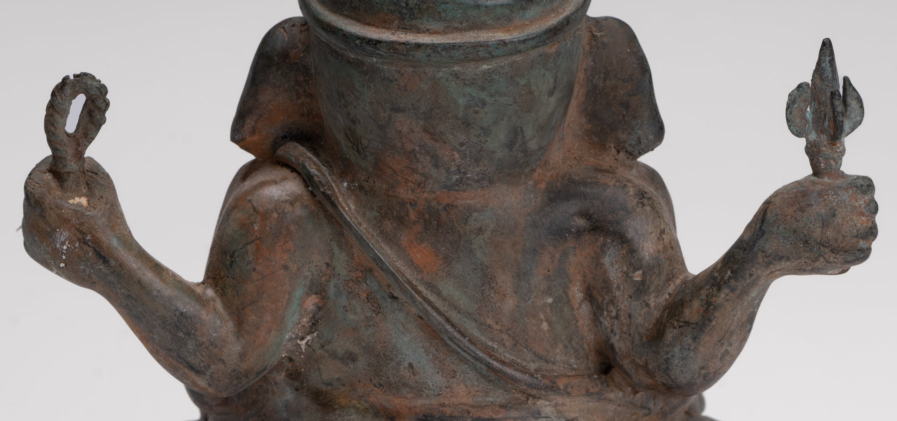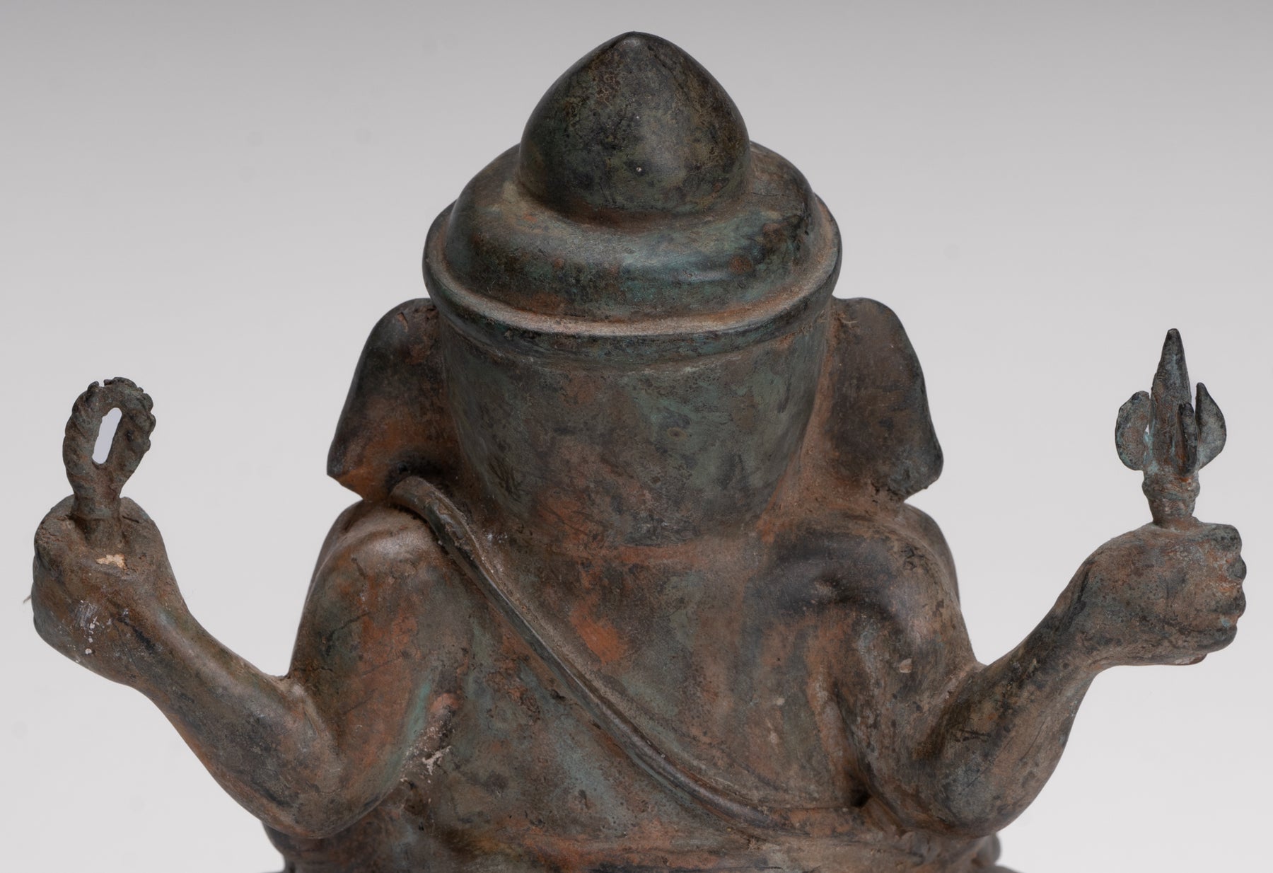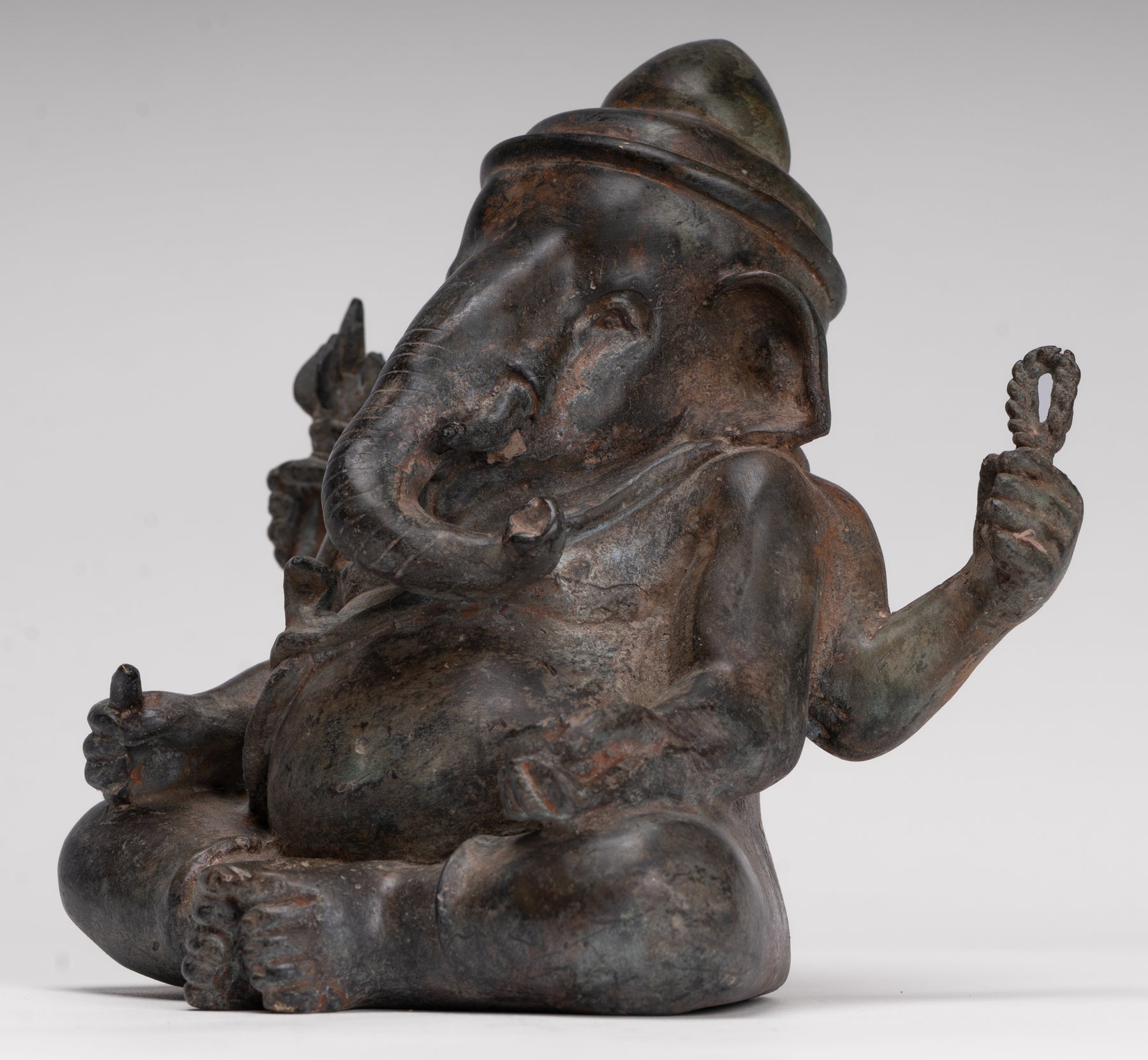 Estatua de Ganesha de 4 brazos de bronce de estilo tailandés antiguo - 18 cm/7"