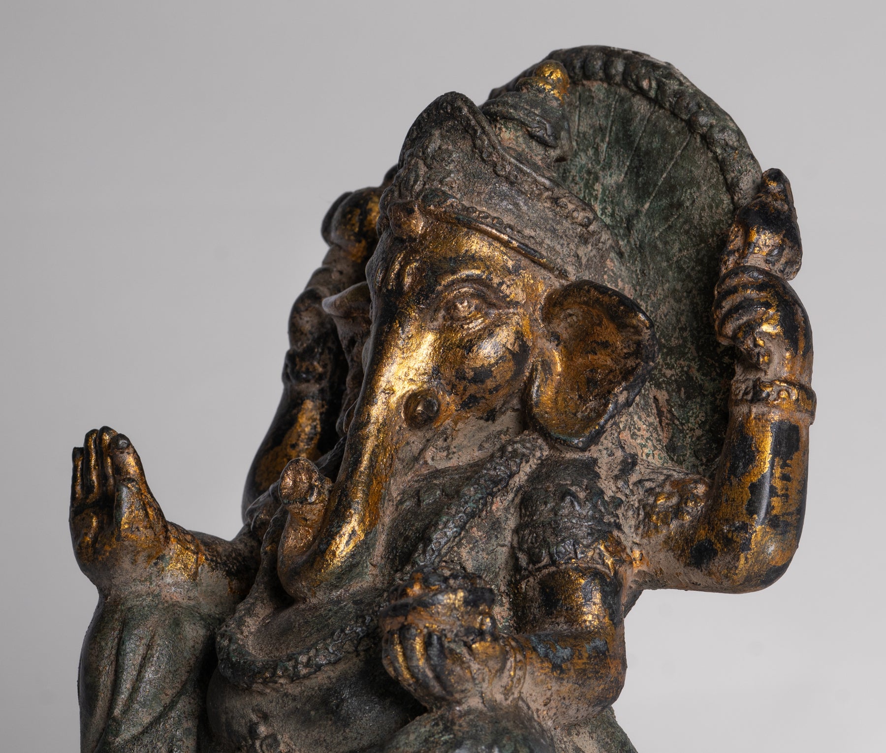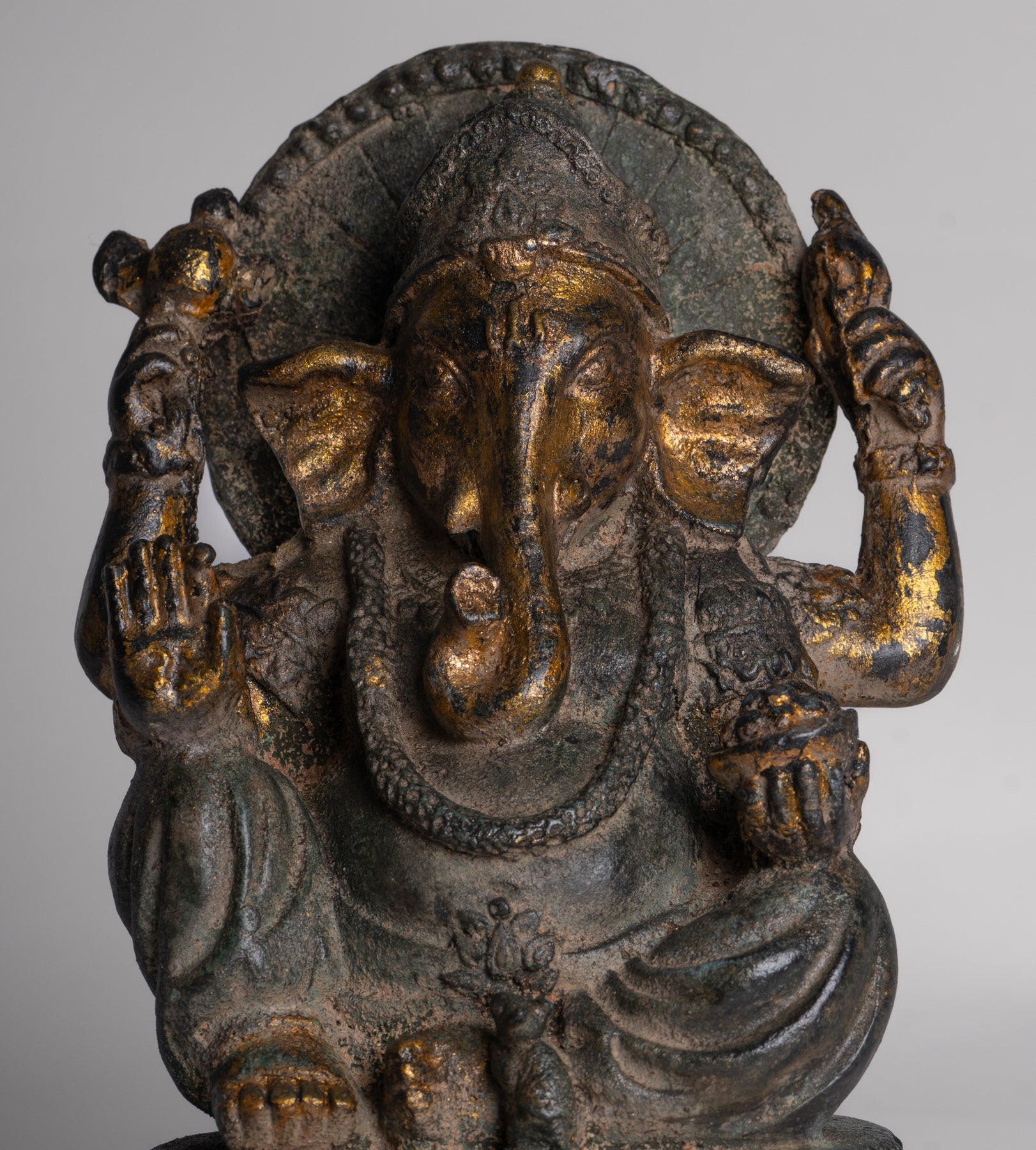 Ganesh - Ganesha sentado en bronce estilo tailandés antiguo - 22 cm/9"