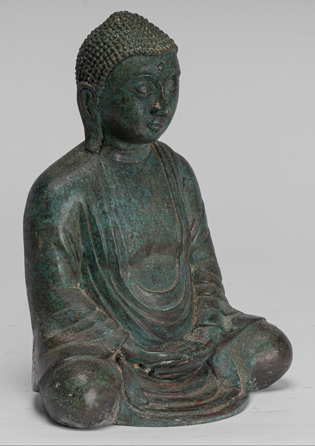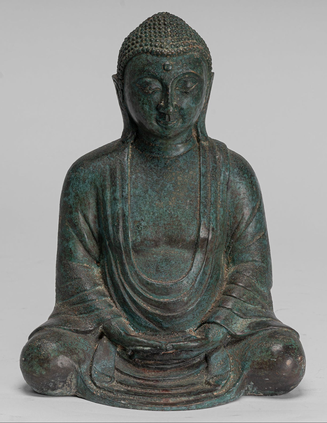 Una meditación de estilo japonés antiguo y hermoso y antiguo Amitabha Buda.
