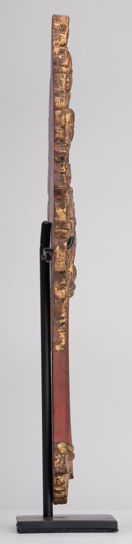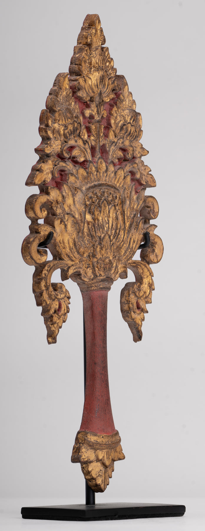 Ventilador de monje de lacado birmano antiguo del siglo XVIII - 38 cm / 15 "