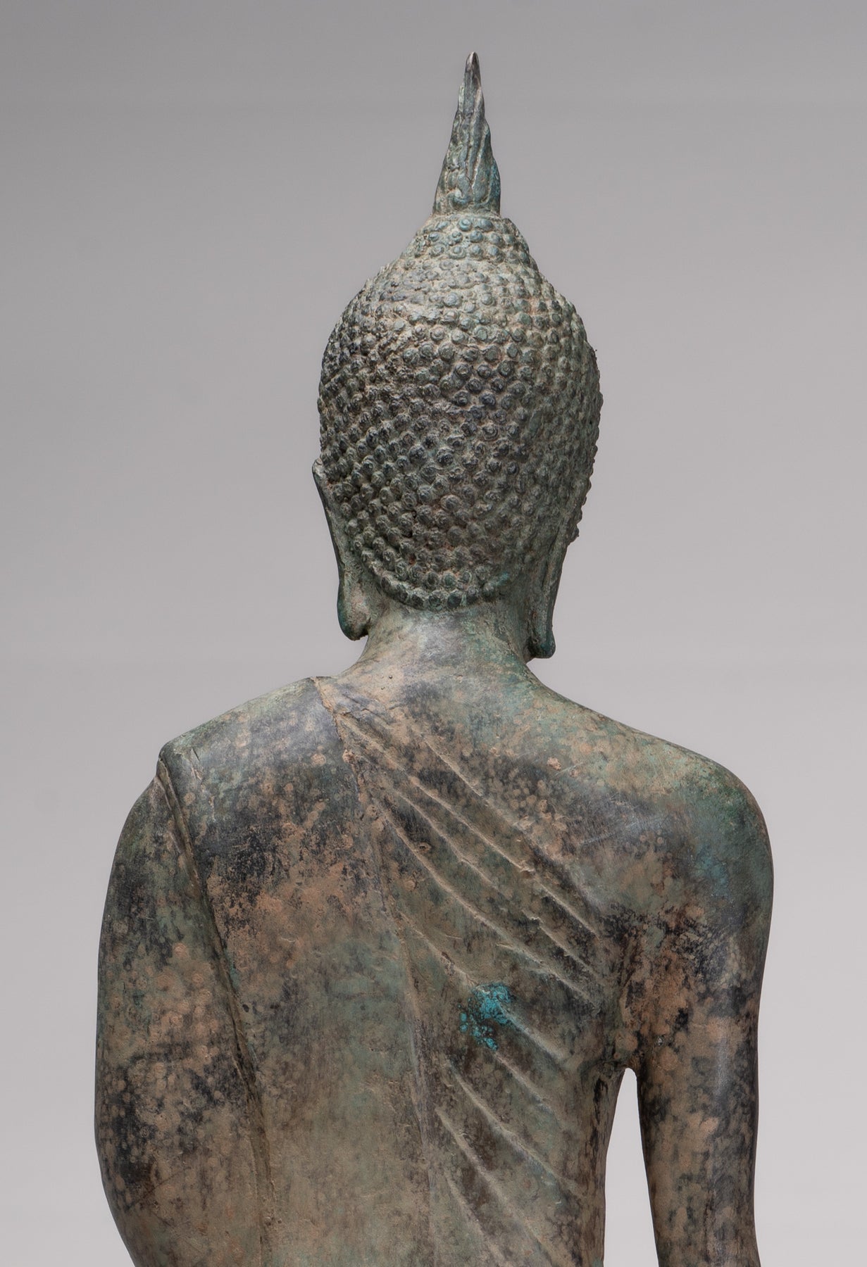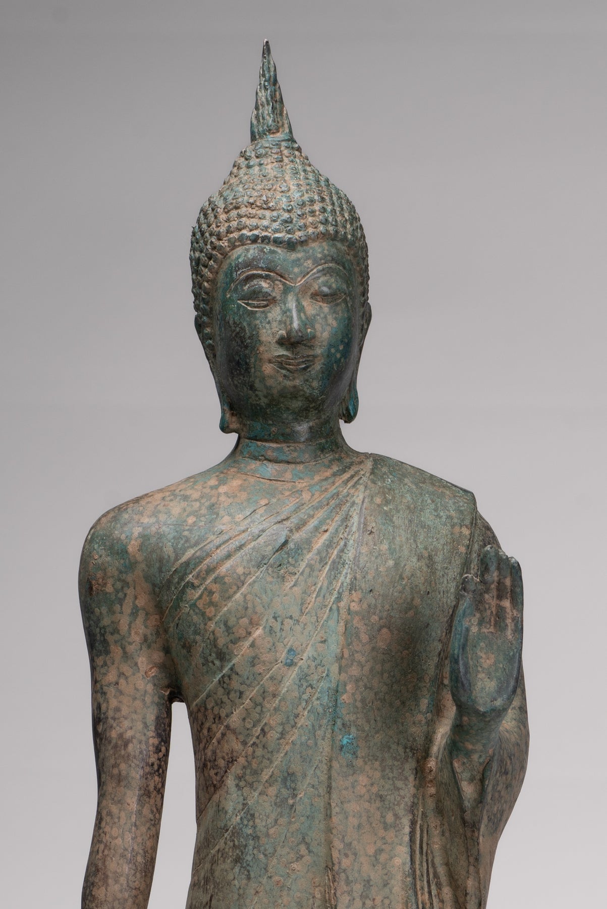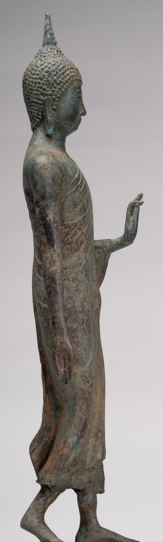 Antique Sukhothai Style Standing Bronze Protection Walking Bouddha Statue - 65 cm / 26 "