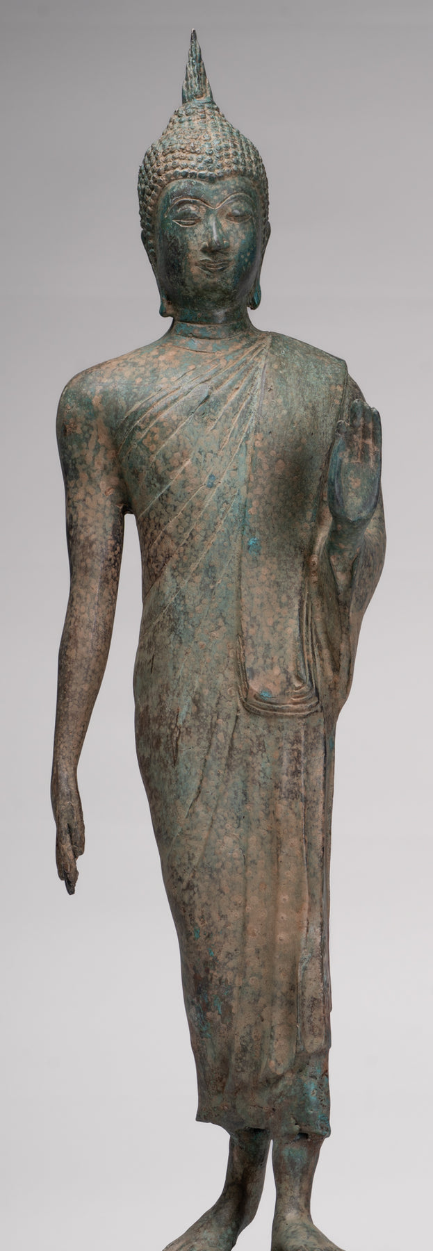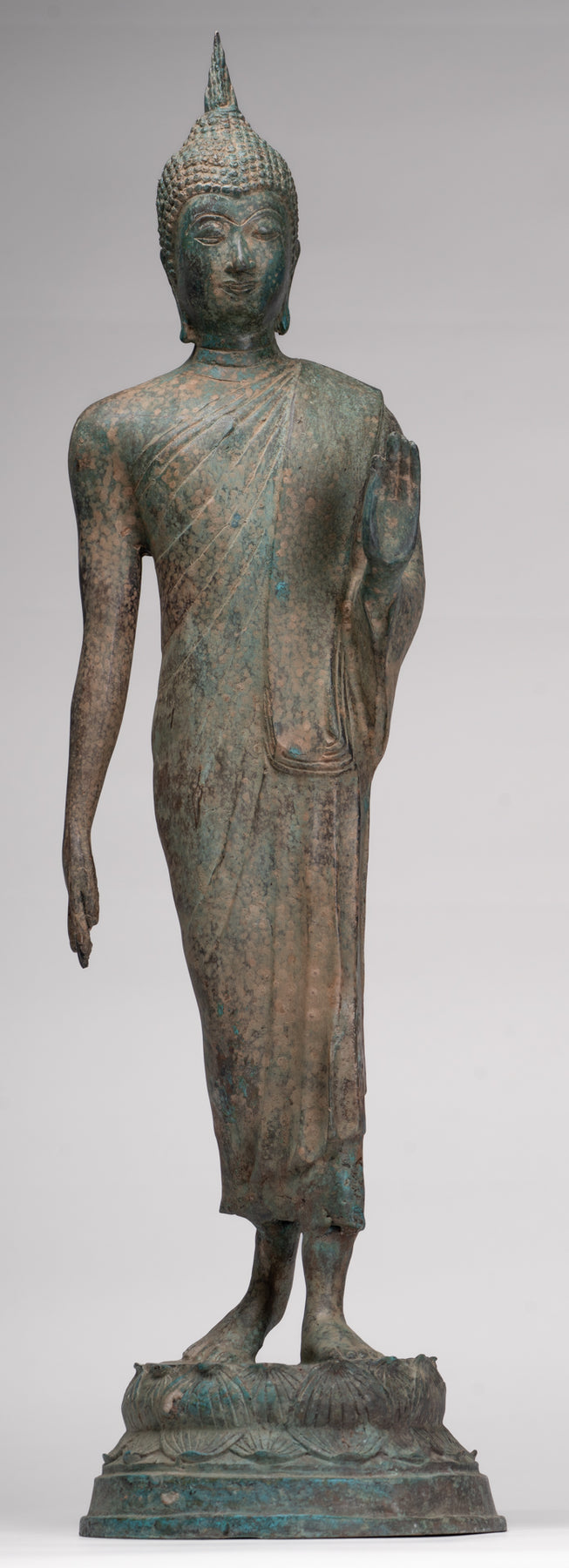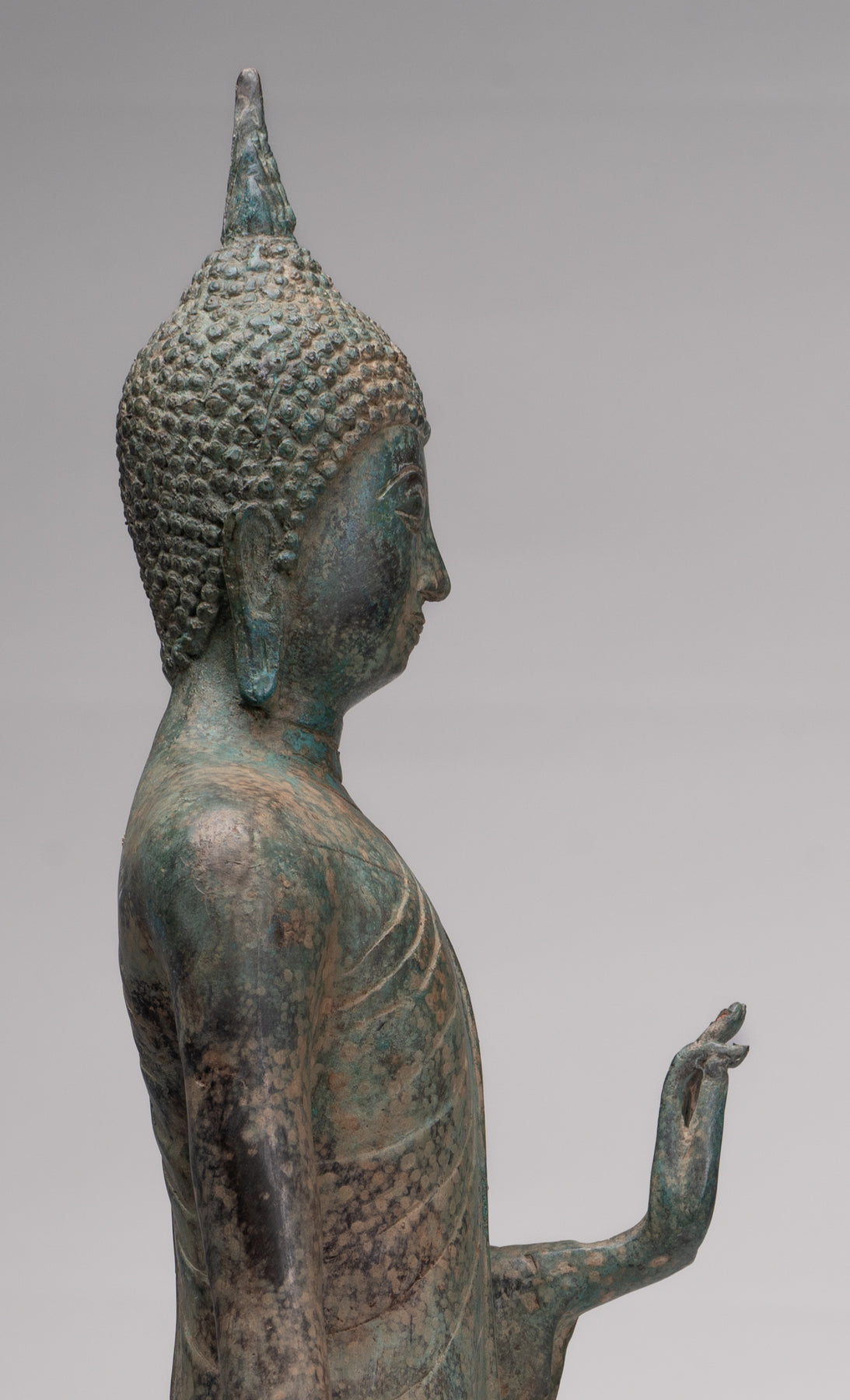Antique Sukhothai Style Standing Bronze Protection Walking Bouddha Statue - 65 cm / 26 "