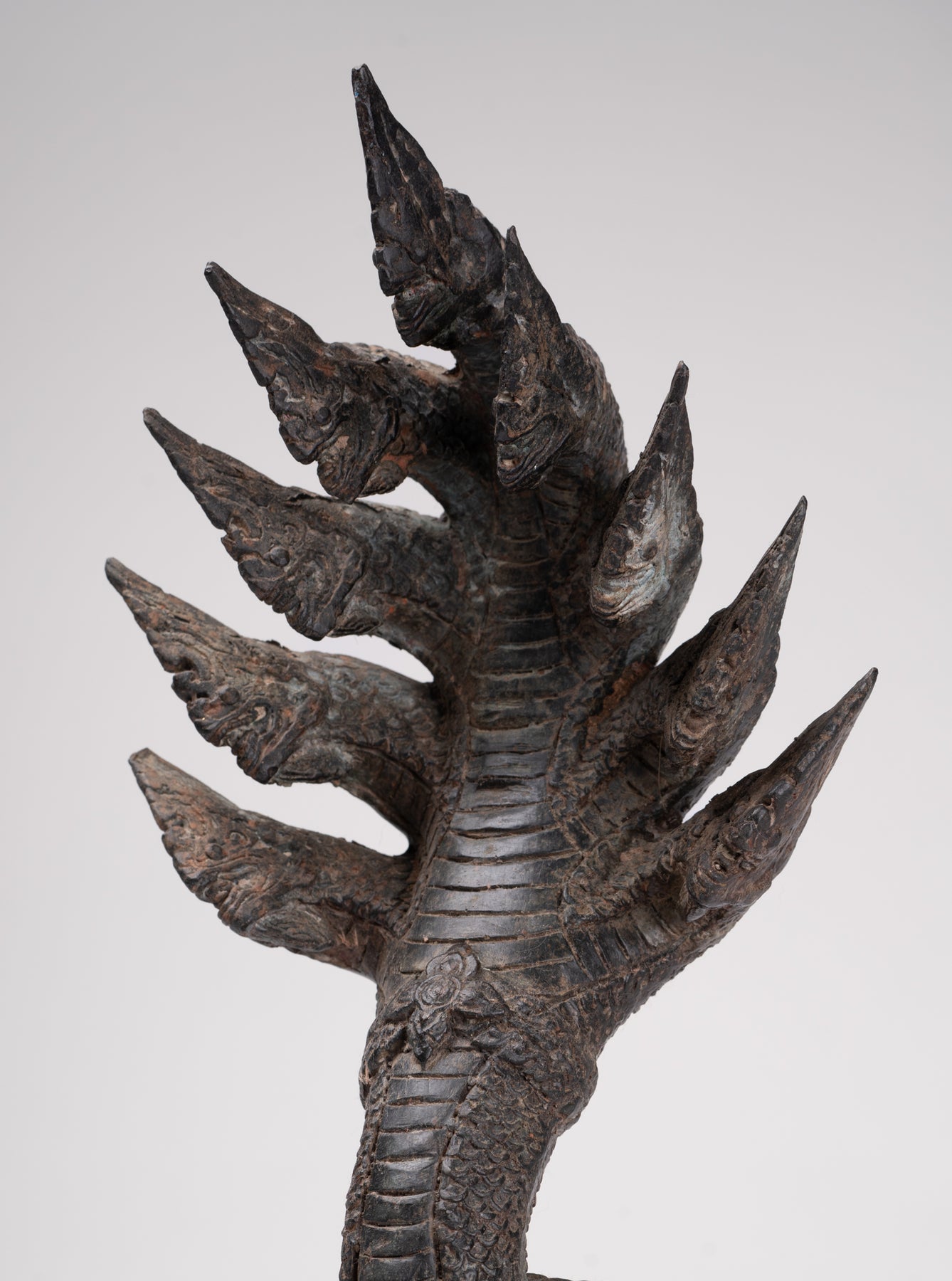 Antique Thai Style Bronze Nine Head Protective Naga, Snake or Serpent Statue - 35cm/14"