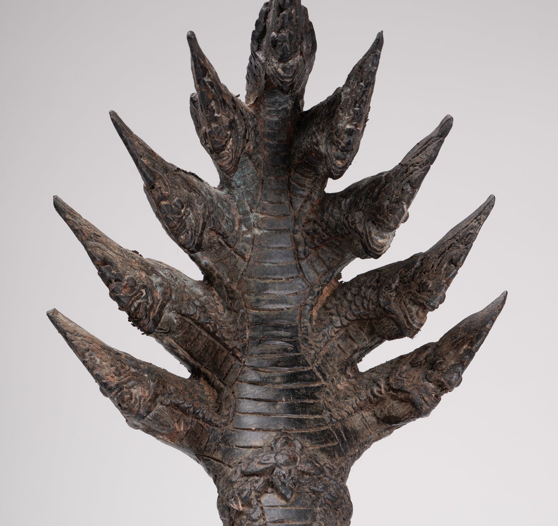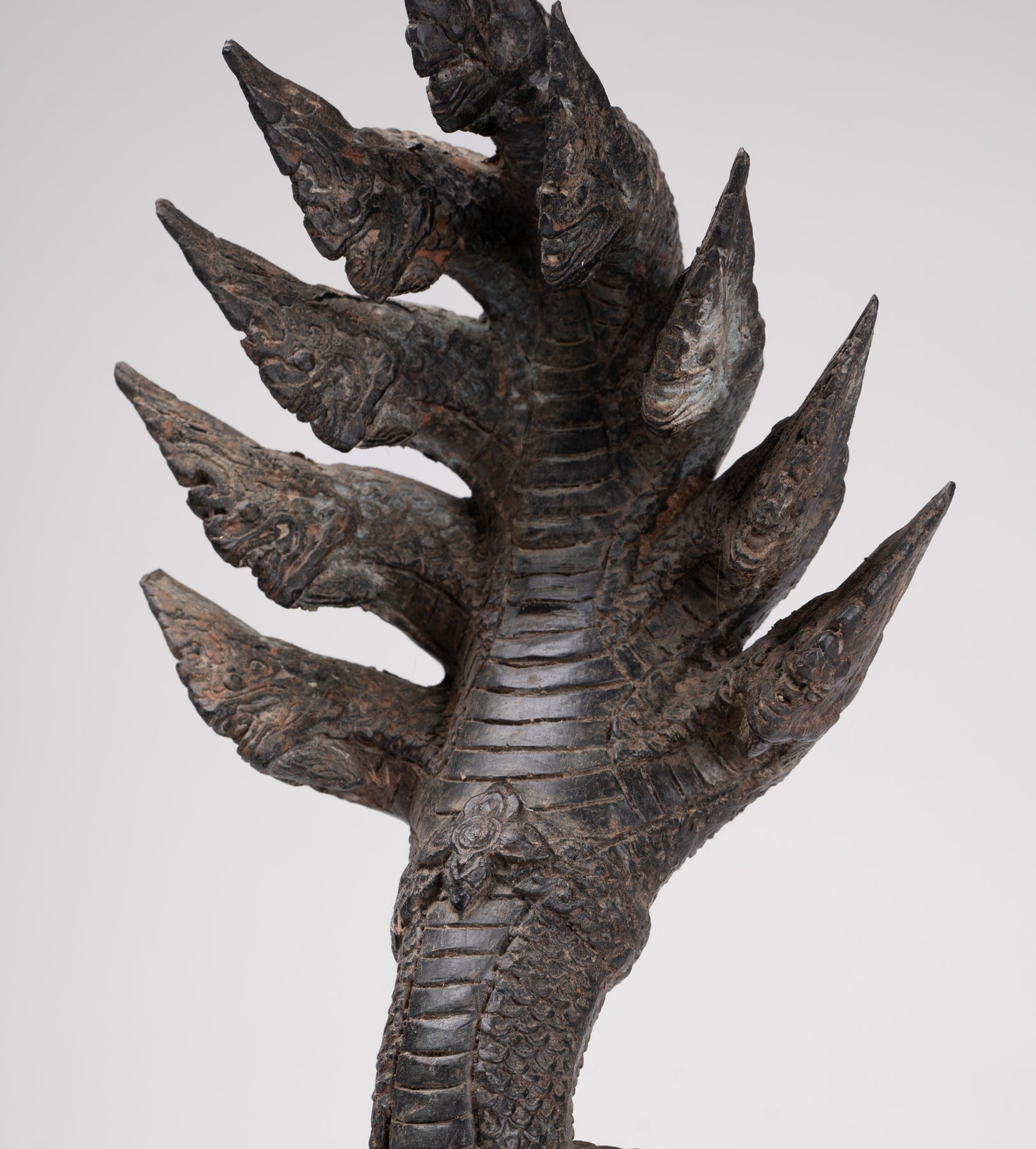 Bronze de style thaï antique neuf tête protectrice Naga, serpent ou statue de serpent - 35 cm / 14 "