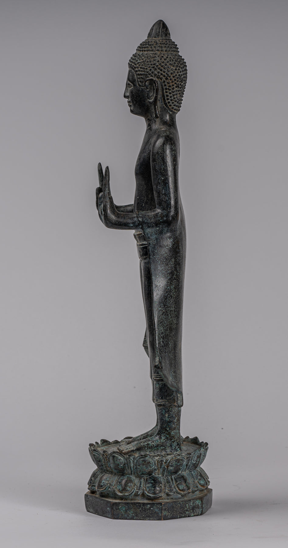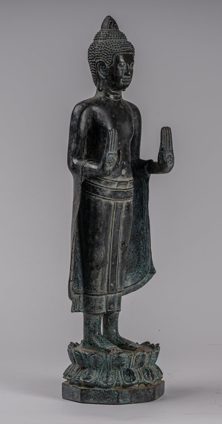 Antique Khmer Style Bronze Double Abhaya Mudra Protection Bouddha Statue - 49cm / 20 "
