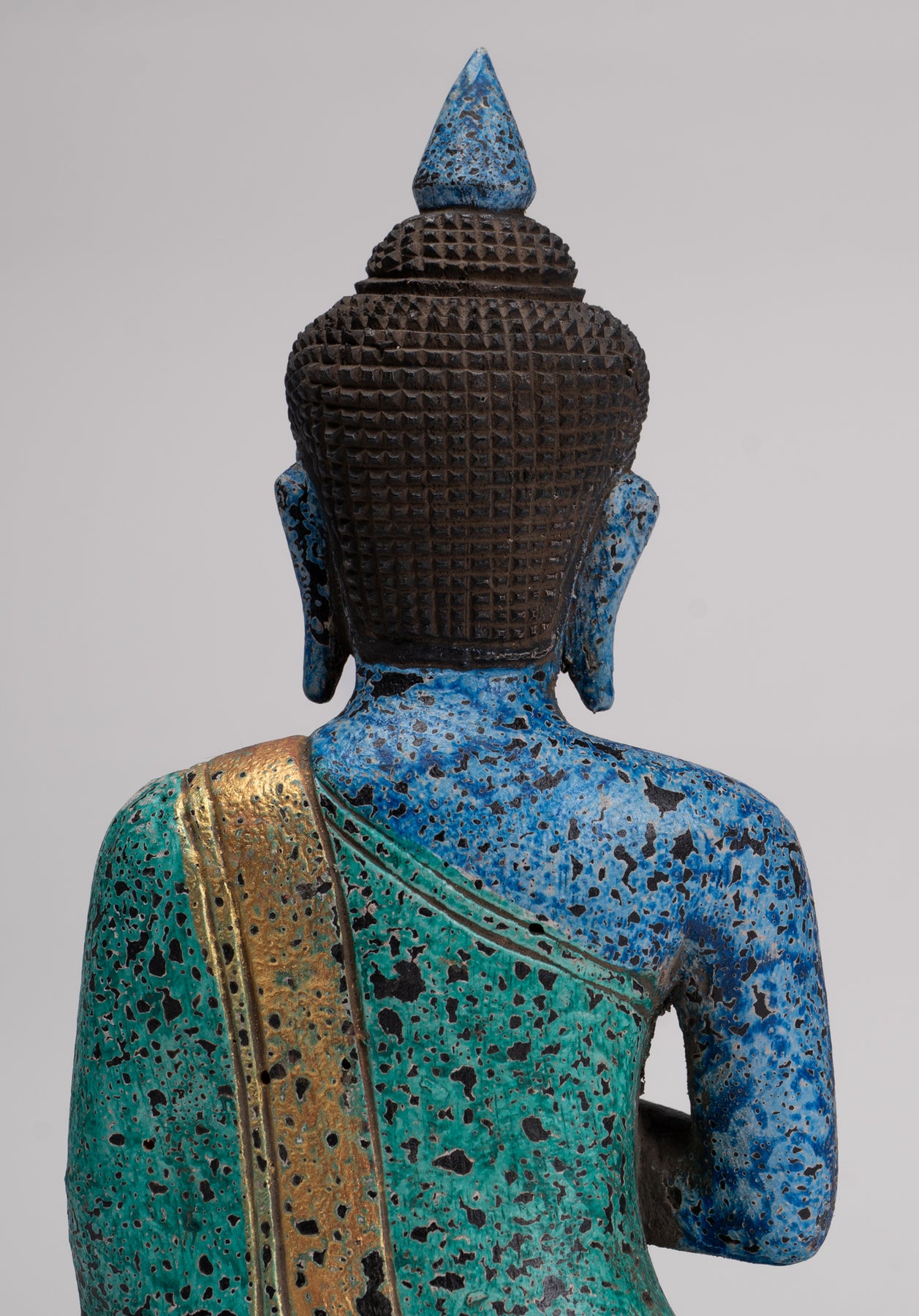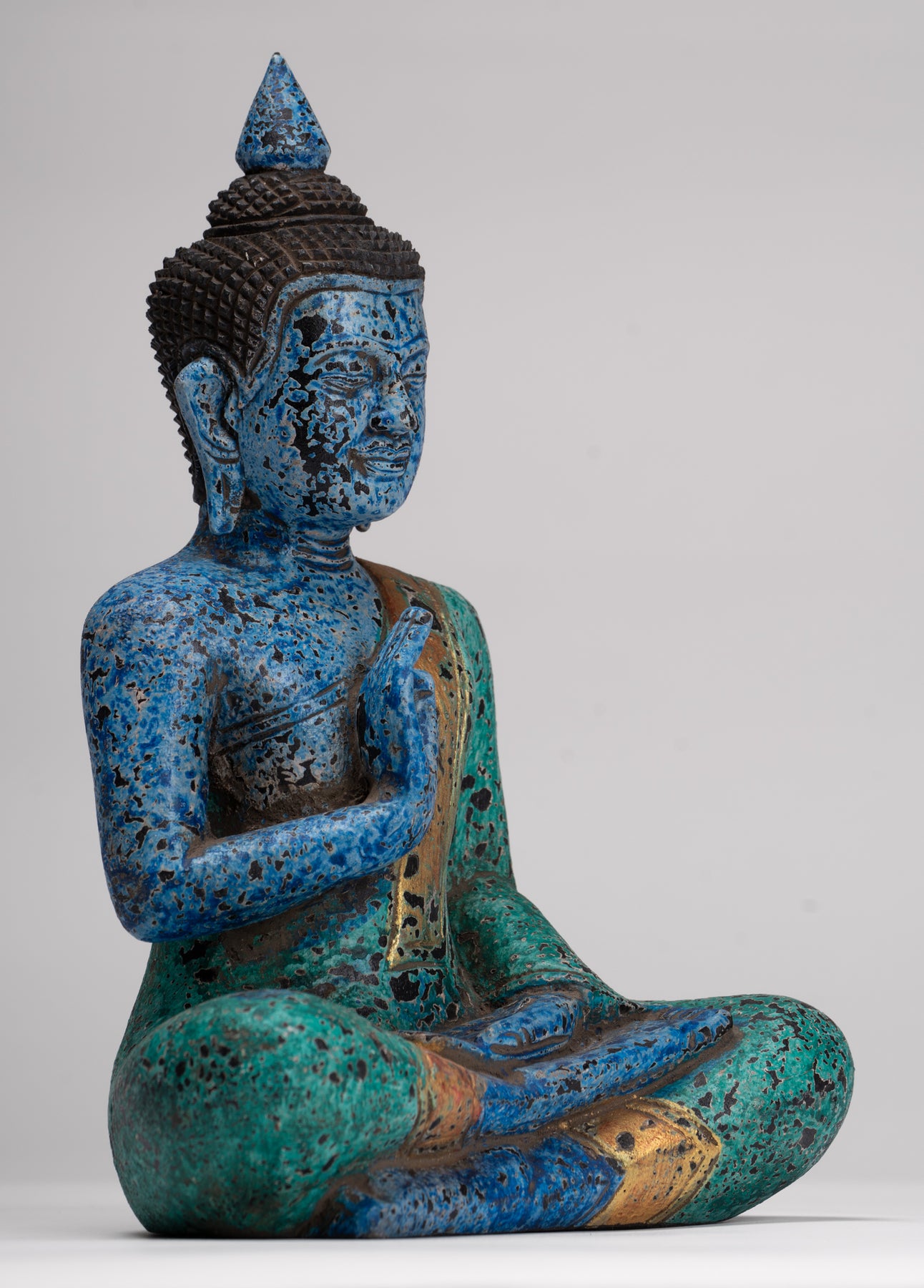 Statue de Bouddha - style khmer antique Cambodge Statue de bouddha en bois assis enseignant Mudra - 27 cm / 11 "