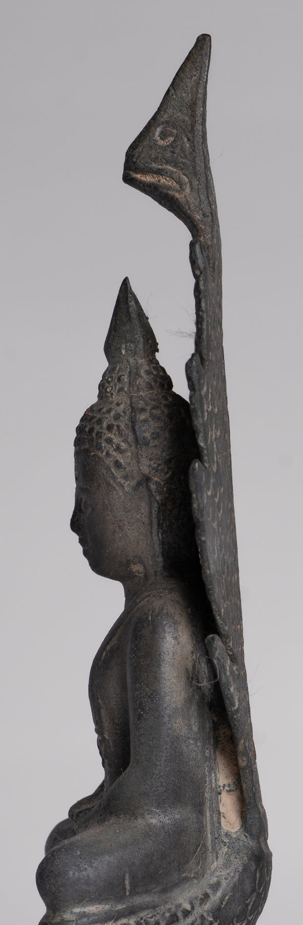 • Statue antique de Bouddha Naga méditant en bronze de style Sukhothai - 21 cm/8"