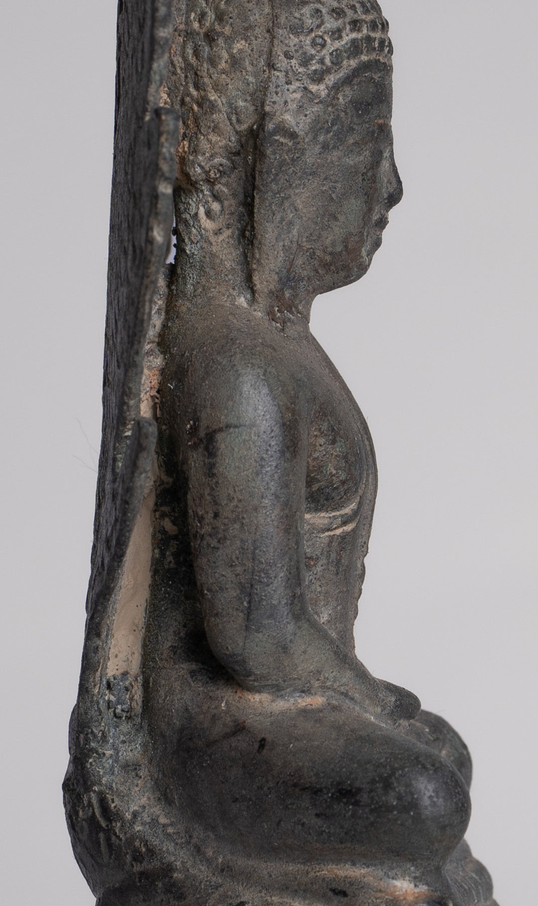 Contrairement aux sculptures en relief sculptées dans des stèles de pierre, cette figure est coulé entièrement en rond, ce qui suggère qu'il a été conçu pour être admiré sous tous les angles. Un tel savoir-faire reflète le Idéal de l’ère Sukhothai cet art sacré doit rayonner de présence et d’harmonie à l’intérieur des temples, invitant les fidèles à expérimenter la sérénité du Bouddha sous tous les angles. Bien qu'imprégnée d'une profonde signification religieuse et façonnée sous la direction d'un prêtre, la statue porte un symbole saisissant. réalisme et vitalité qui révèlent le talent artistique des sculpteurs thaïlandais à leur meilleur.