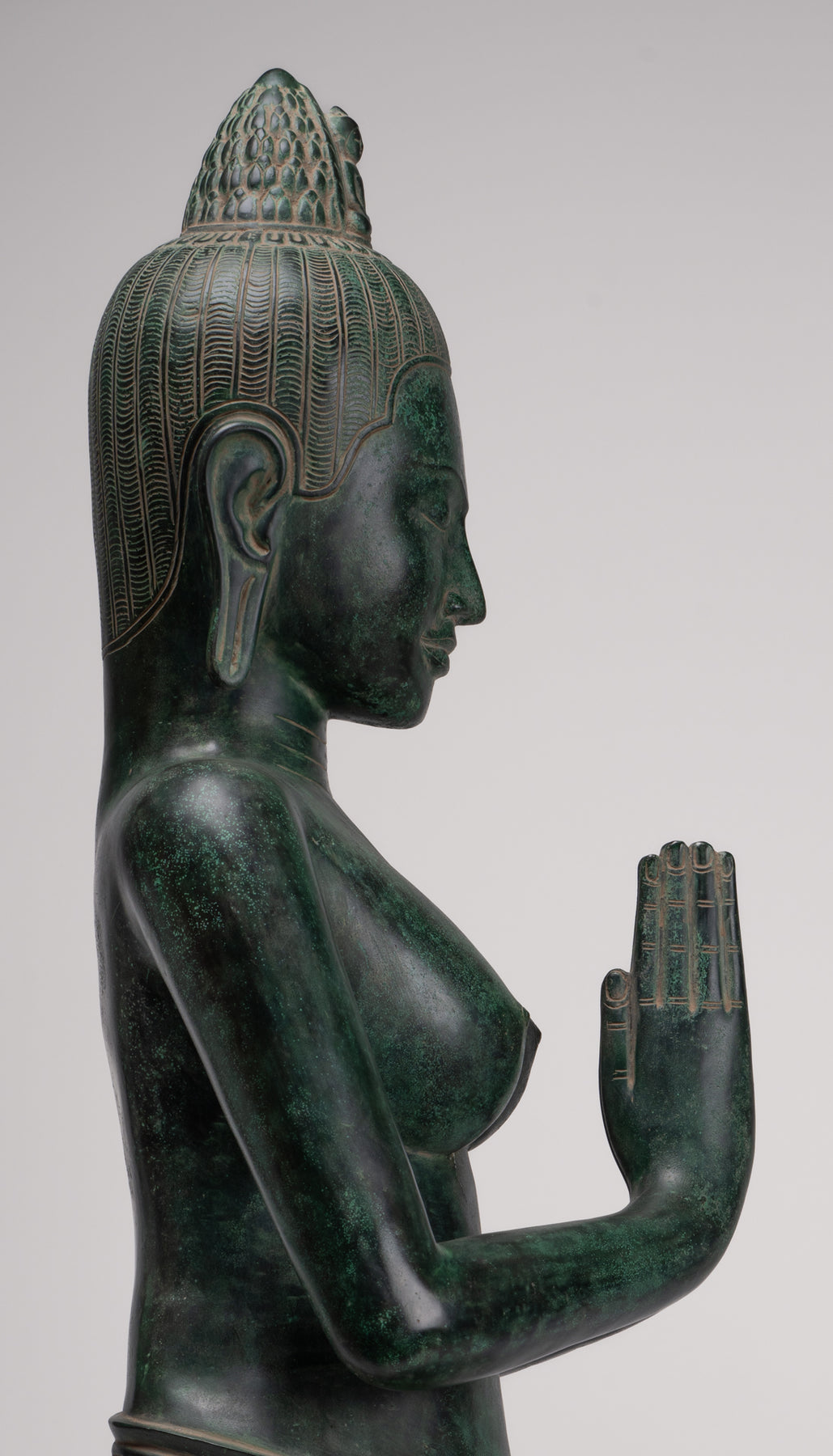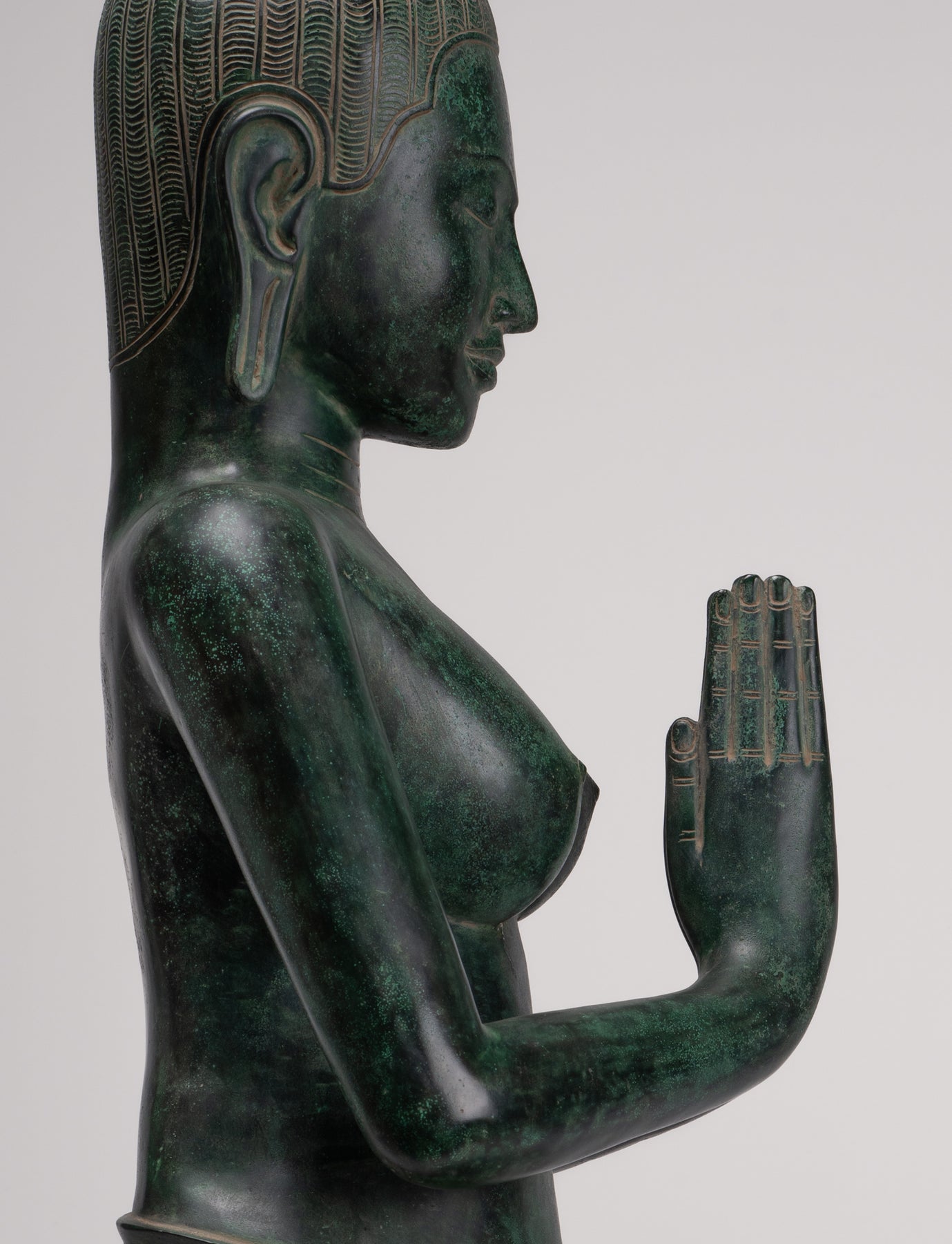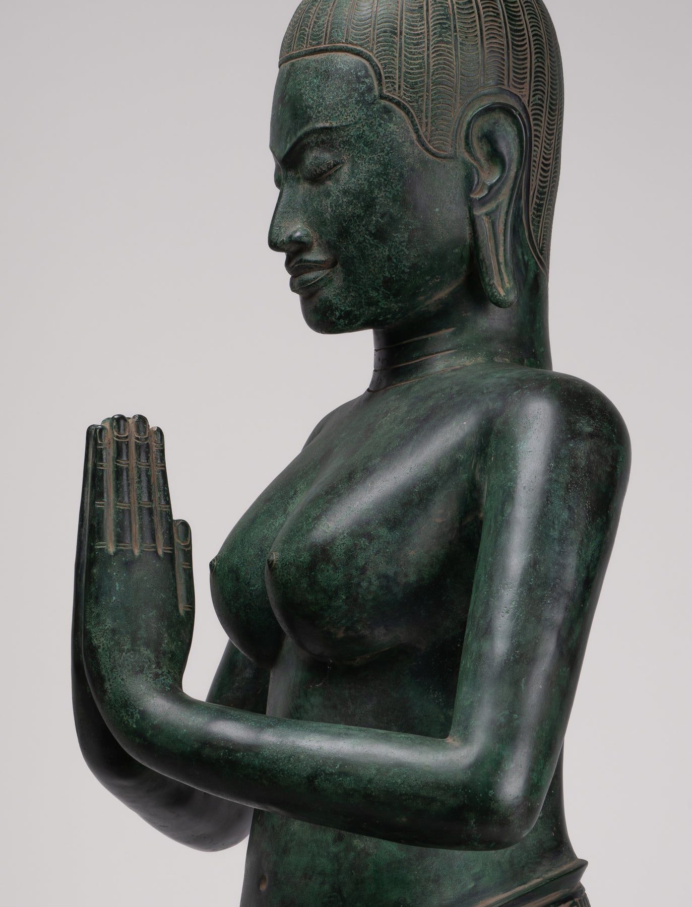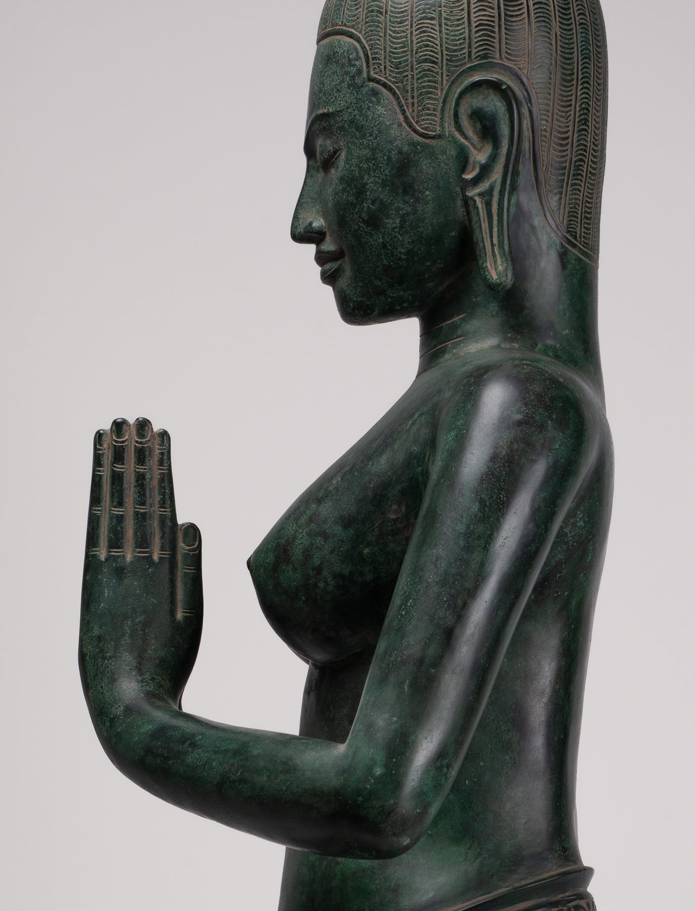 Un grand style khmer antique prajnaparamita, devi ou statue de déesse de la fin du 12e au début du 13e siècle.