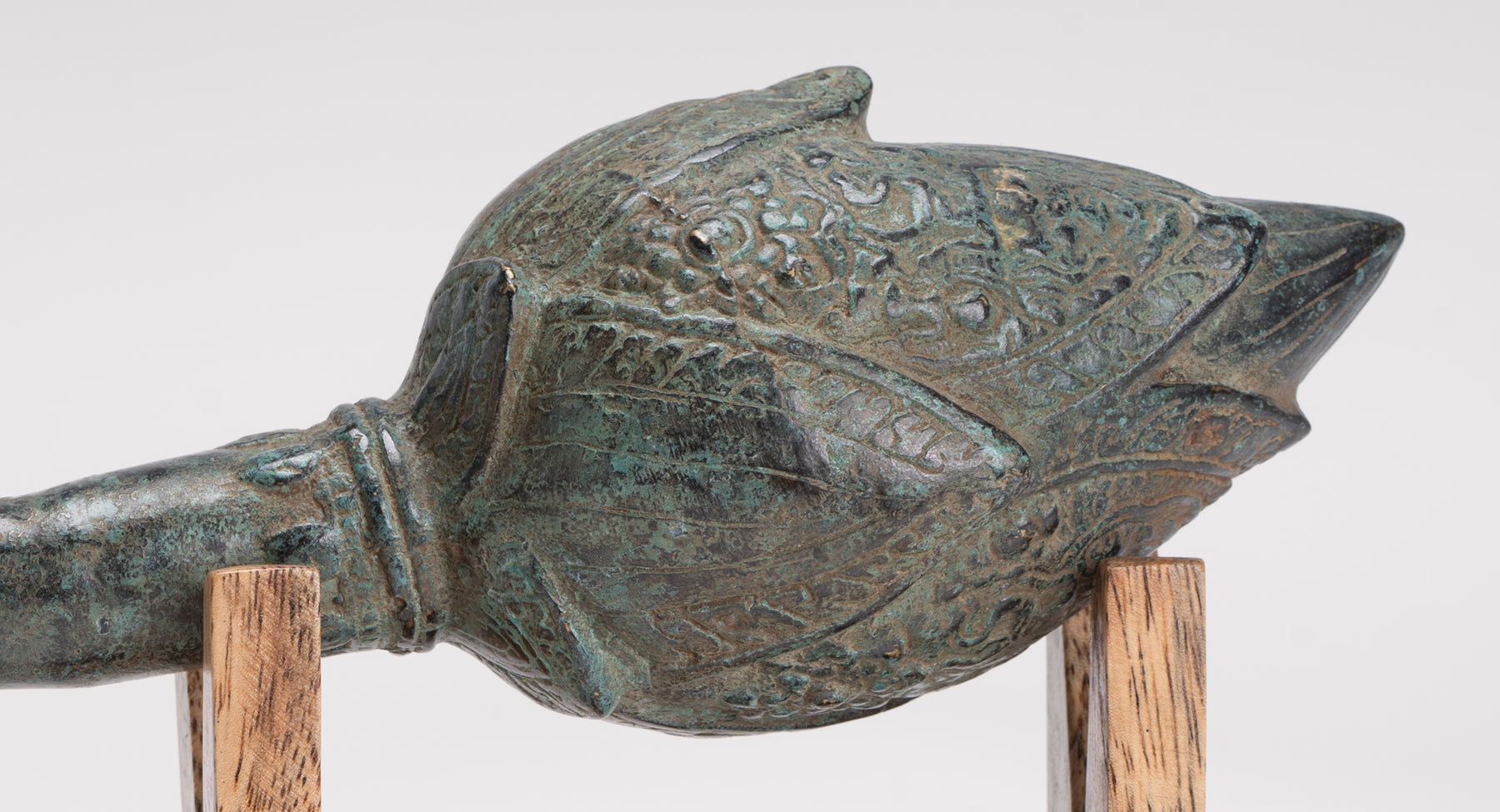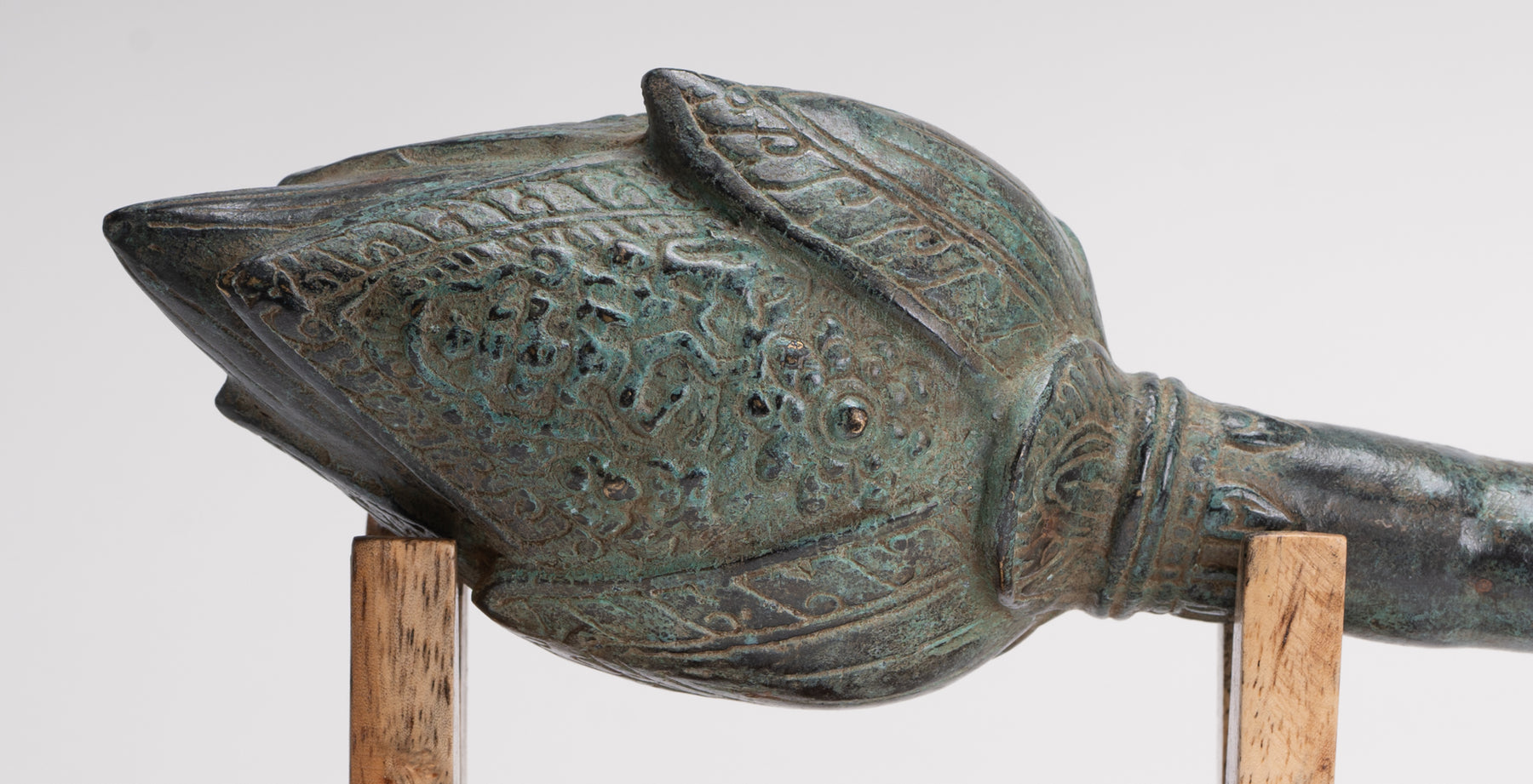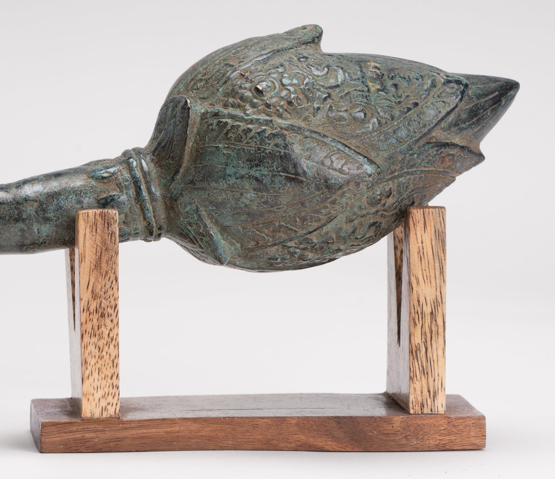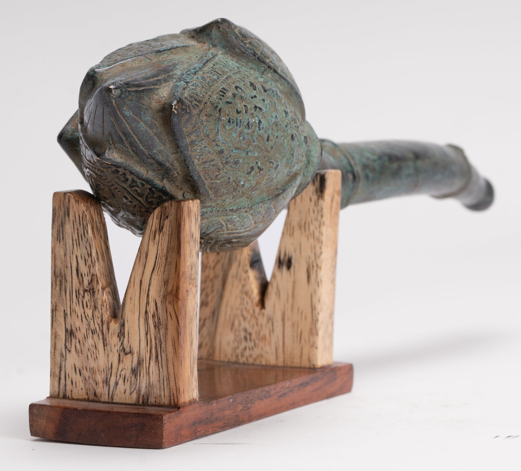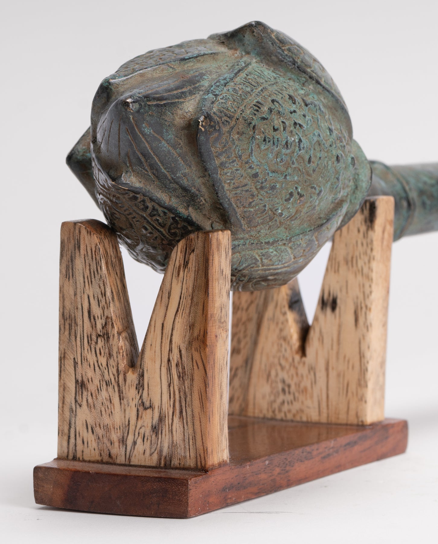 Bouton de lotus en bronze de style thaïlandais antique monté - 35 cm/14"