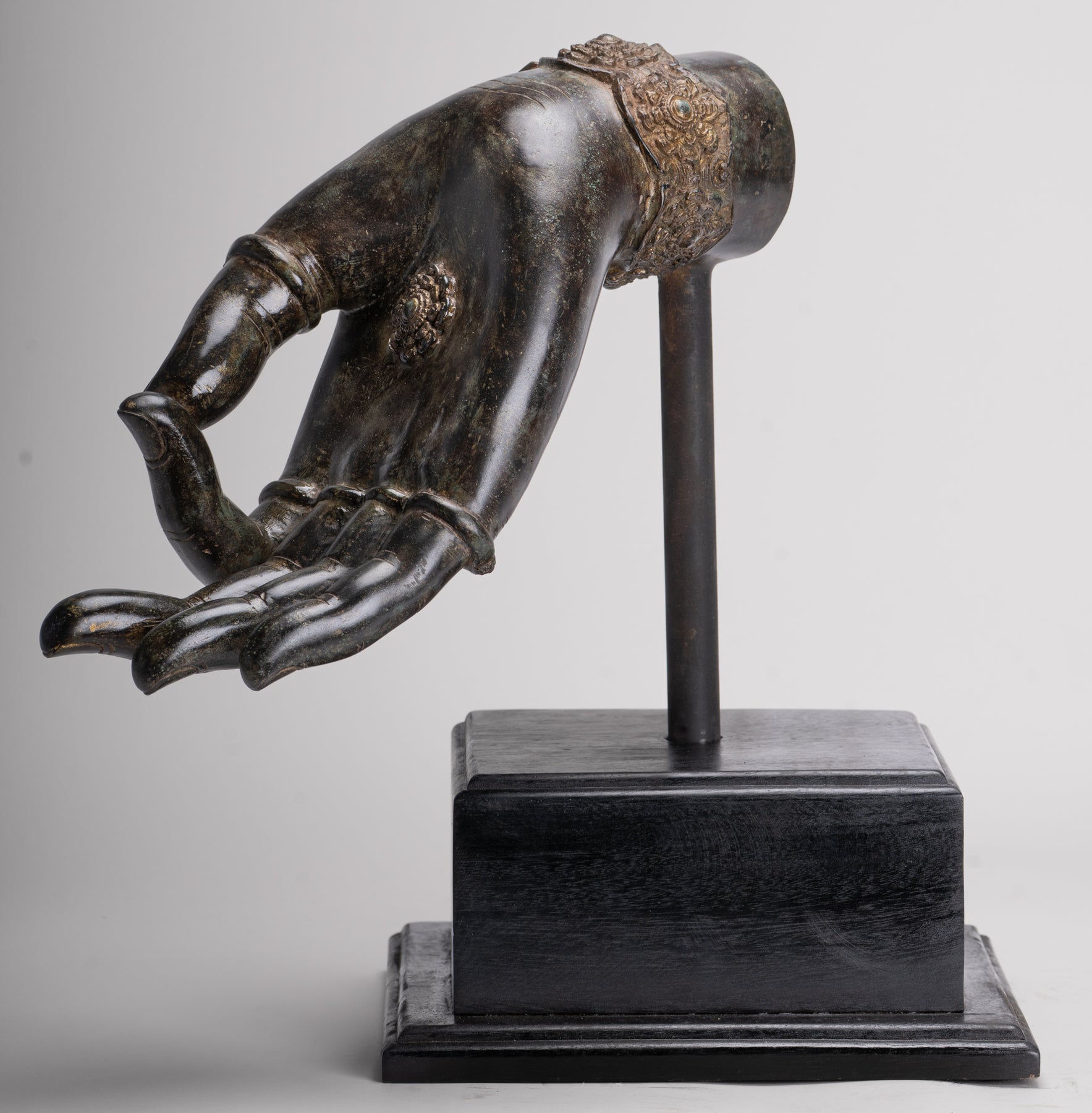 Mounted Antique Khmer Style Southeast Asia Bronze Teaching Hand - 37cm/15"