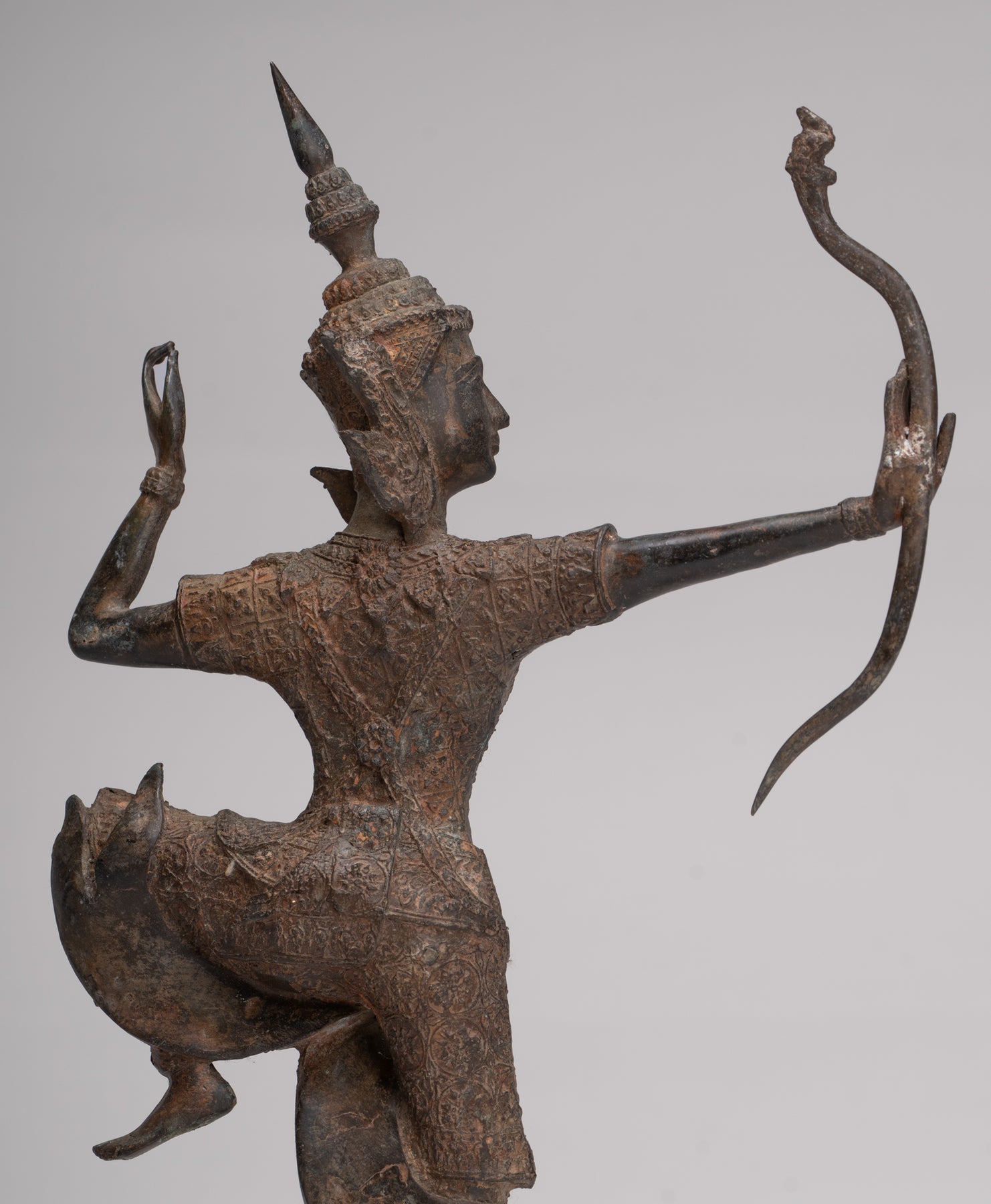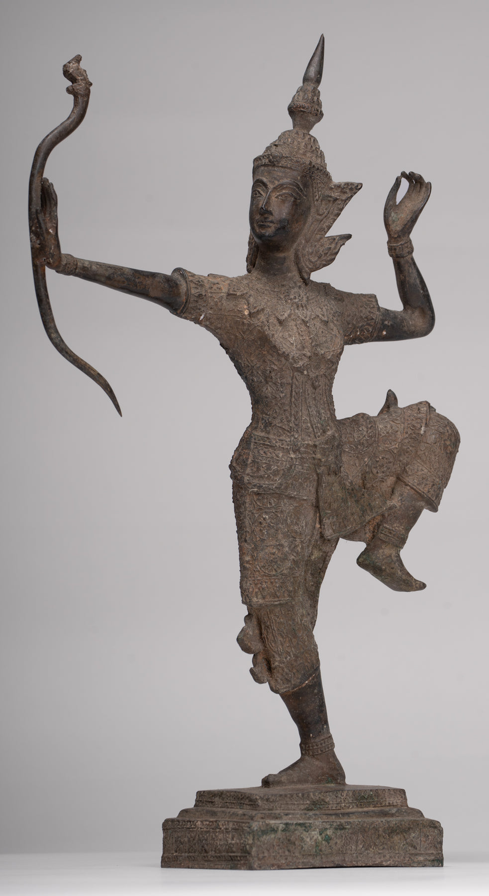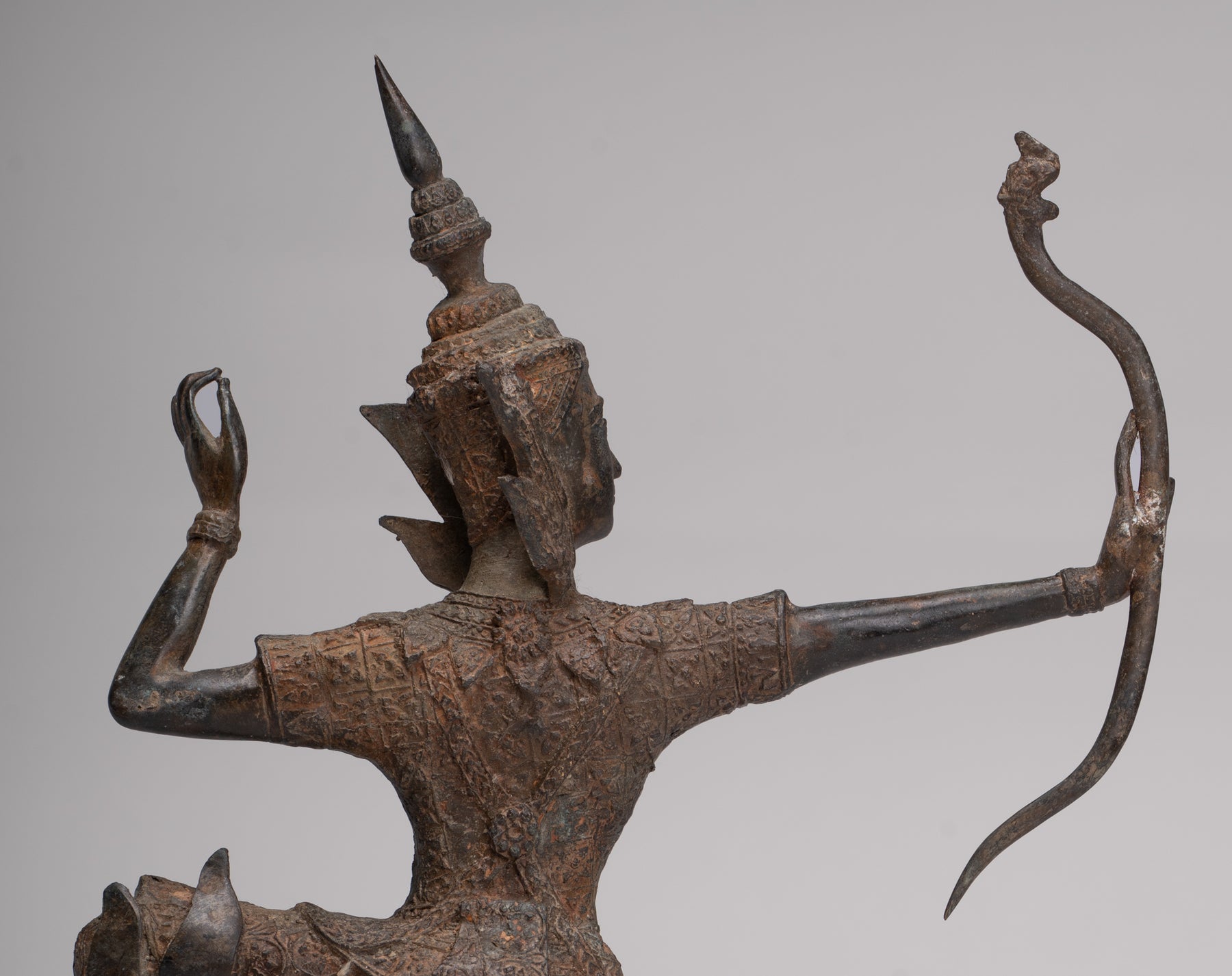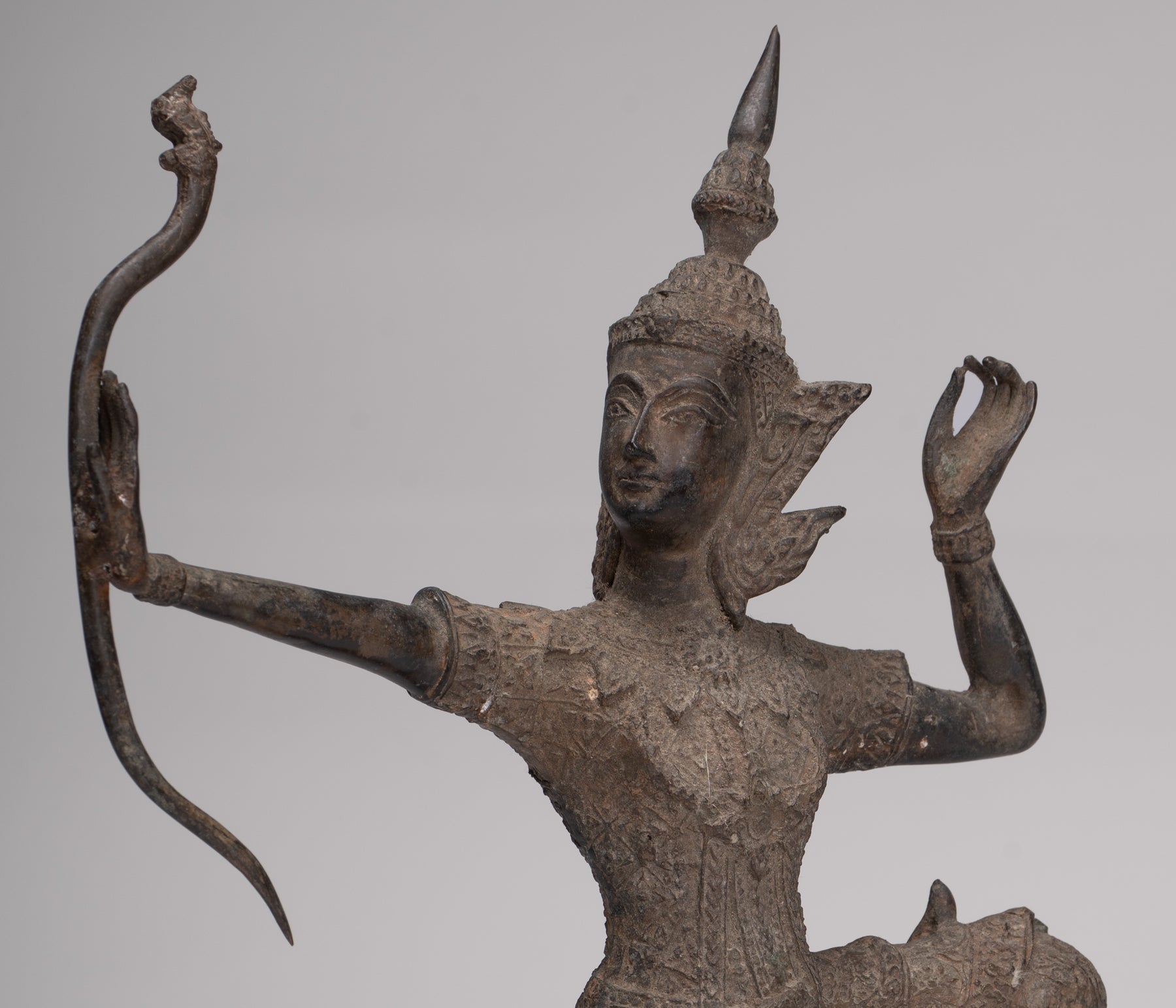 Le Rama a un équilibre et des proportions parfaits. Le casting est magnifique comme vous pouvez le voir dans les meilleurs détails de l'arc. Chaque détail est parfaitement rendu. La patine distinctive de l'azurite et de la malachite de la pièce est également particulièrement délicieuse.