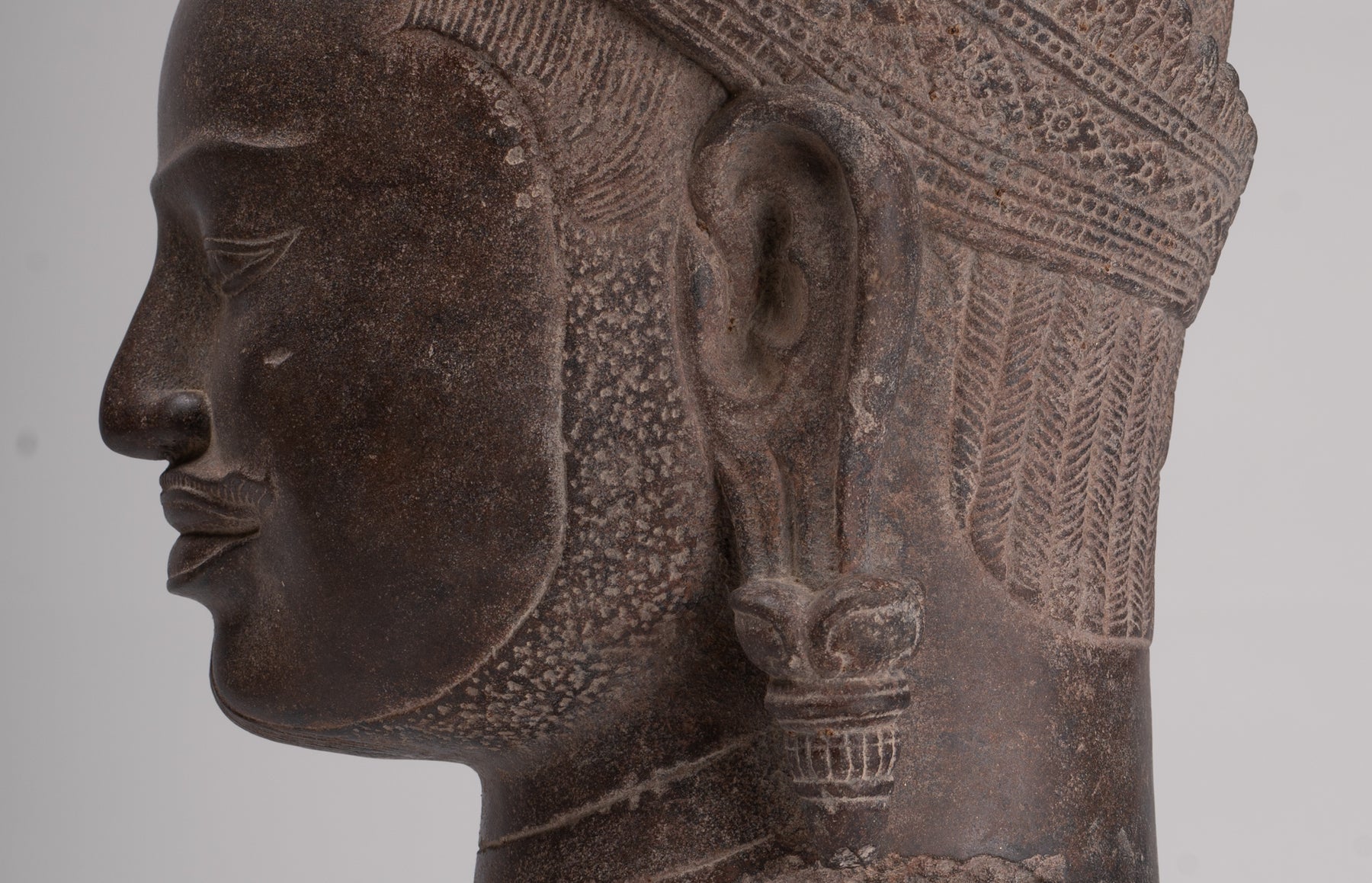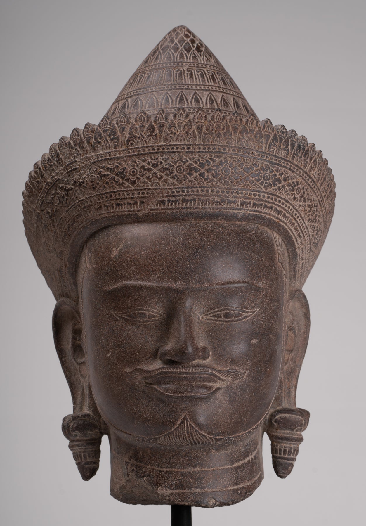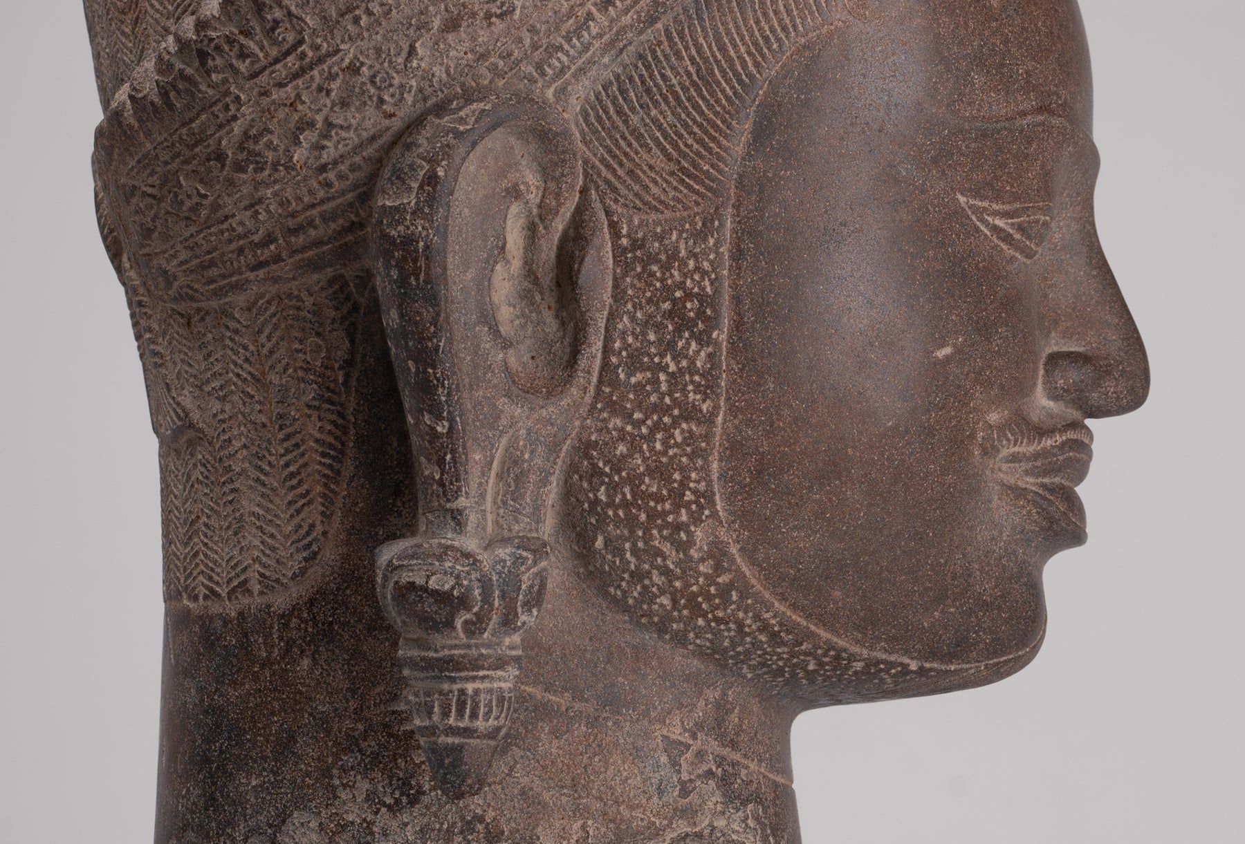 Antique Banteay Srei Style Stone monté Khmer Vishnu Head - 51 cm / 20 "