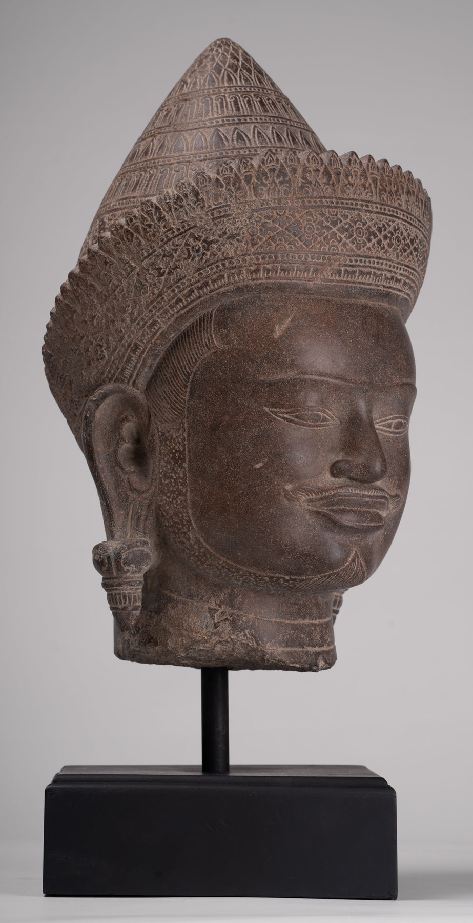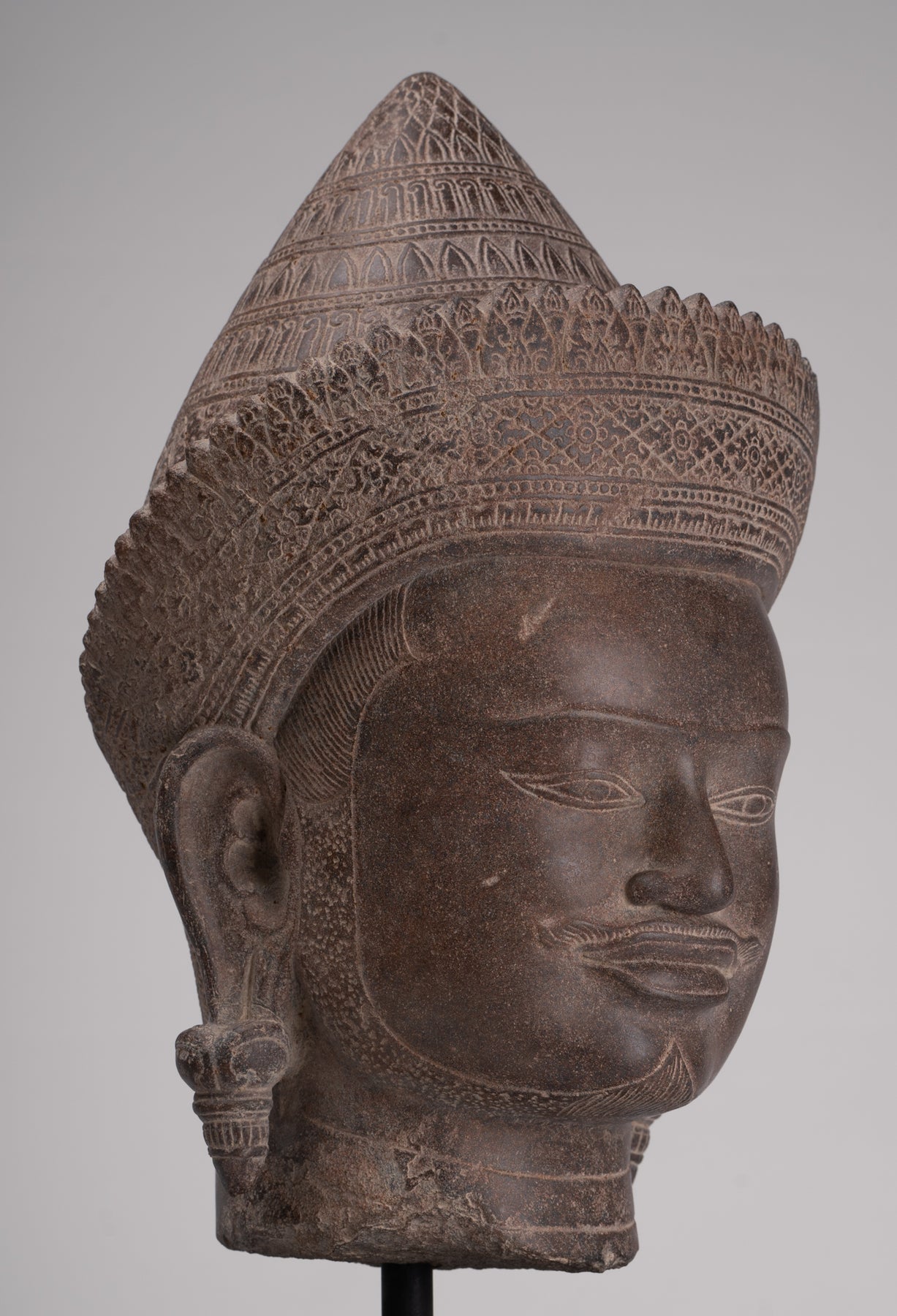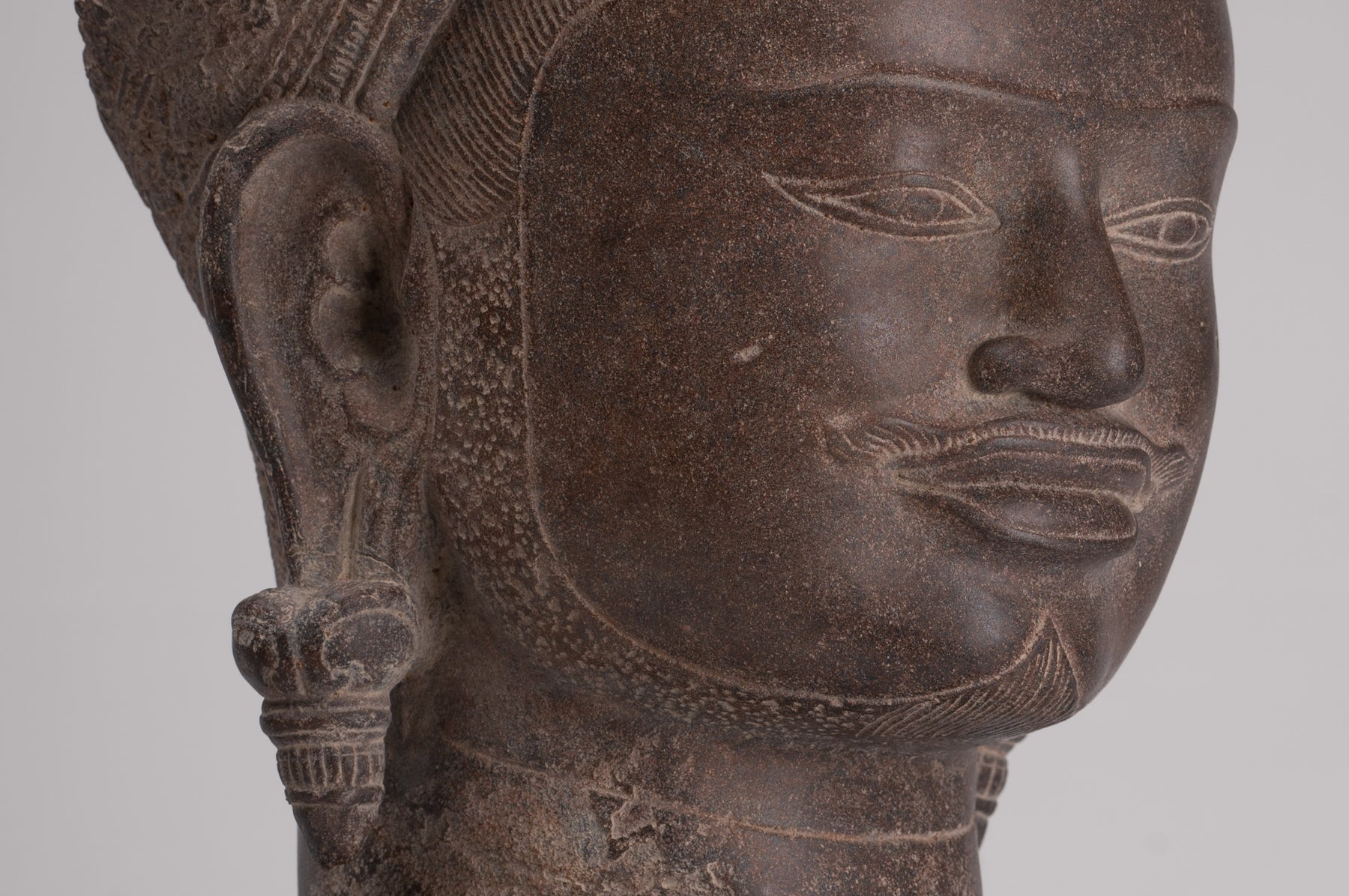 Antique Banteay Srei Style Stone monté Khmer Vishnu Head - 51 cm / 20 "