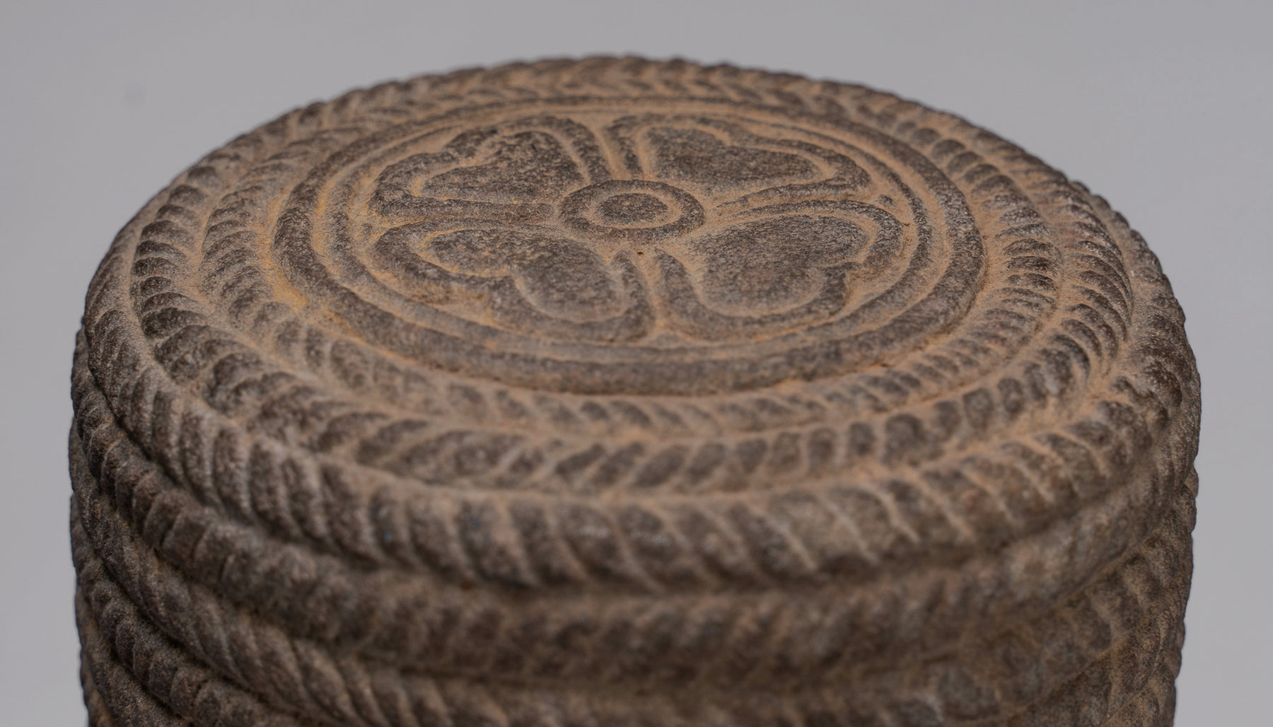 Vishnu Statue - Antique Koh Ker Style Stone Mounted Khmer Vishnu Head - 47cm / 19"