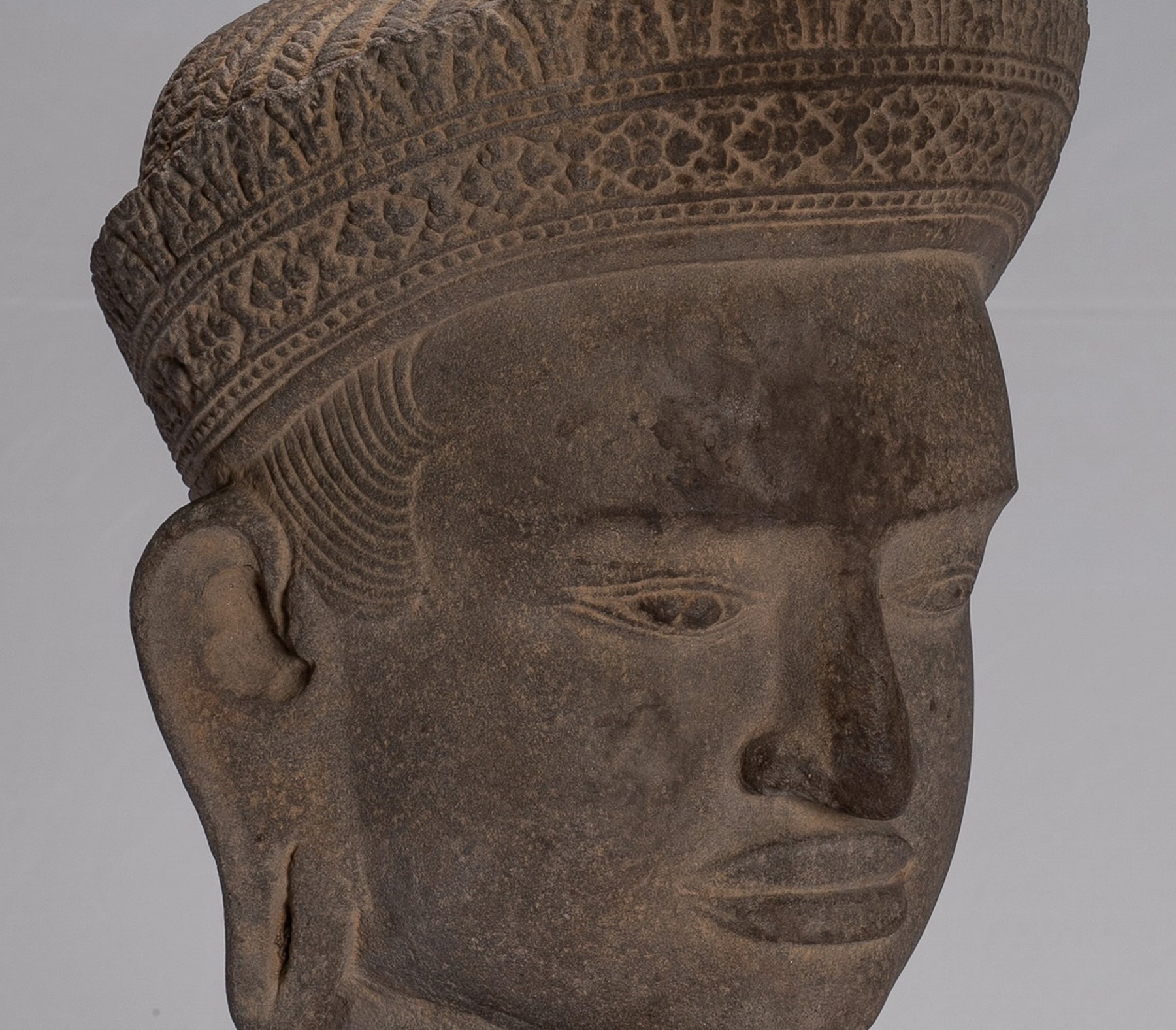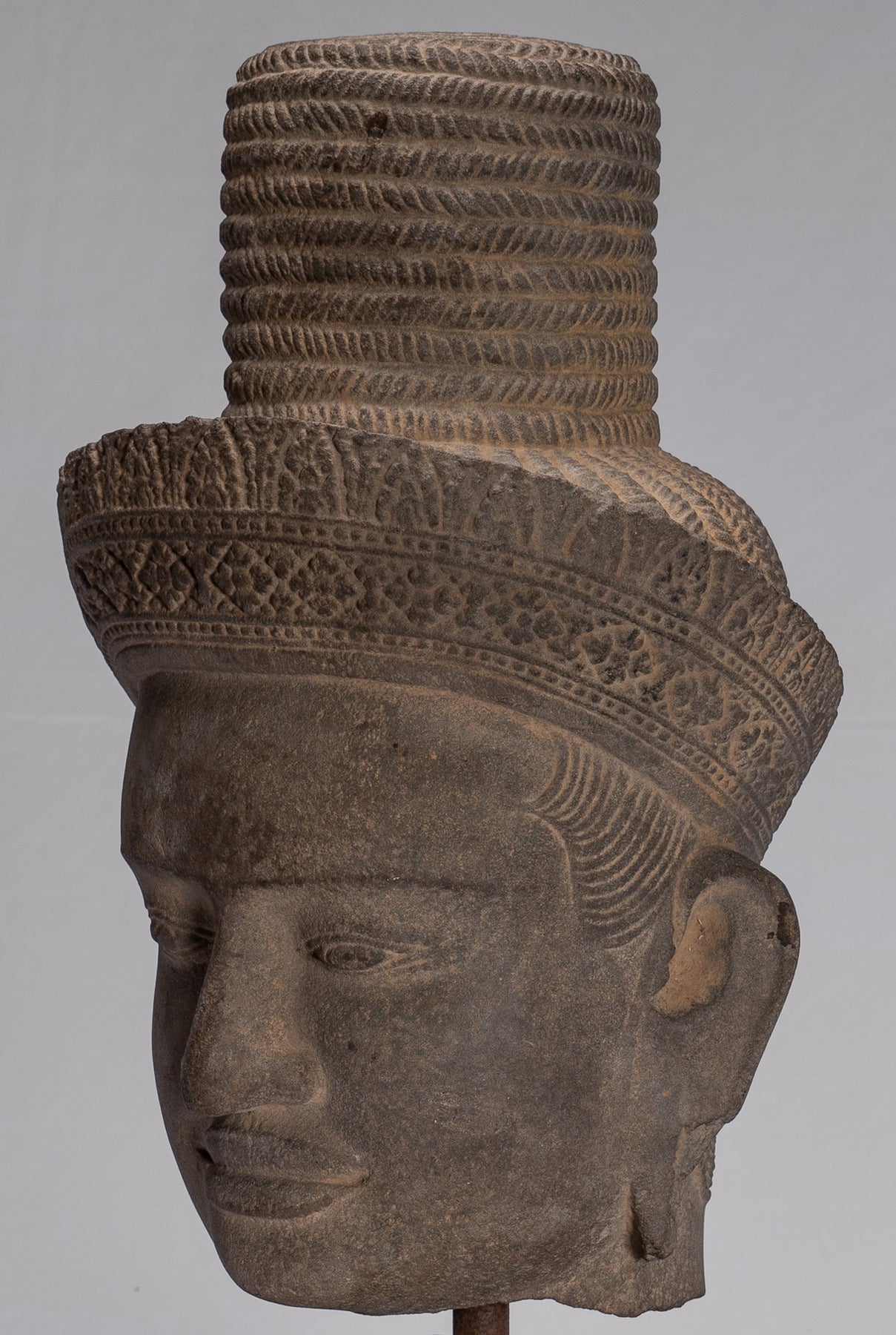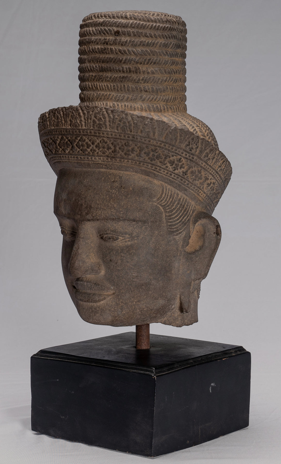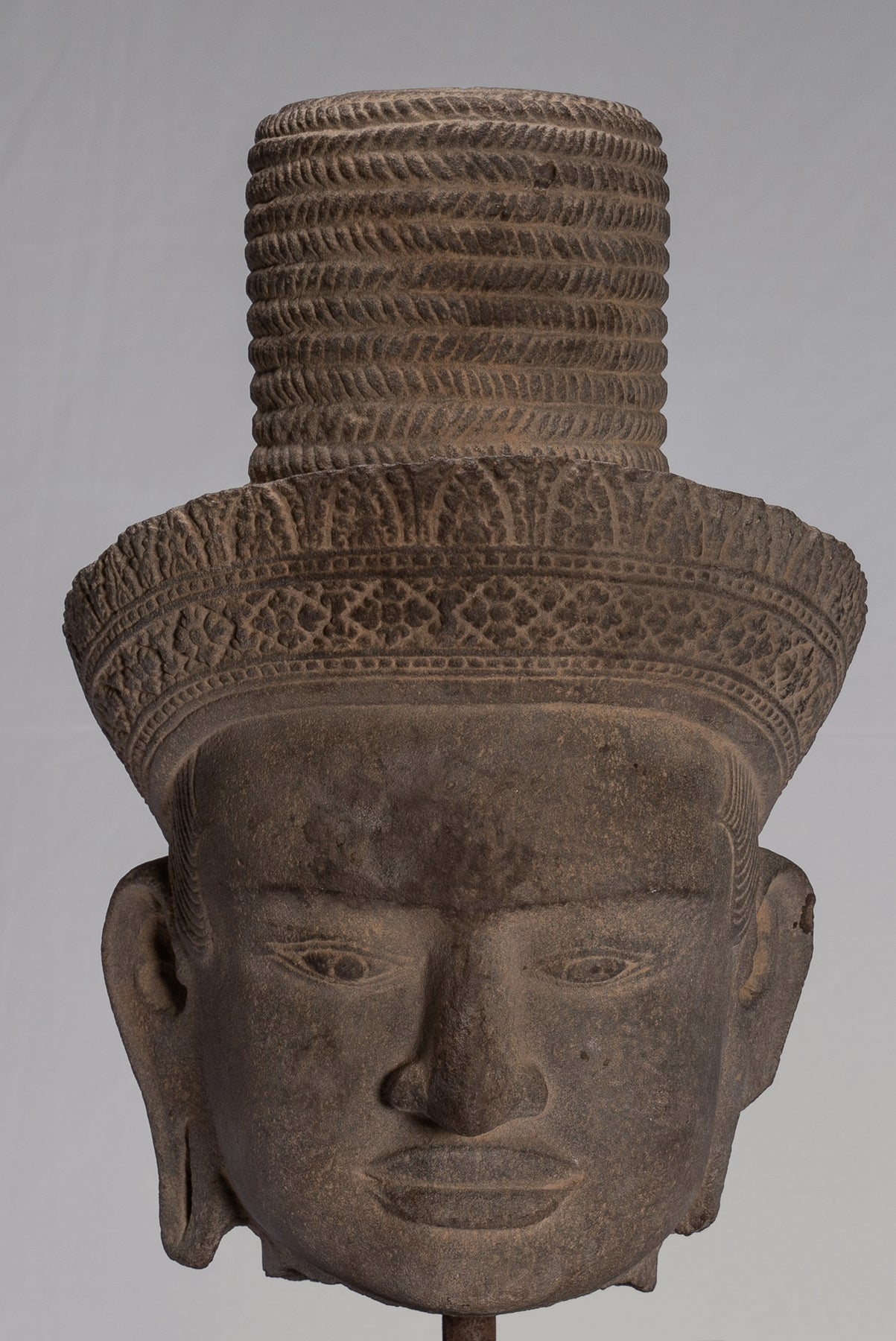 Vishnu Statue - Antique Koh Ker Style Stone monté Khmer Vishnu Head - 47 cm / 19 "