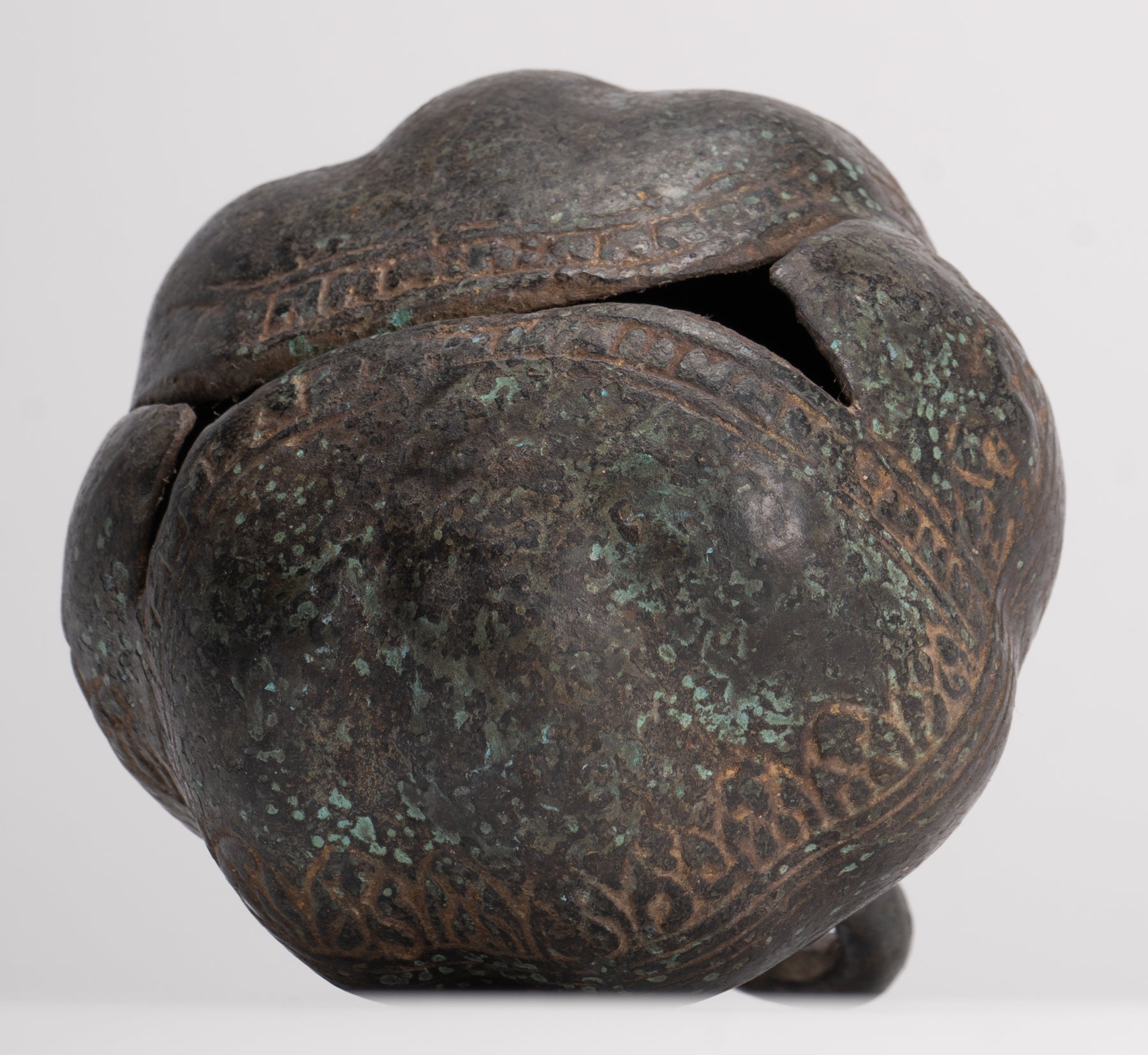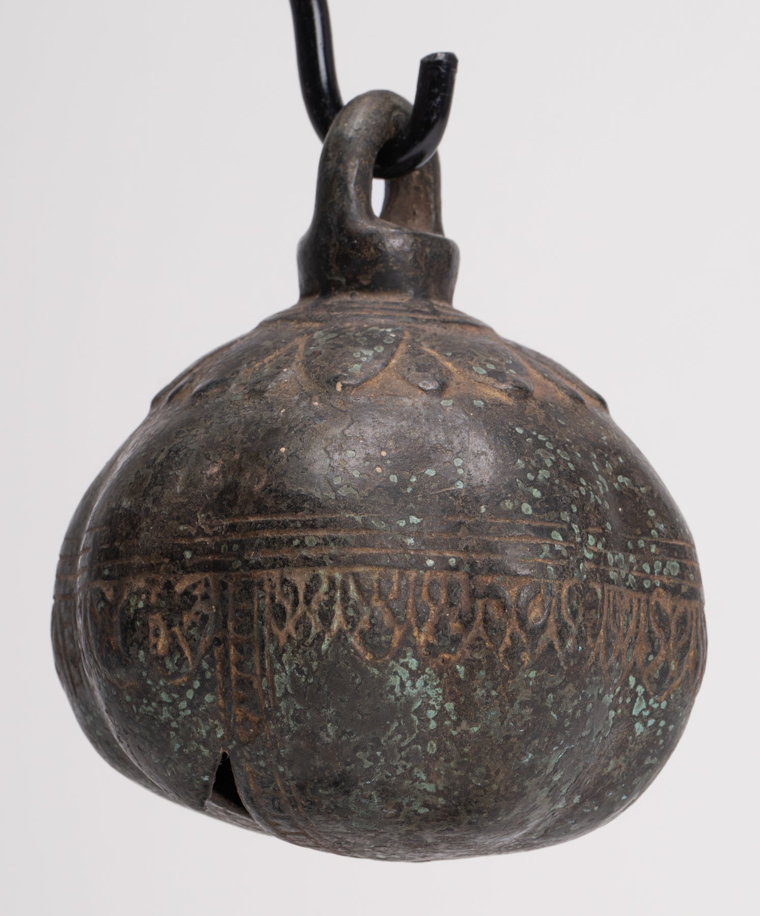Une cloche antique en bronze de style khmer. Cette cloche rituelle exquise a été créée pour être sonnée lors des cérémonies.