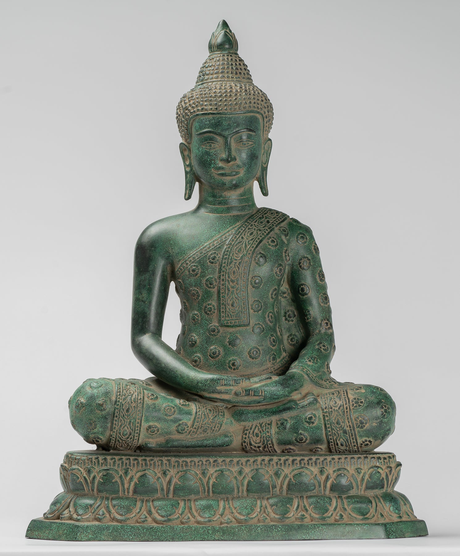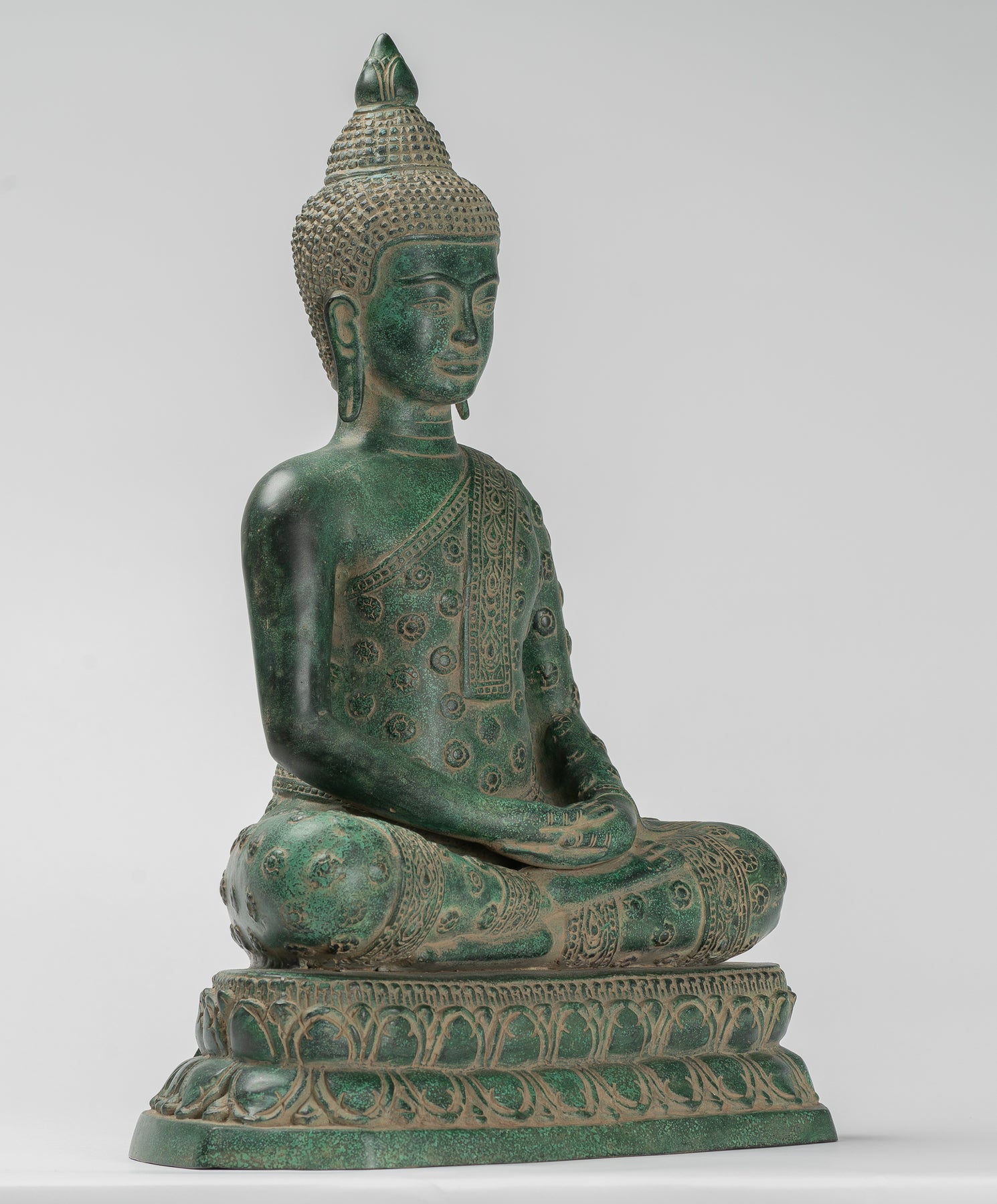 Statue de Bouddha - Antique Khmer Style Bronze Assied Amitabha Meditation Statue Bouddha - 44cm / 18 "