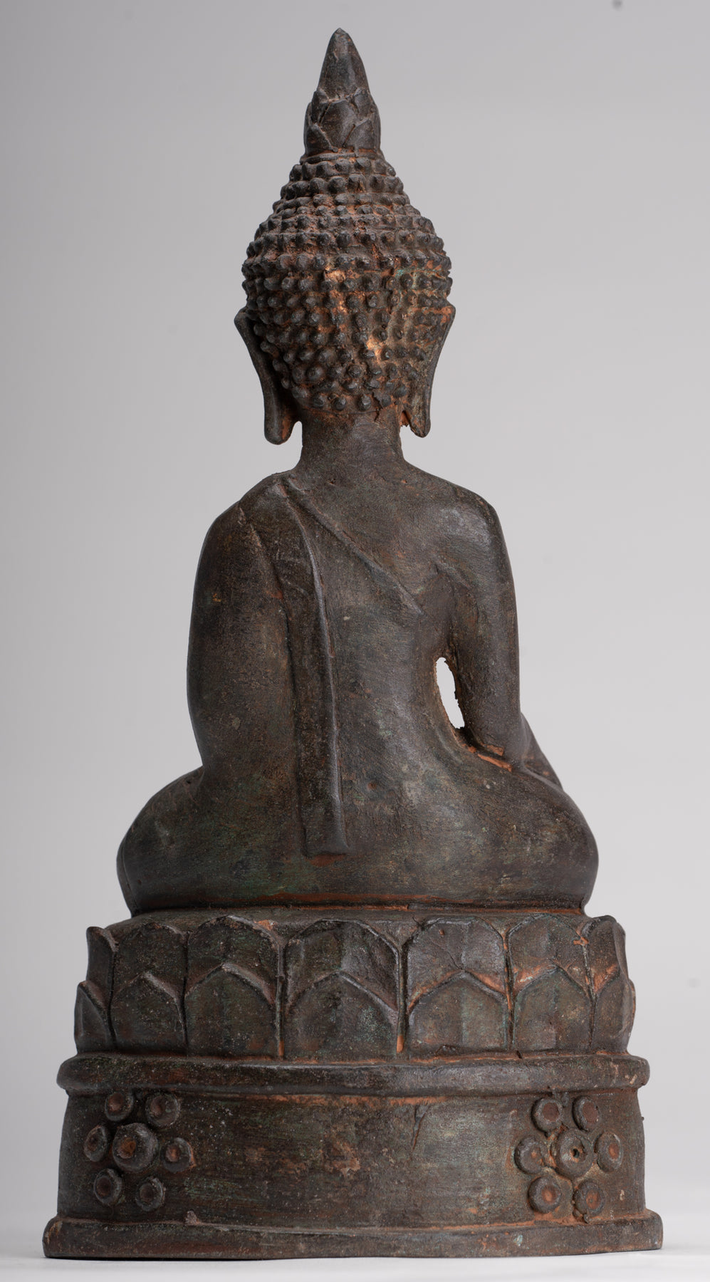 Le Bouddha est assis sur un piédestal décoré à double lotus. La fleur de lotus représente la pureté, la compassion et le don d'une grande joie à tous.