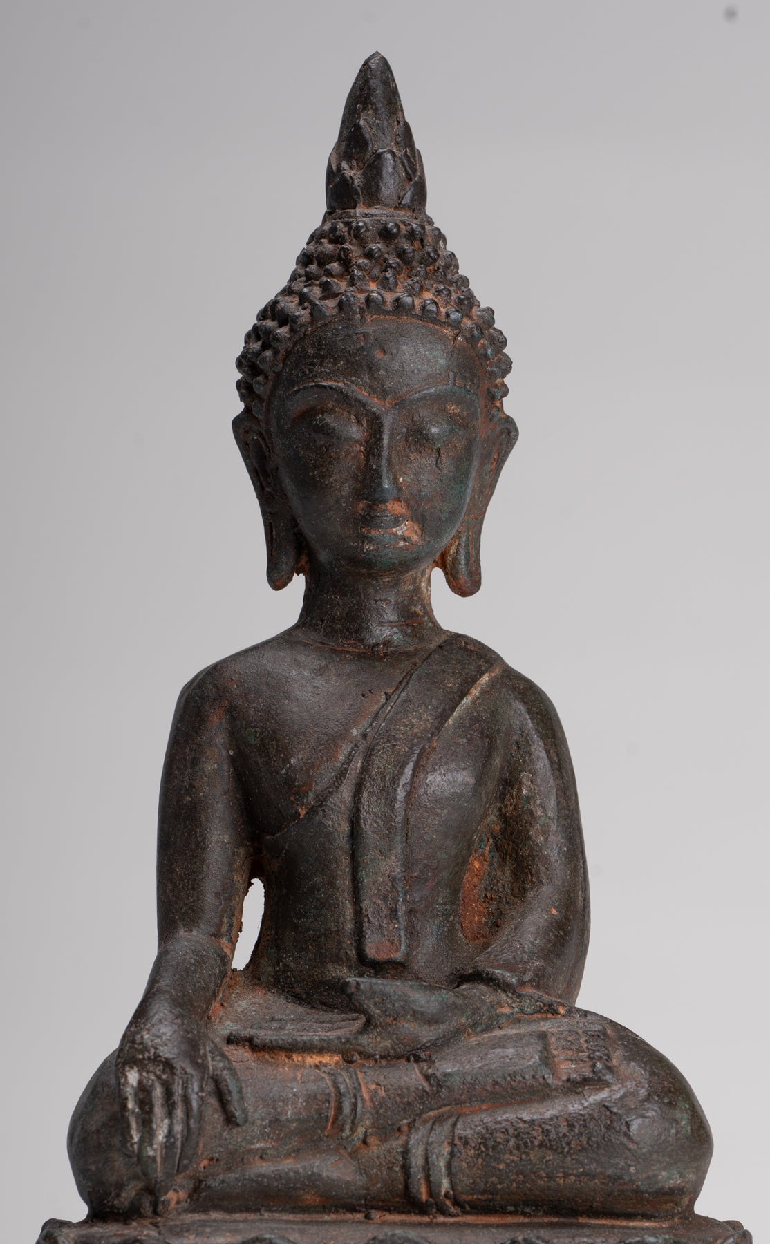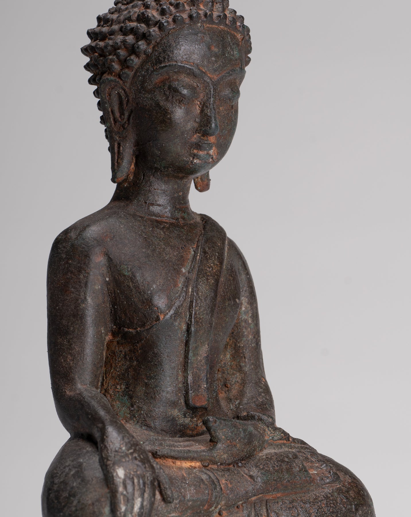 Buddha Statue - Antique Laos Style Bronze Enlightenment Buddha Statue - 29cm/12"