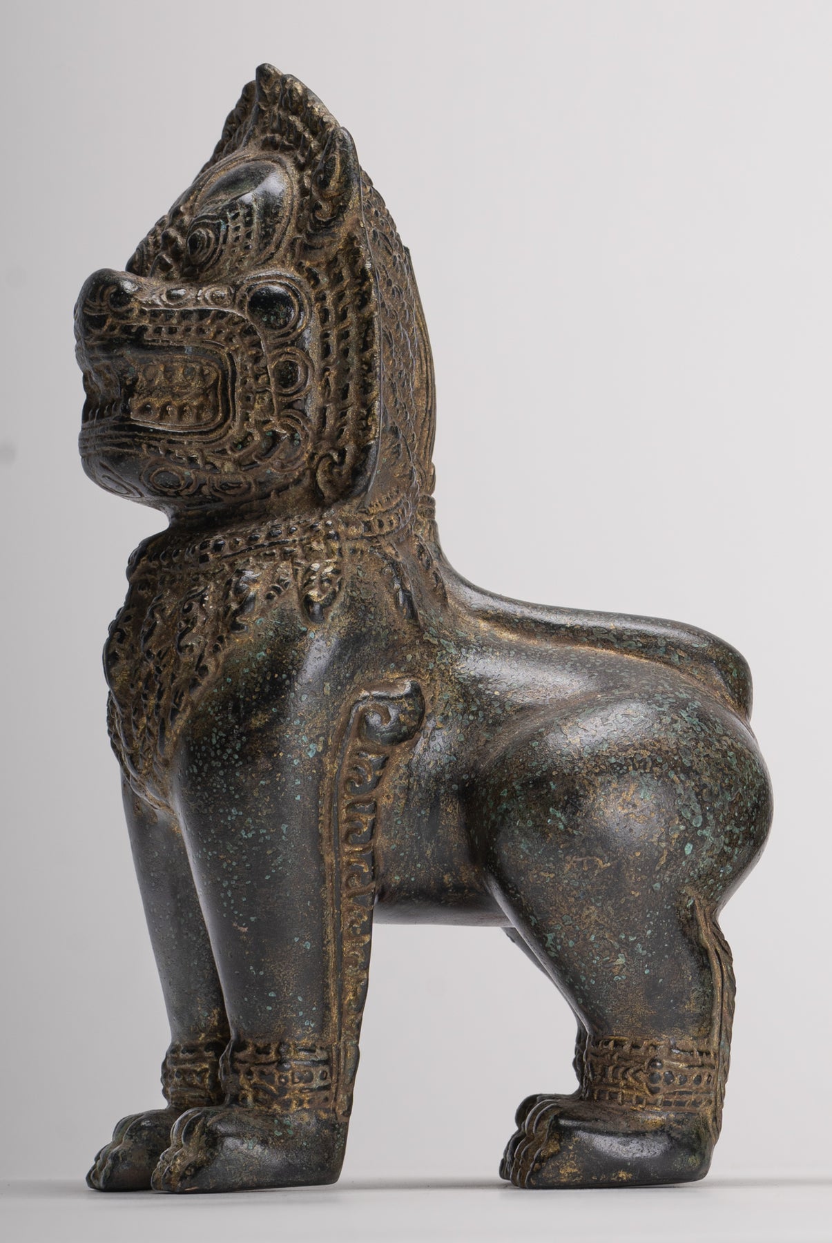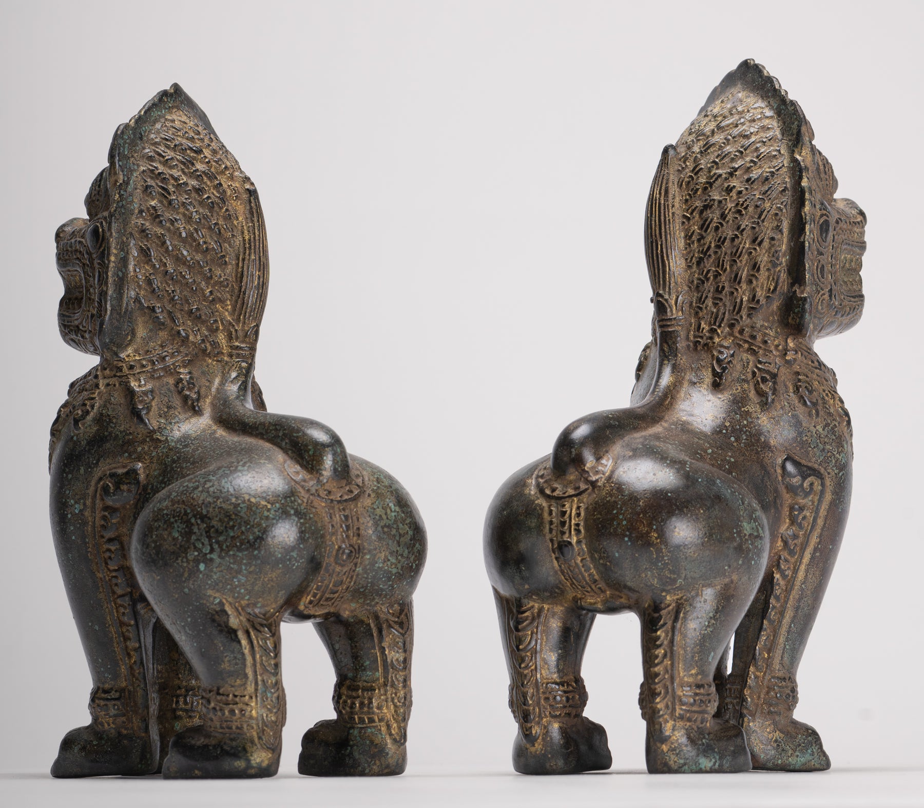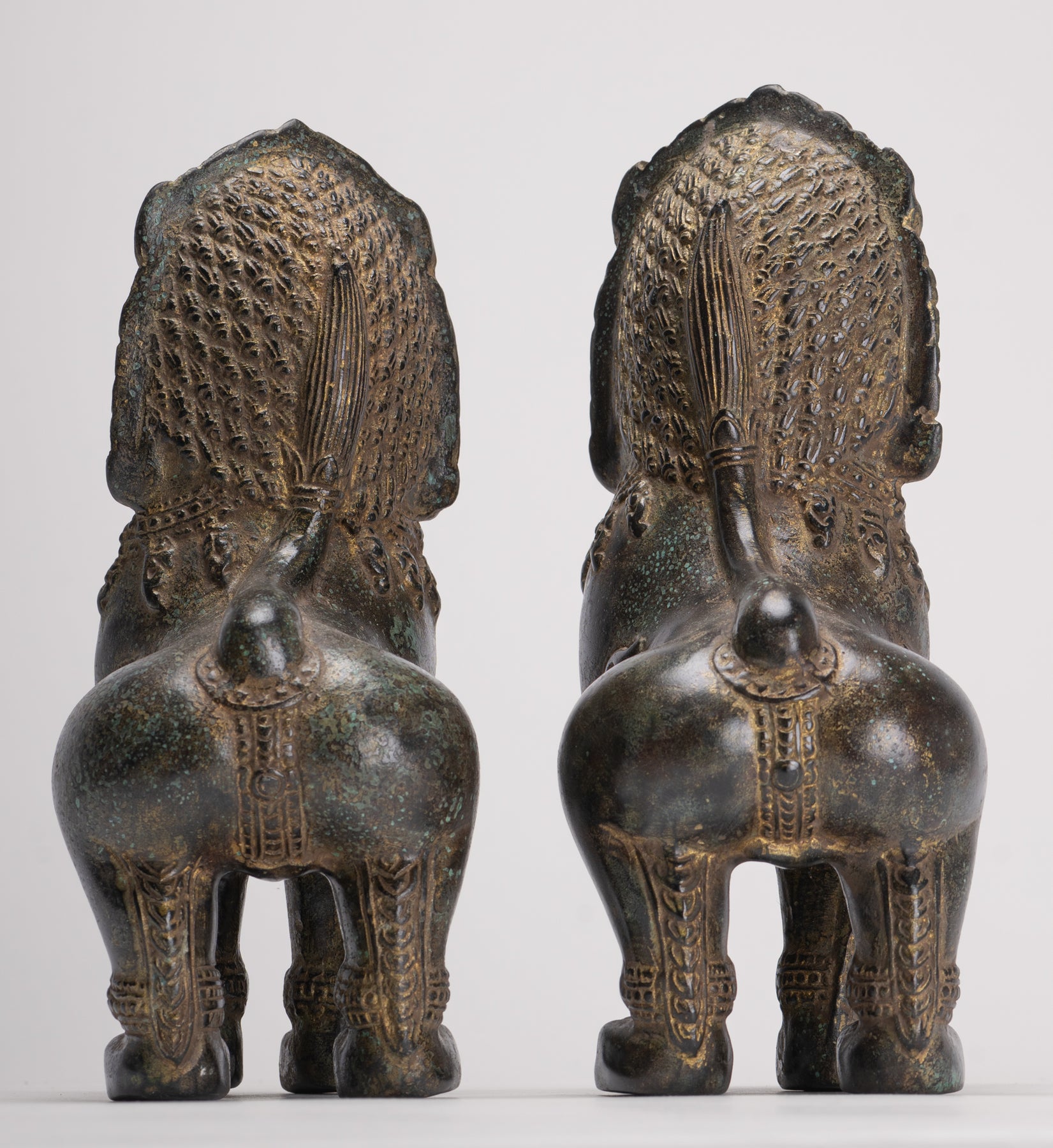 Gardien ou Lions debout en bronze de style khmer antique (paire) - 22 cm/9"