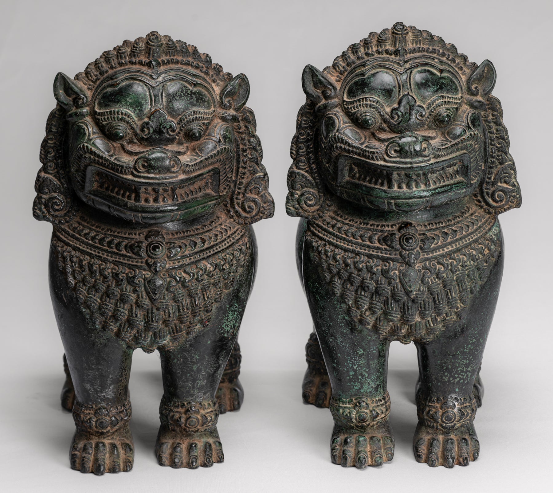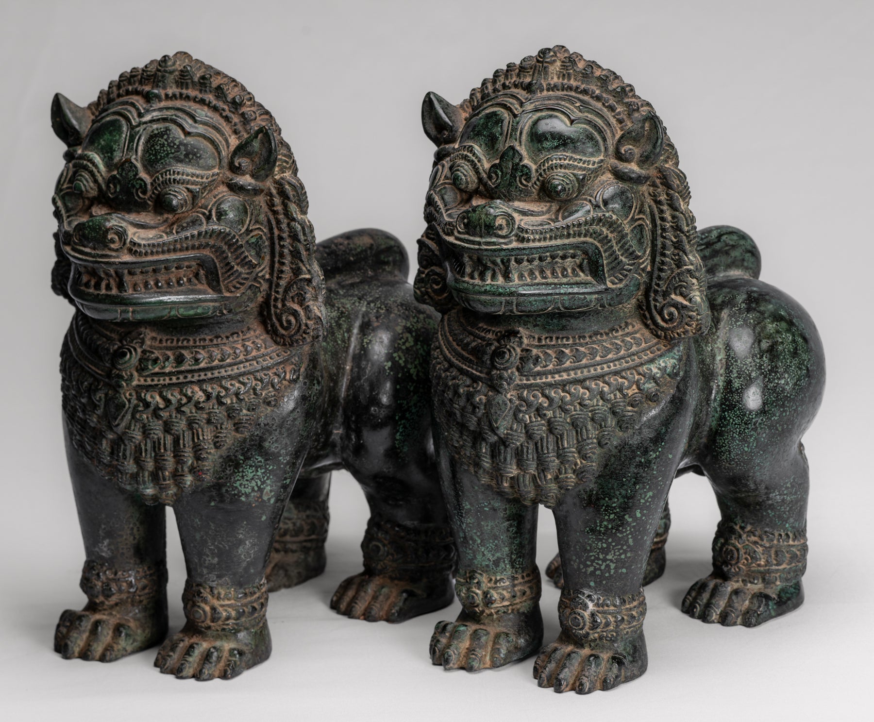 Guardian ou lion du Temple debout de style khmer antique - 31 cm / 12 "(paire)