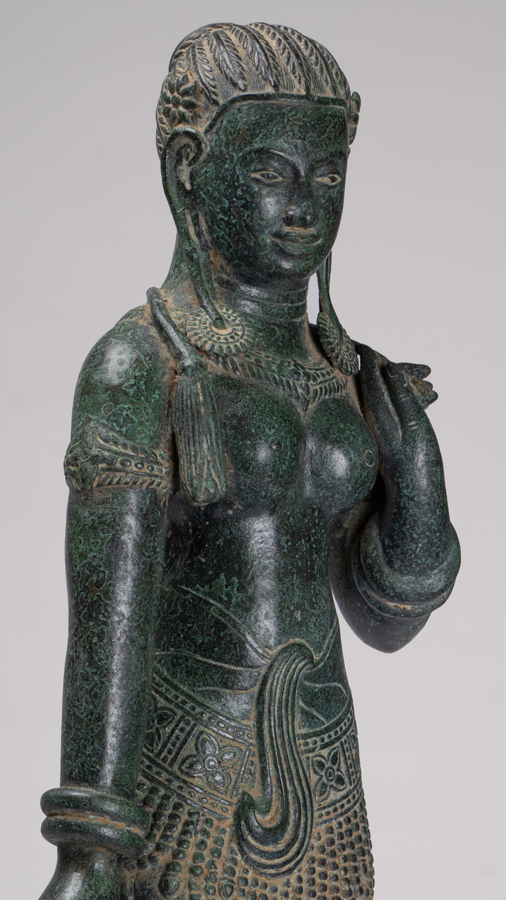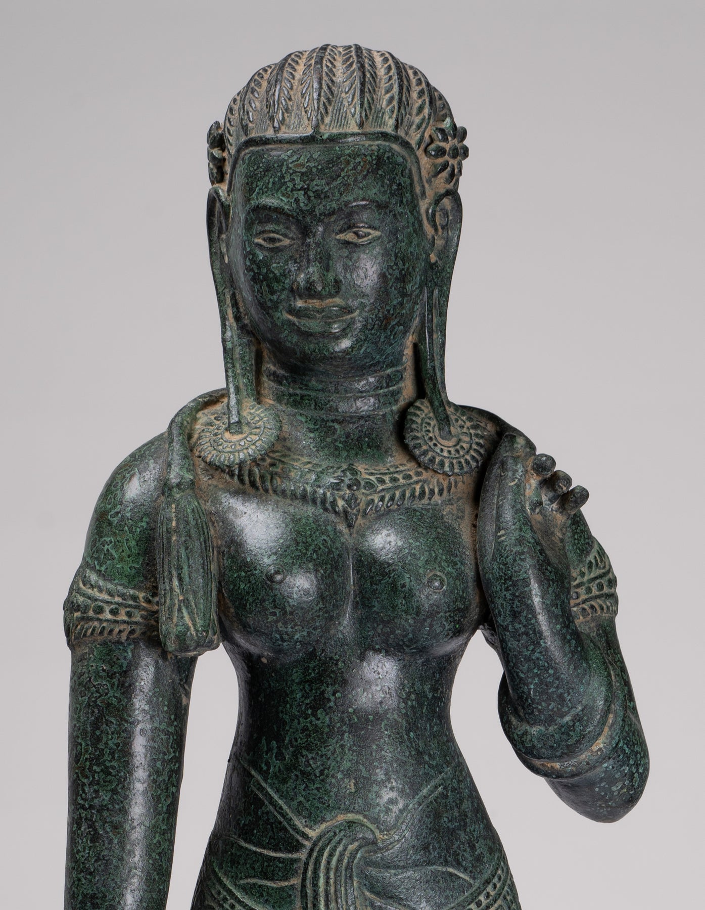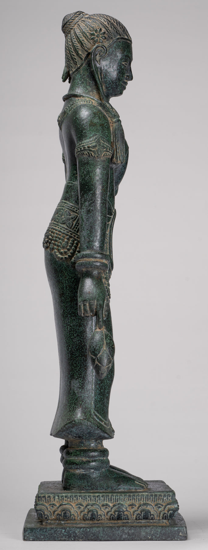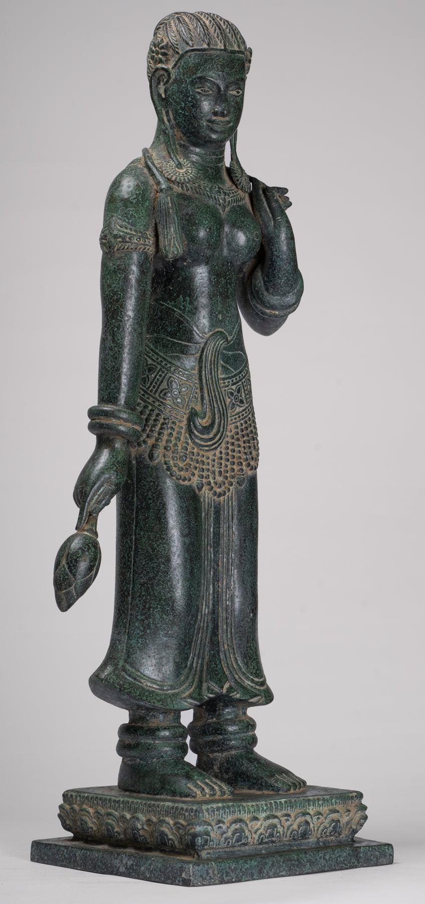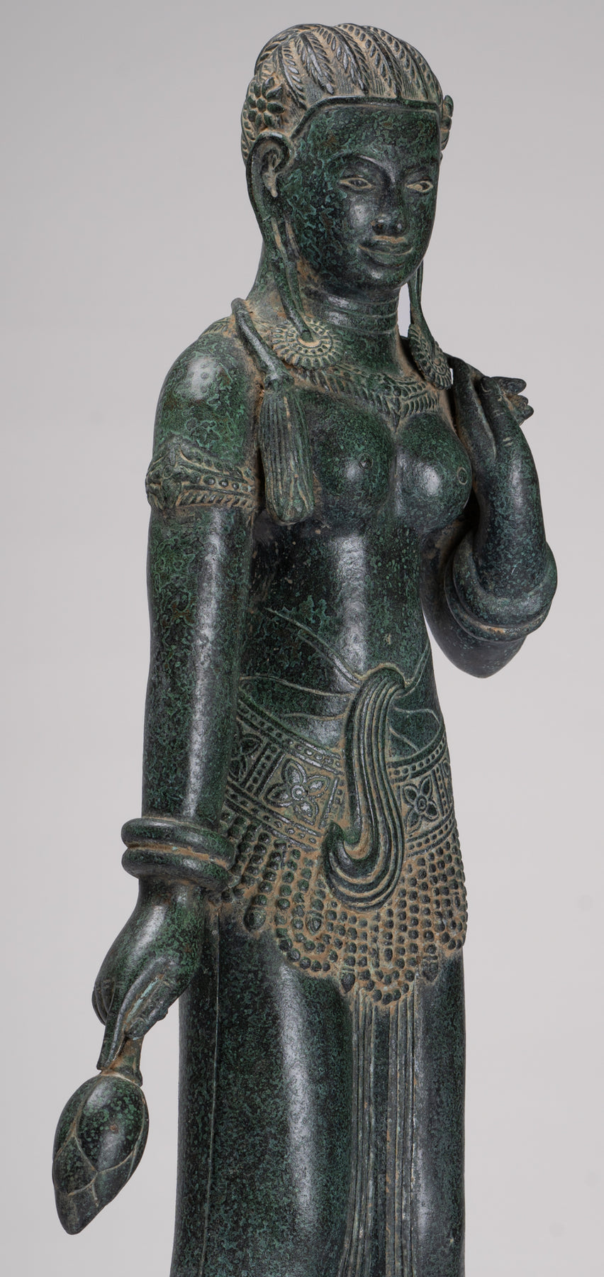 La silhouette dégage une sérénité et une puissance tranquille resplendissante de la sensualité du style Banteay Srei.