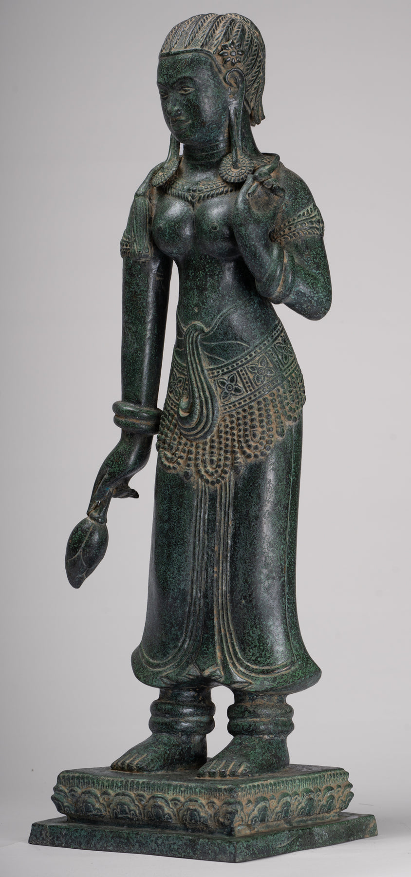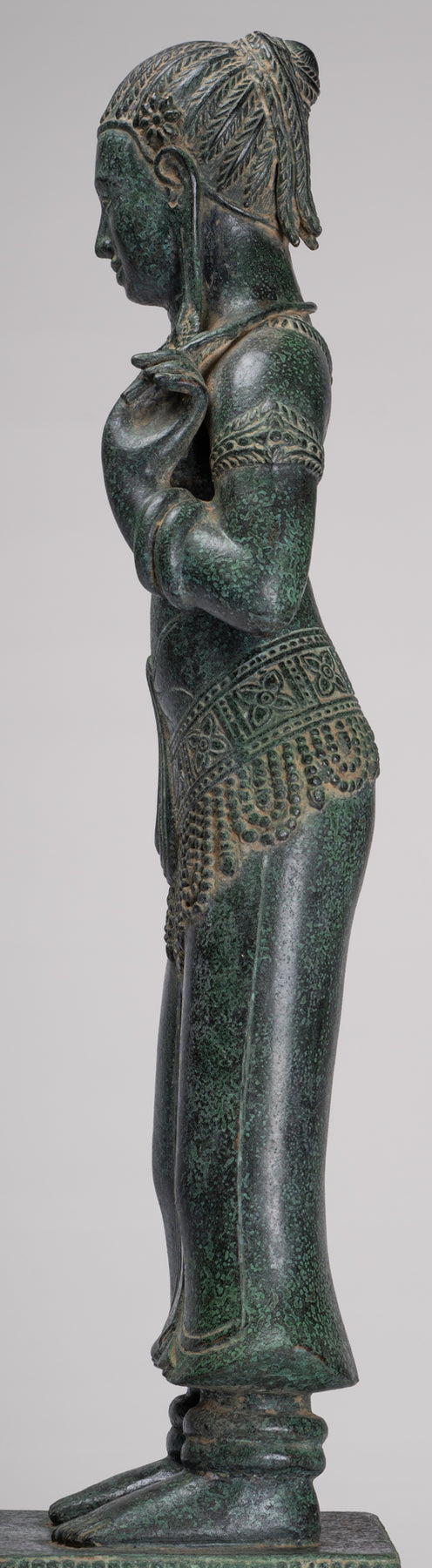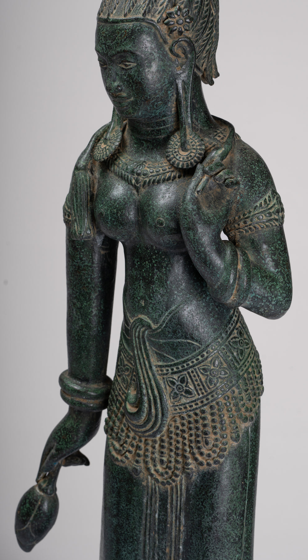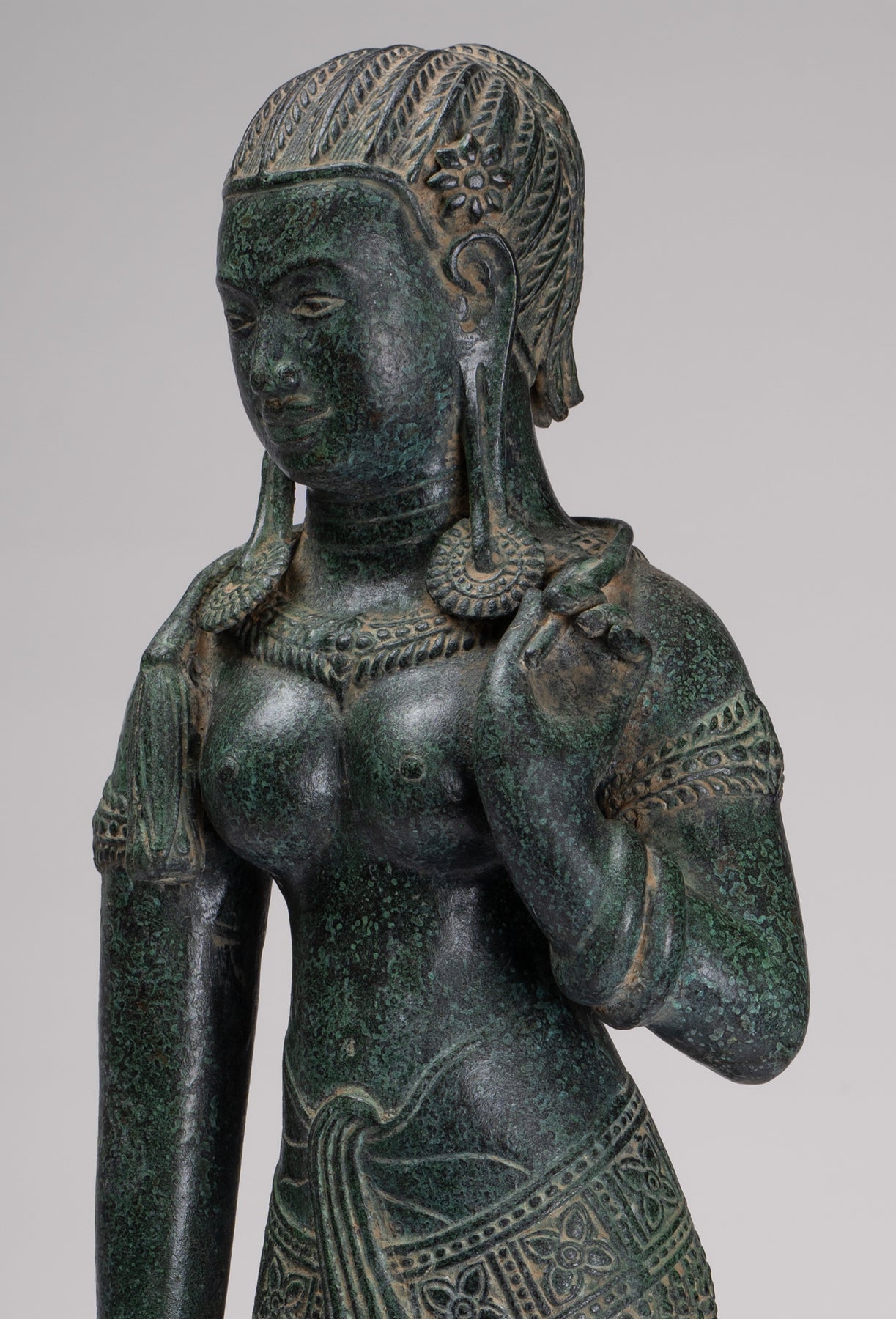 La silhouette dégage une sérénité et une puissance tranquille resplendissante de la sensualité du style Banteay Srei.