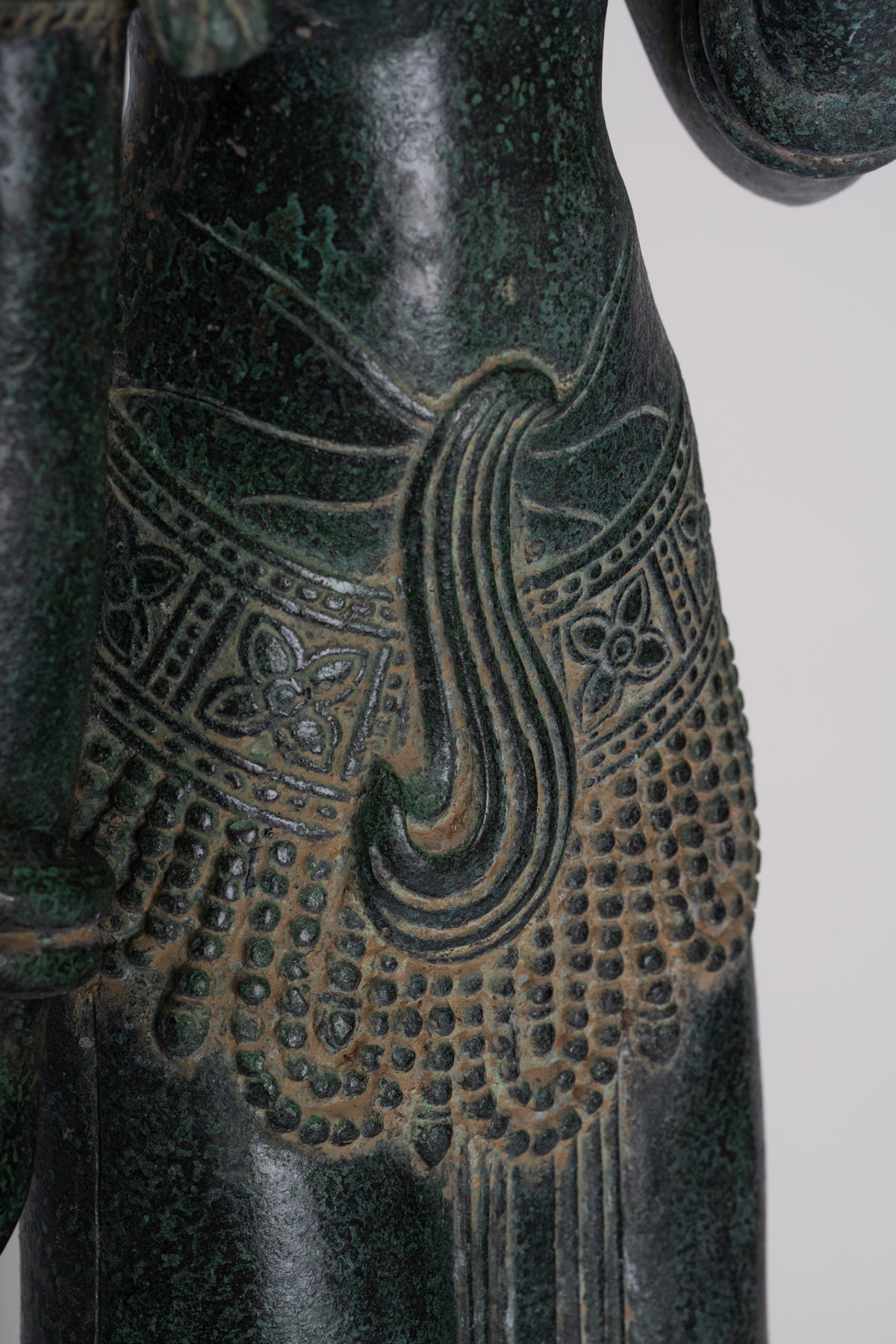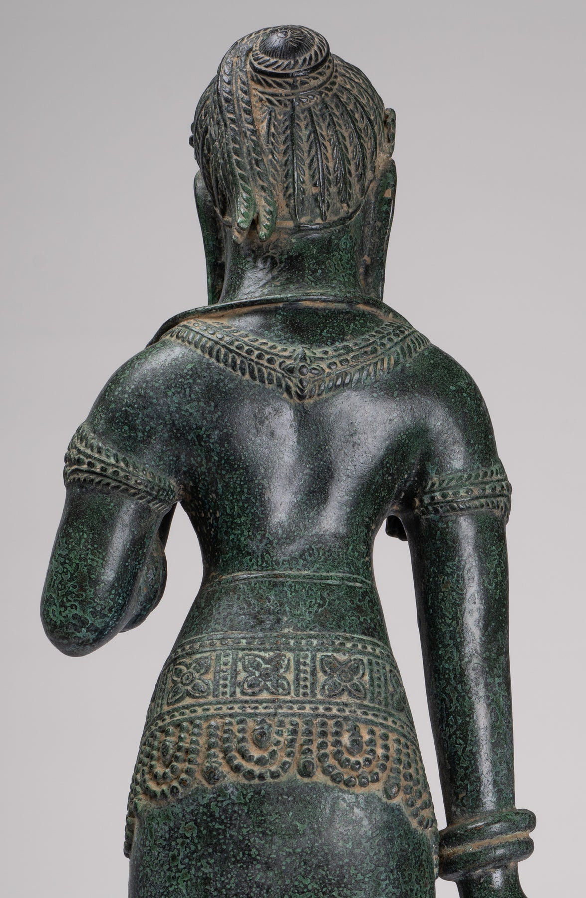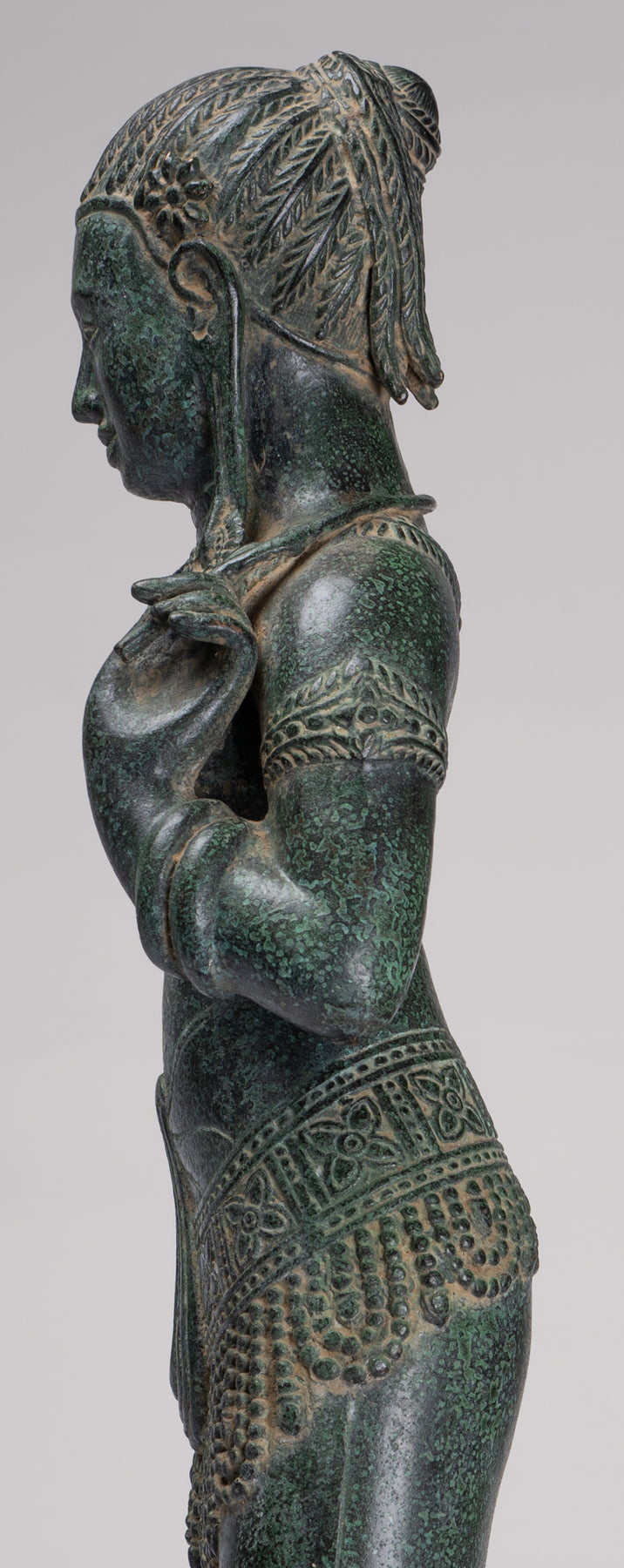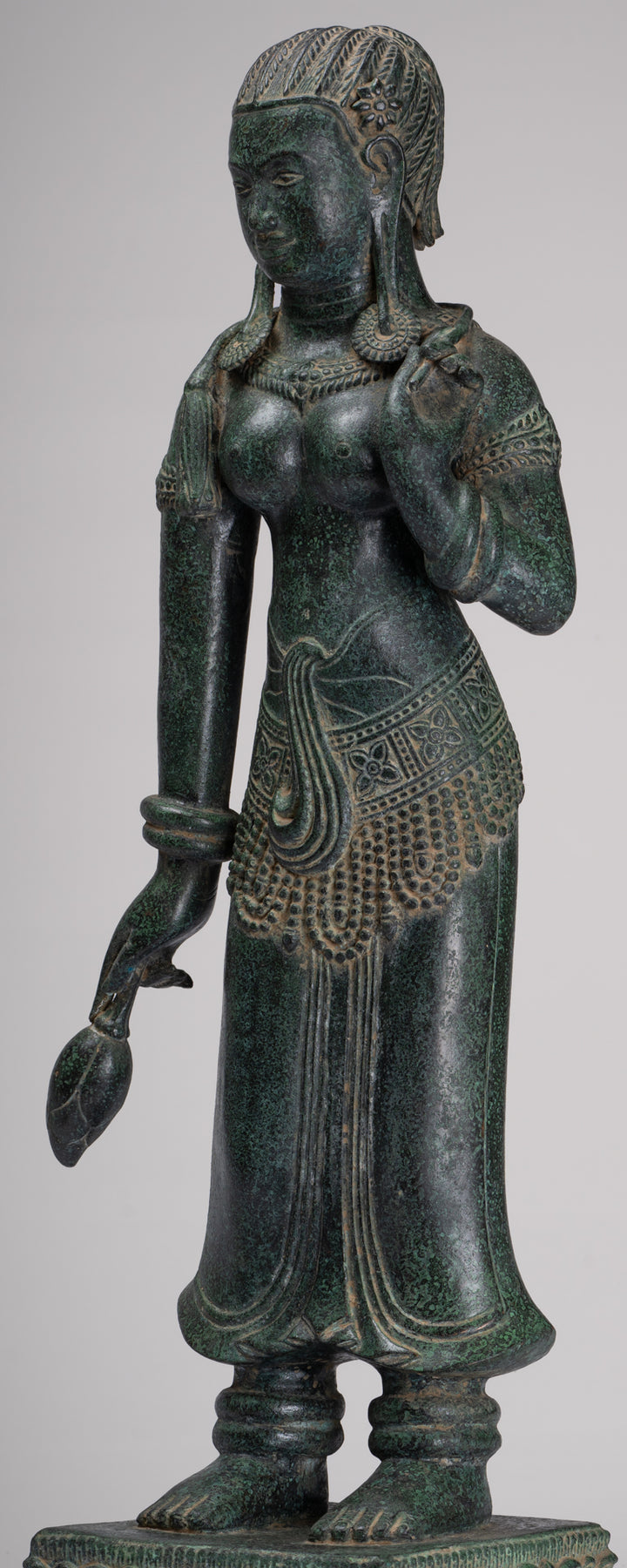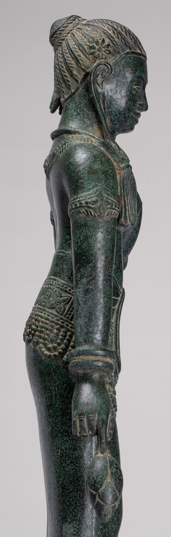 La silhouette dégage une sérénité et une puissance tranquille resplendissante de la sensualité du style Banteay Srei.