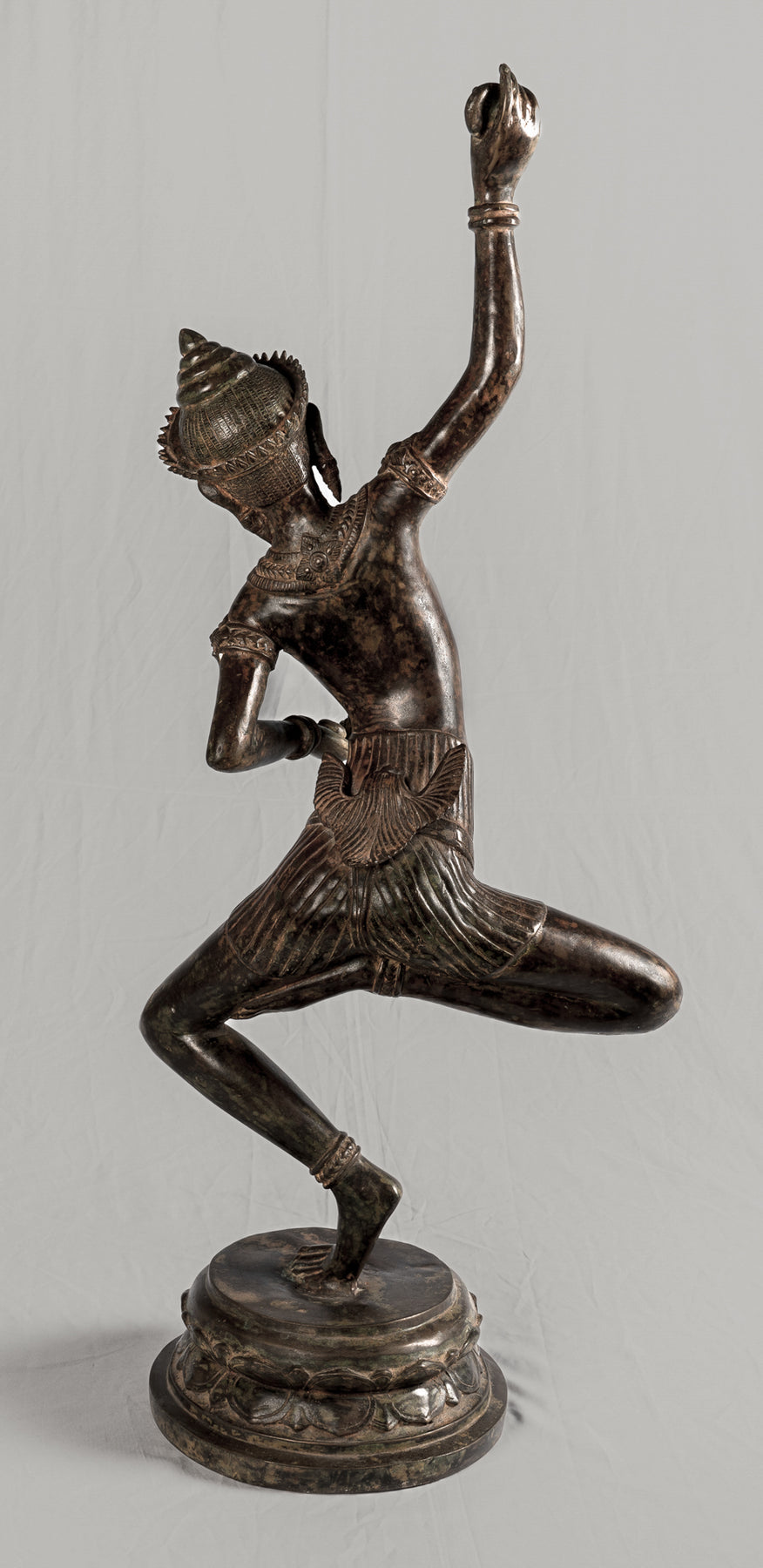 Statue antique d'Apsara ou d'ange dansant en bronze de style thaïlandais - 85 cm/34"