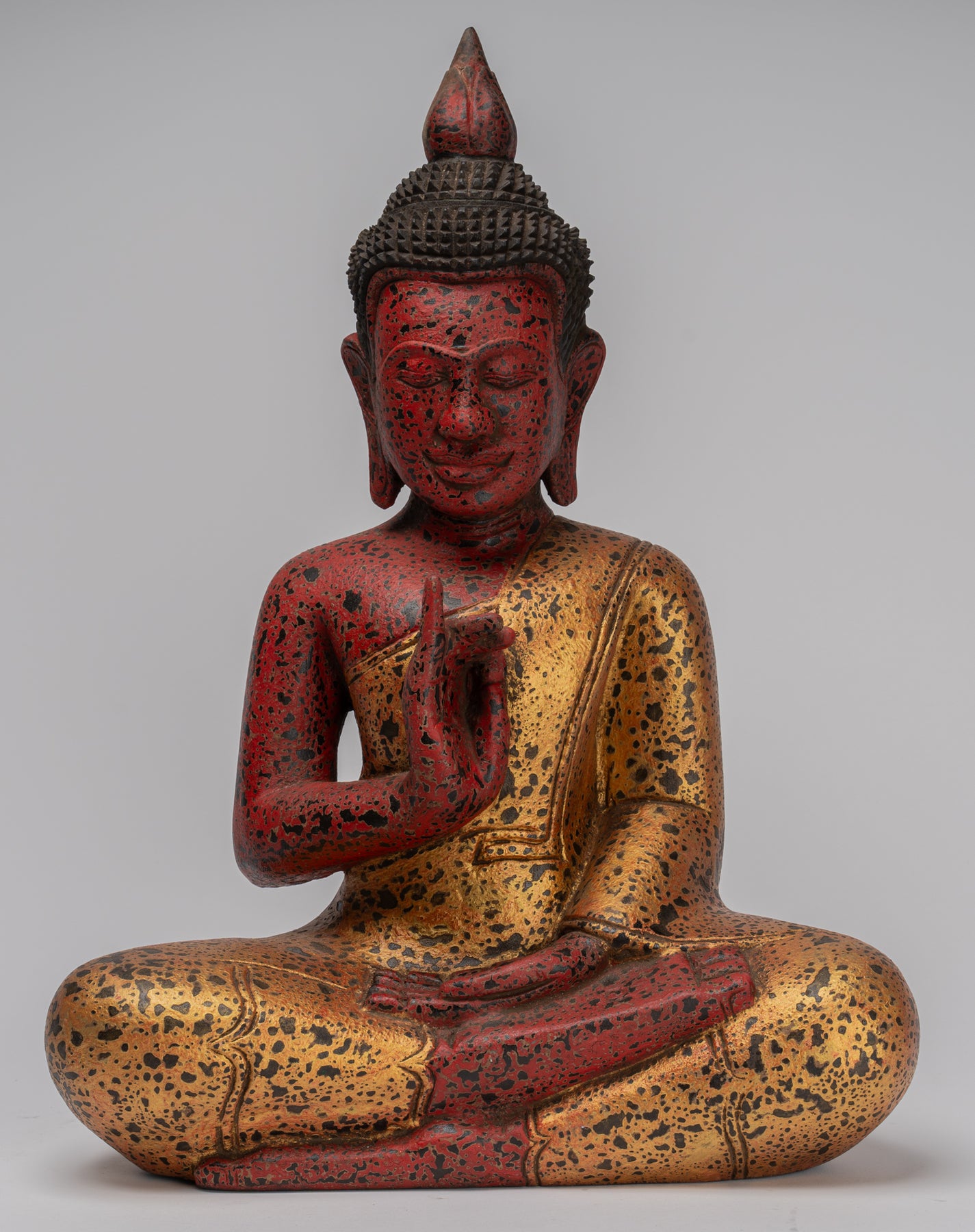 Statue de Bouddha - style khmer antique Cambodge Statue de bouddha en bois assis enseignant Mudra - 46 cm / 18 "