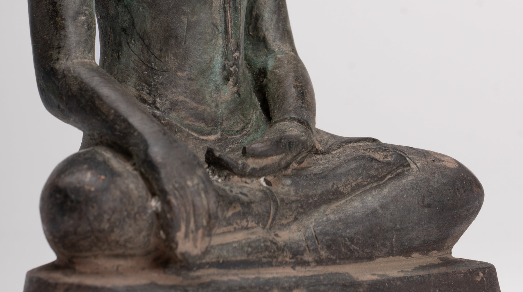 Buddha Statue - Antique Laos Style Bronze Enlightenment Buddha Statue - 29cm/12"